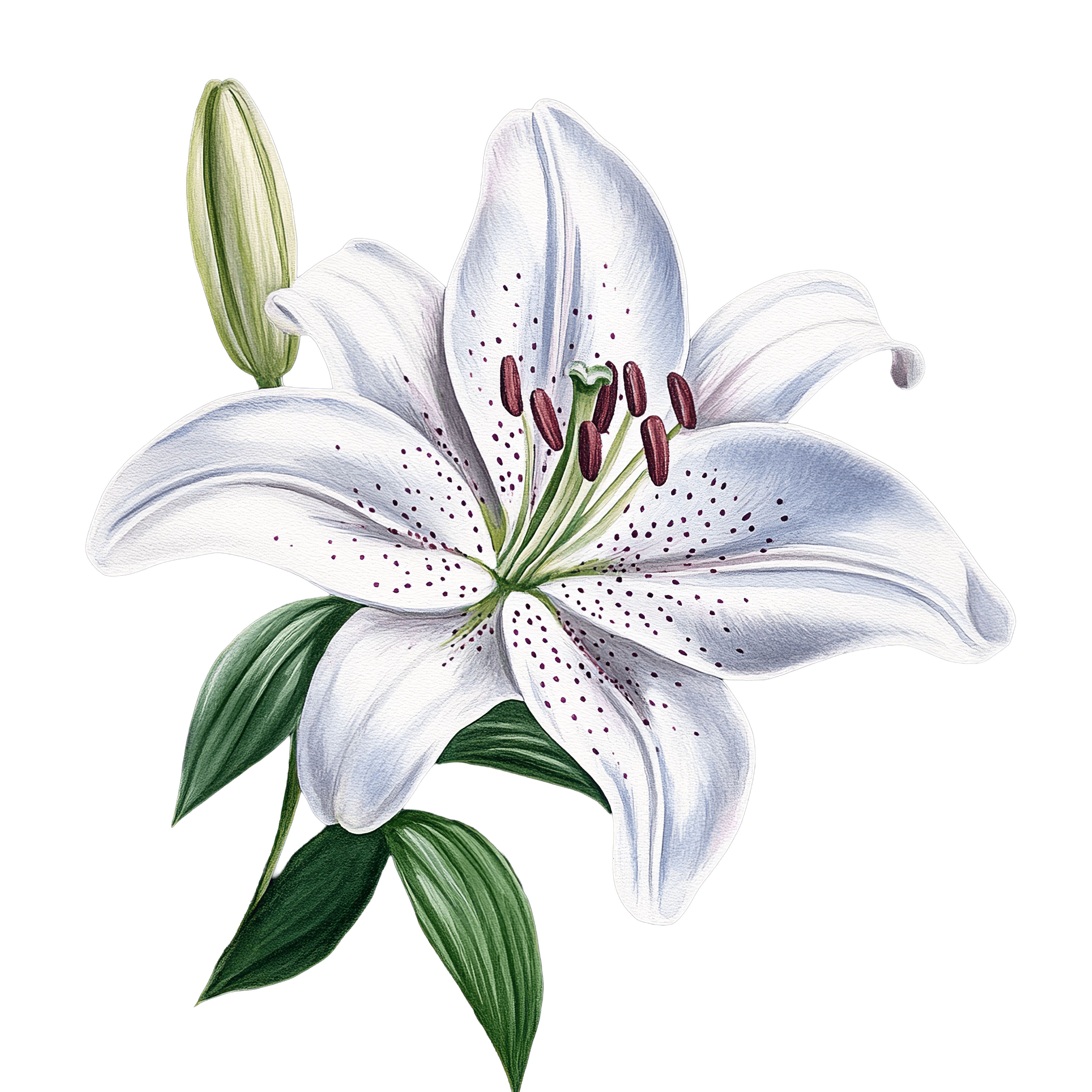 Detailed White Lily Flower with Green Leaves on Black White lily flower with green leaves and a bud on a black background.Download PNG ▼Download JPG ▼Related posts:Fresh White Daikon Radish with Vibrant Green LeavesWild Rose Branch with Pink Blooms and Green Leaves IllustrationWhite Gardenia Blossom with Green Leaves on BlackCartoon Firefighter Character in Yellow Protective Gear helmet clipart vector art mascotNine Multicolored Heart Shapes in a Watercolor Clipart StyleDetailed illustration of red roses with green leaves on blackCartoon Husky Holding Snowball ClipartWatercolor Fruit Tarts with Berries and Mint LeavesRed And Black Butterfly With Detailed X27Owl in Witch Hat Clipart with BowVibrant Orange Butterfly With Detailed Wing Patterns BlackKoala Holding a Large Green Leaf Clipart