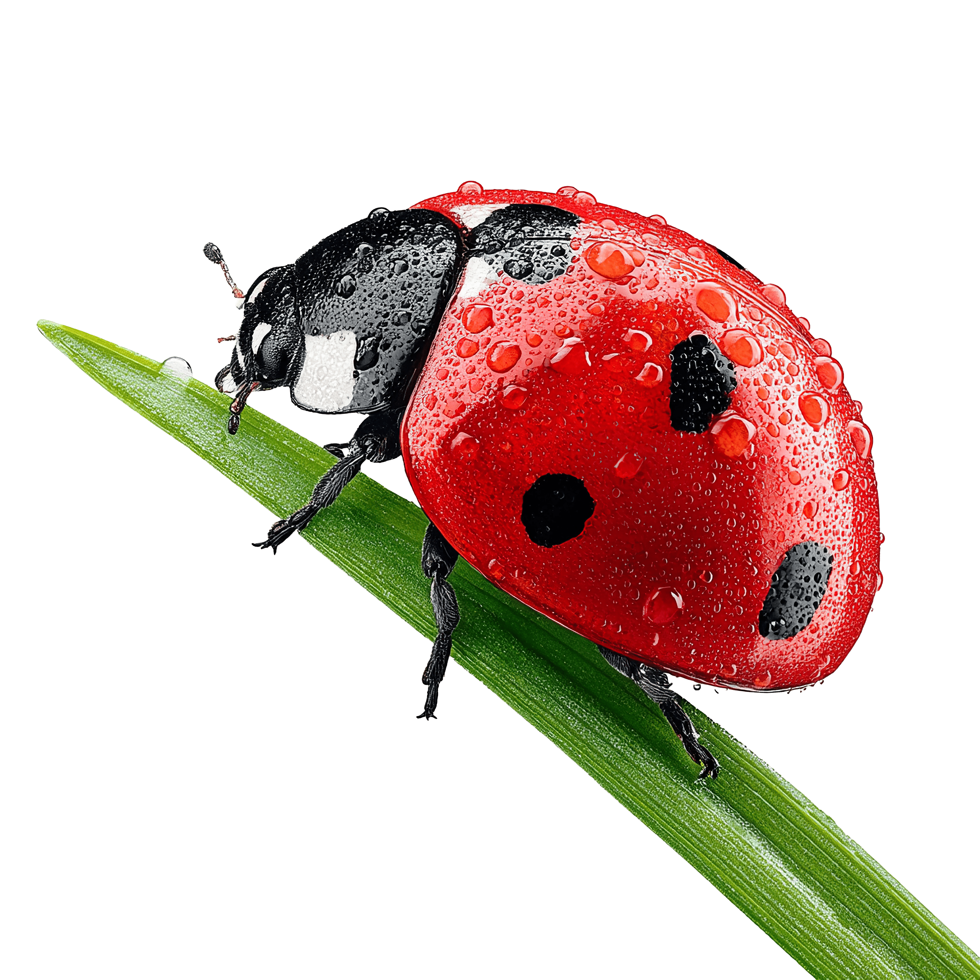 Dewy Red Ladybug Green Grass Ladybug with dew-covered red shell on a green blade of grass.Download PNG ▼Download JPG ▼Related posts:Purple Bird Holding Paintbrush with an EggLush Bamboo Stalks with Green LeavesChristmas Stockings with Bows and Holly on BlackRed And Orange Butterfly With Detailed Wing PatternsWatercolor Pineapple with Slices and Leaves fruit green yellow clipart vector artPurple Hippo Clipart Illustration with Dot TextureWatercolor Mizuna Sprouts with Green LeavesDetailed Botanical art of a Plant with RootsCute Blue Bird in Winter Hat Clipart IllustrationTropical Soursop Fruit on Lush Green BranchOtter balancing on pink ball illustrationDetailed Artichoke Clipart with Green Leaves