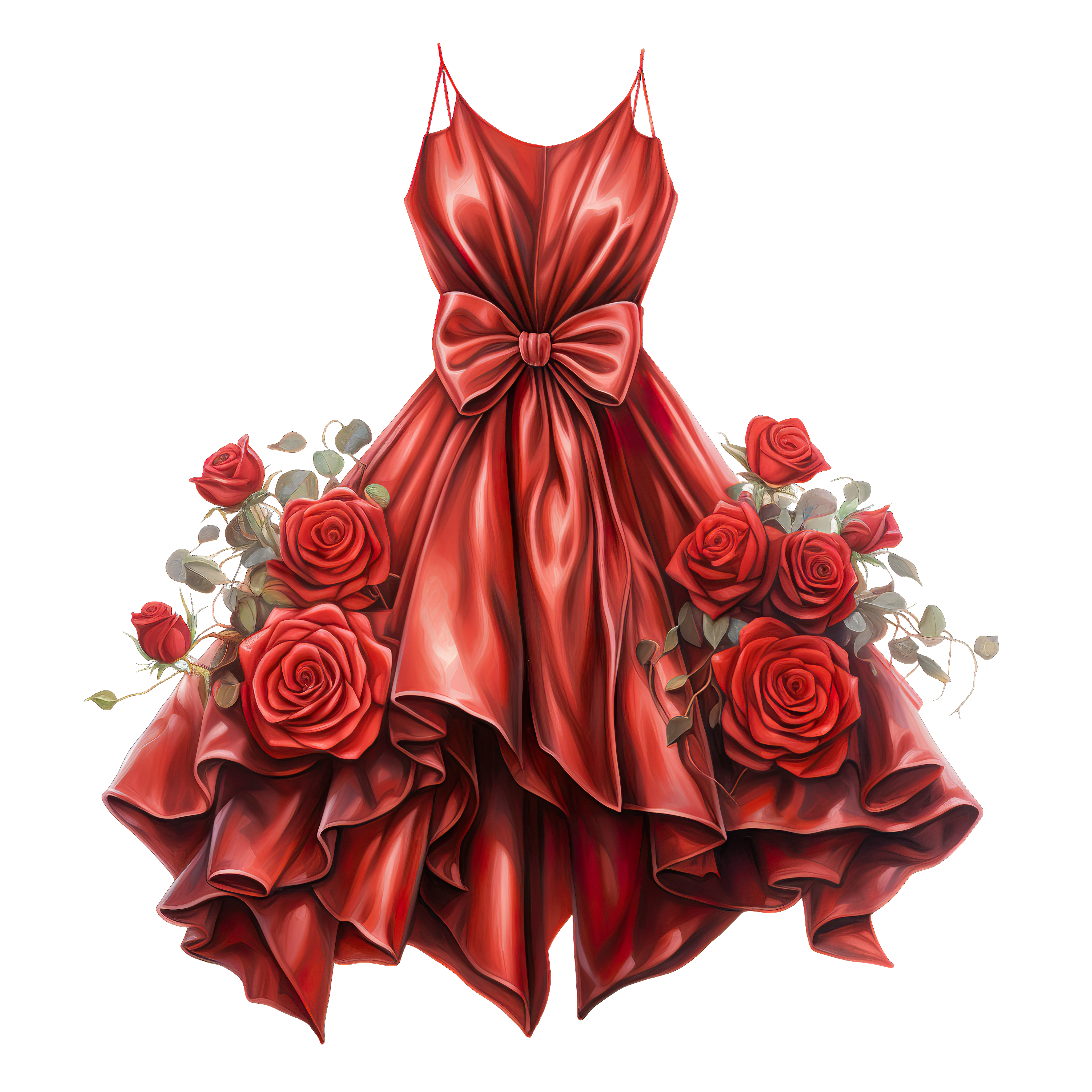 Elegant red satin dress adorned with blooming red roses Red satin dress with a bow, decorated with red roses and foliage.Download PNG ▼Download JPG ▼Related posts:Colorful Cupcake with Swirled Frosting and Heart DecorationPenguin Wearing Santa Hat and Scarf on Black BackgroundFestive Brown Rabbit in Decorative Holiday Wreath ClipartVibrant Butterfly With Intricate Patterned Wings In FlightWatercolor art of Fresh Whole and Sliced FigsYoung girl holding a gift wrapped with red ribbonLeopard Cub on Tree Branch Clipart IllustrationWatercolor Fruit Pizza with Strawberries and Blueberries lime slice food dessert clipartVibrant Purple Radish with Lush Green Leaves ClipartInsect Wearing Santa Hat with Blue Wings ClipartPanna Cotta Dessert with Fresh Berries on PlateStriking Monarch Butterfly With Intricate Orange And Black