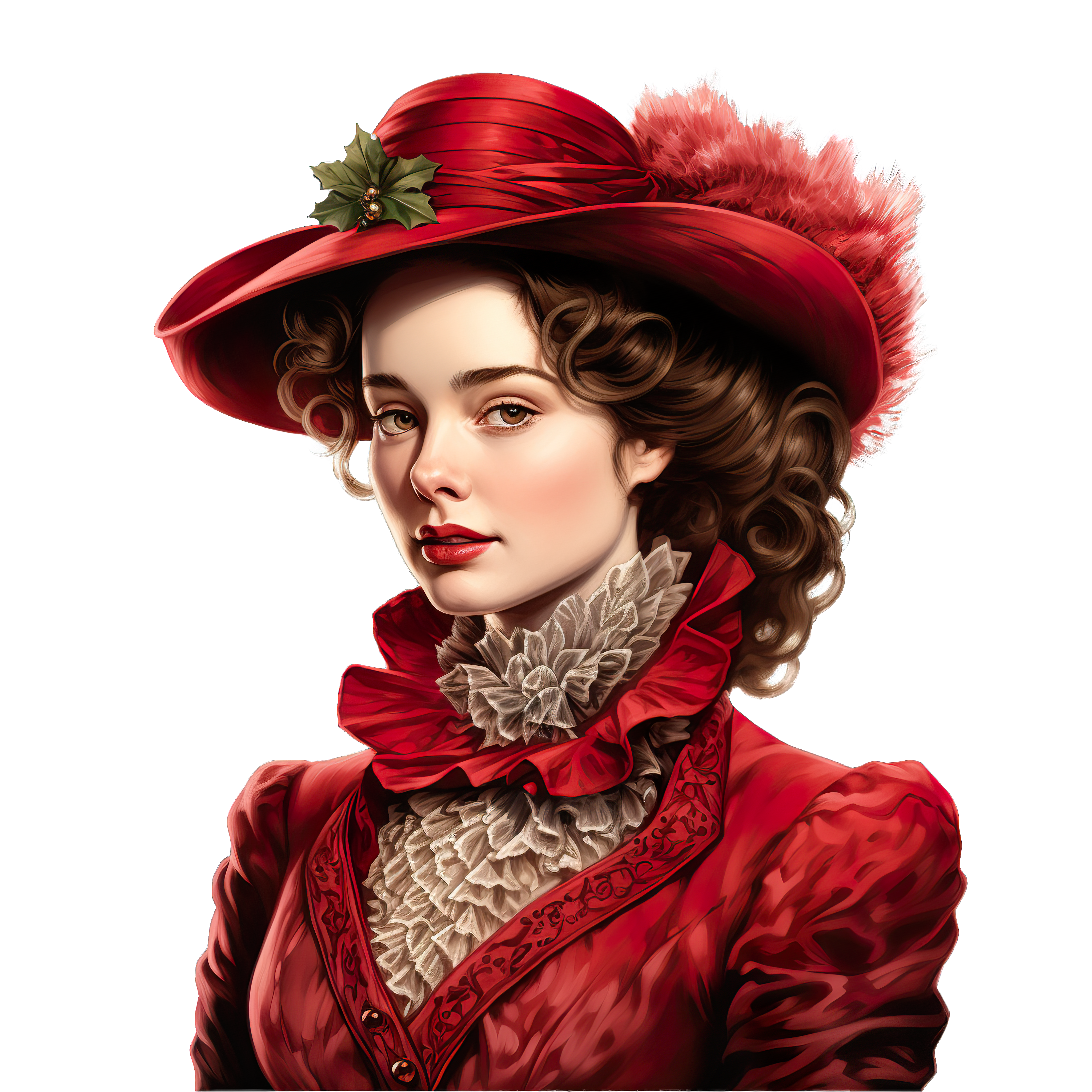Elegant Woman in Victorian Red Dress and Decorative Hat Woman in ornate Victorian red dress with detailed hat and lace collar.Download PNG ▼Download JPG ▼Related posts:Multicolored bird clipart with a vibrant tail designRed And Black Butterfly With Detailed Clipart Png X56Chameleon on Branch Wearing a Large HatSnow Globe Featuring Festive Cabin with Evergreen Trees and SnowfallHeart-Shaped Arrangement of Green Clover Leaves on BlackFresh Cauliflower Surrounded by Vibrant Green LeavesThree Vibrant Bell Peppers with Green Stems orange red vegetables food clipartIced Tea with Lime and Mint Garnish beverage drink refreshment cold glassLayered Berry Cake with Fresh Fruit Toppings berries strawberries blueberries dessert foodWhite mouse holding cheese cartoon illustrationWatercolor Style Ice Cream in Pink Cup ClipartBlueberry Yogurt in a Cup with Fresh Berries and Mint