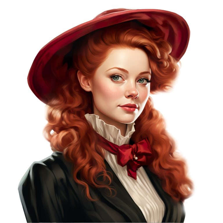 Victorian-Inspired Woman in Red Hat with Ribbons and Lace