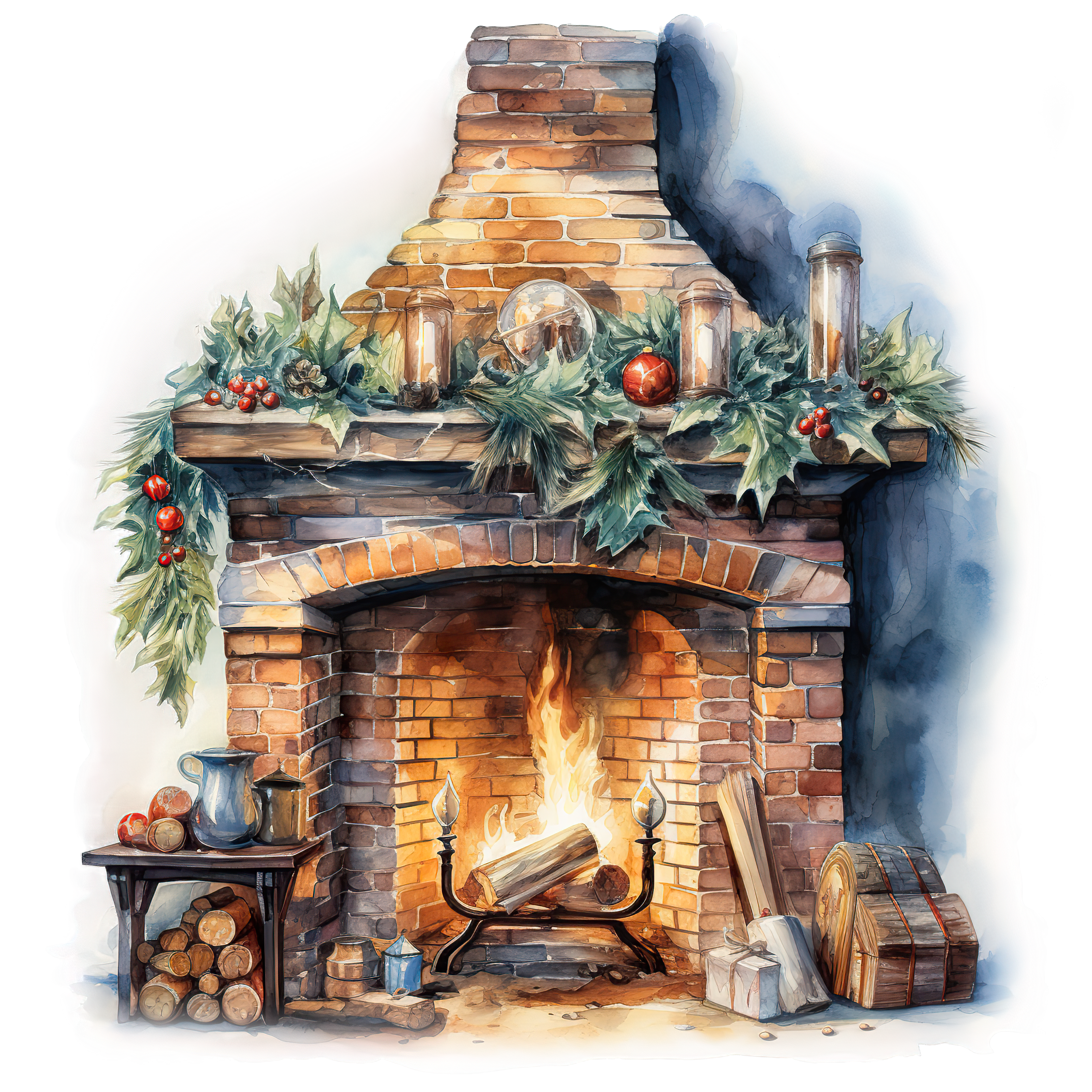 Festive Christmas Fireplace with Garland and Pine Decorations Brick fireplace adorned with Christmas garland, pine decorations, and burning fire.Download PNG ▼Download JPG ▼Related posts:Watercolor cherries with green leaves on a branchPink Banana Clipart with Bold Highlights fruit vector art stylized printable foodStrawberry and Blueberry Smoothie in a Glass with StrawWoman Wearing Red Patterned Headscarf on Black BackgroundDetailed Green Lettuce Leaves Texture DesignWatercolor Chestnuts with Spiky Green Shells and Brown NutsTall Glass of Iced Lemonade with Lime SliceDetailed Red Apple with Rich TexturePair of Coffee Cups with SpoonsGingerbread House with Candy Decorations and Snowy AccentsMartini glass filled with pink round fruits watercolor drink cocktail clipart vectorBlue Butterfly With Sparkling Gold Accents On Wings