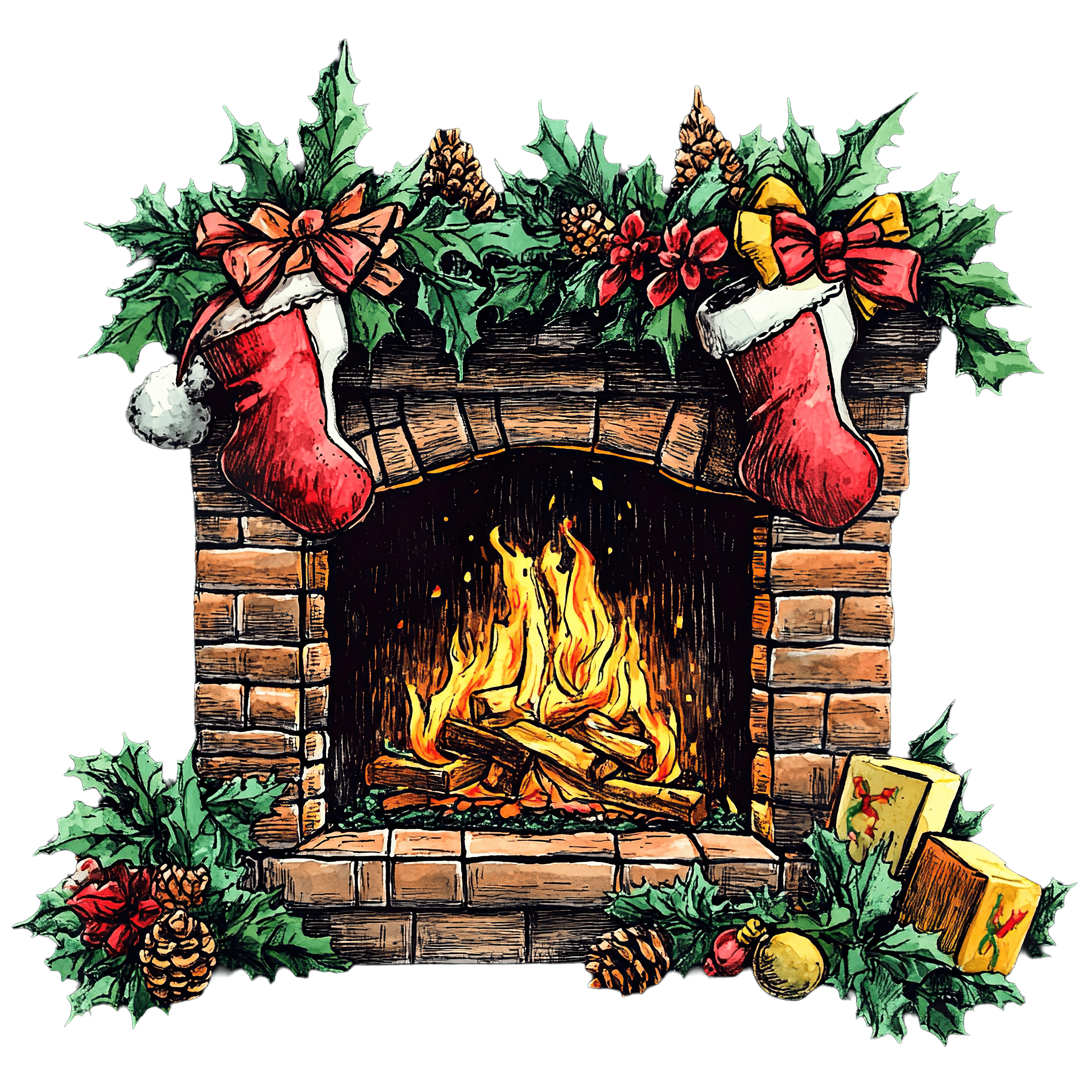 Festive Christmas Fireplace with Stockings and Holiday Decorations Brick fireplace with burning logs, decorated with stockings and festive greenery.Download PNG ▼Download JPG ▼Related posts:Chocolate Cake Slice with Cream and Sprinkles dessert food sweet bakery clipartChocolate Glazed Donut with Rich Topping DelightColorful Artistic Sun with Vibrant Multicolored Rays on BlackRefreshing Mint and Lemon Iced Tea Clipart IconTiger clipart with antlered head designBear in Red Car Clipart IllustrationGreen Leaves Toucan Branch ClipartPink Soft Serve Ice Cream Cone with Waffle TextureWhole and Halved Medjool Dates in Detailed ClipartSmiling Sun with Gold Rays on Dark Background IllustrationPink Banana Clipart with Bold Highlights fruit vector art stylized printable foodCranberries and Leaves with Halved Fruit Design