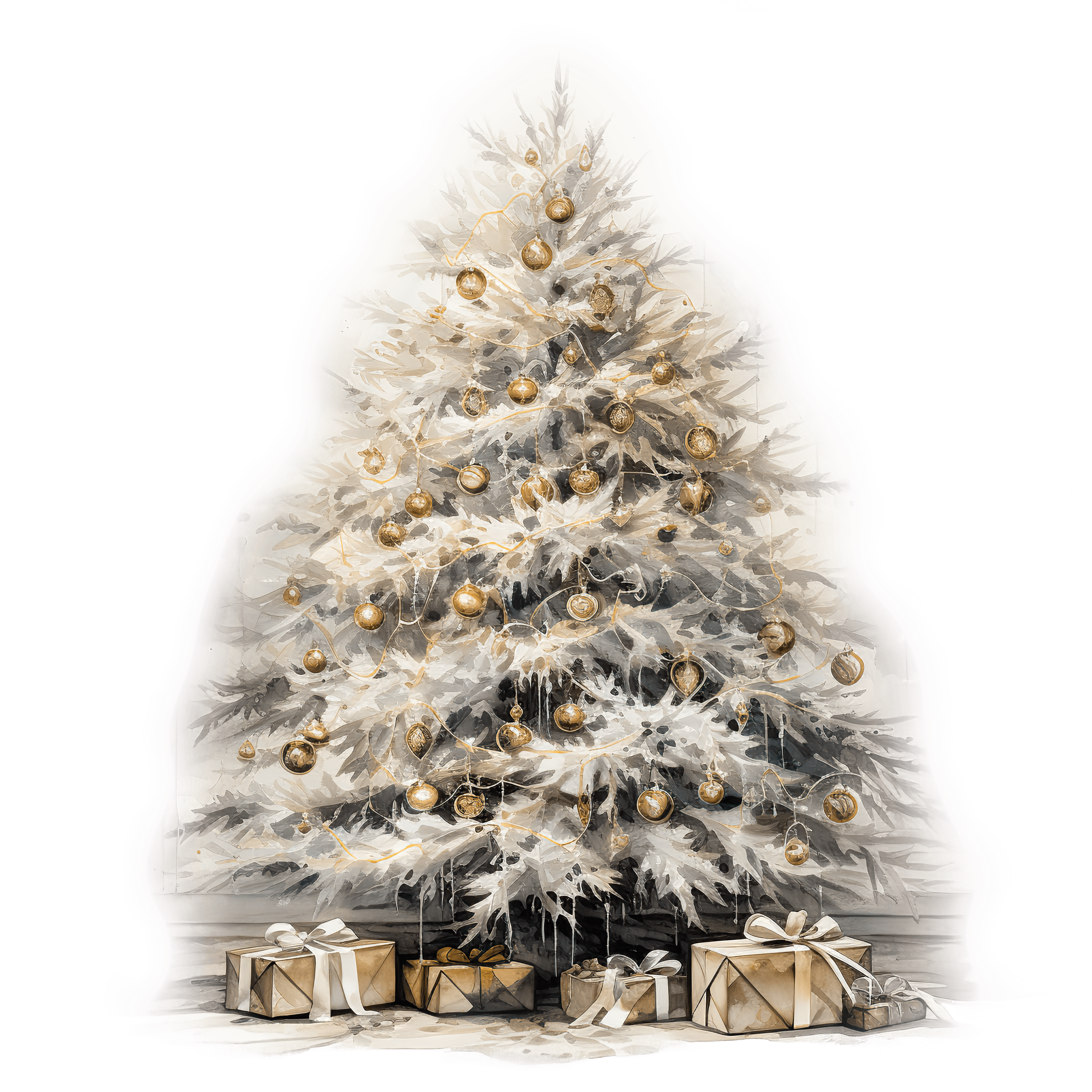 Festive Christmas Tree with Gold Ornaments and Gifts Christmas tree decorated with gold ornaments and surrounded by wrapped gifts.Download PNG ▼Download JPG ▼Related posts:Vibrant Purple Butterfly With Starry Wing Patterns WingsVibrant Monarch Butterfly With Intricate Orange And YellowCup of Honey Tea with Lemon Slices on PlateCartoon crow wearing a witch’s hat vectorBanana Split with Whipped Cream and Fresh StrawberriesChocolate Chip Oatmeal Cookie with Detailed Texture dessert food snack baked sweetRed Velvet Cupcake with Swirled Frosting Design dessert baked good sweet treatWatercolor Acorn Squash with Halved and Whole PiecesYellow Squash with Leaves and Sliced Sections vegetable food clipart vector artWatercolor Grapefruit Slice with Vibrant Pink Segments fruit citrus clipart vector artYoung Girl Wearing Festive Poinsettia and Holly CrownCartoon Style Green Crocodile Clipart with Big Eyes