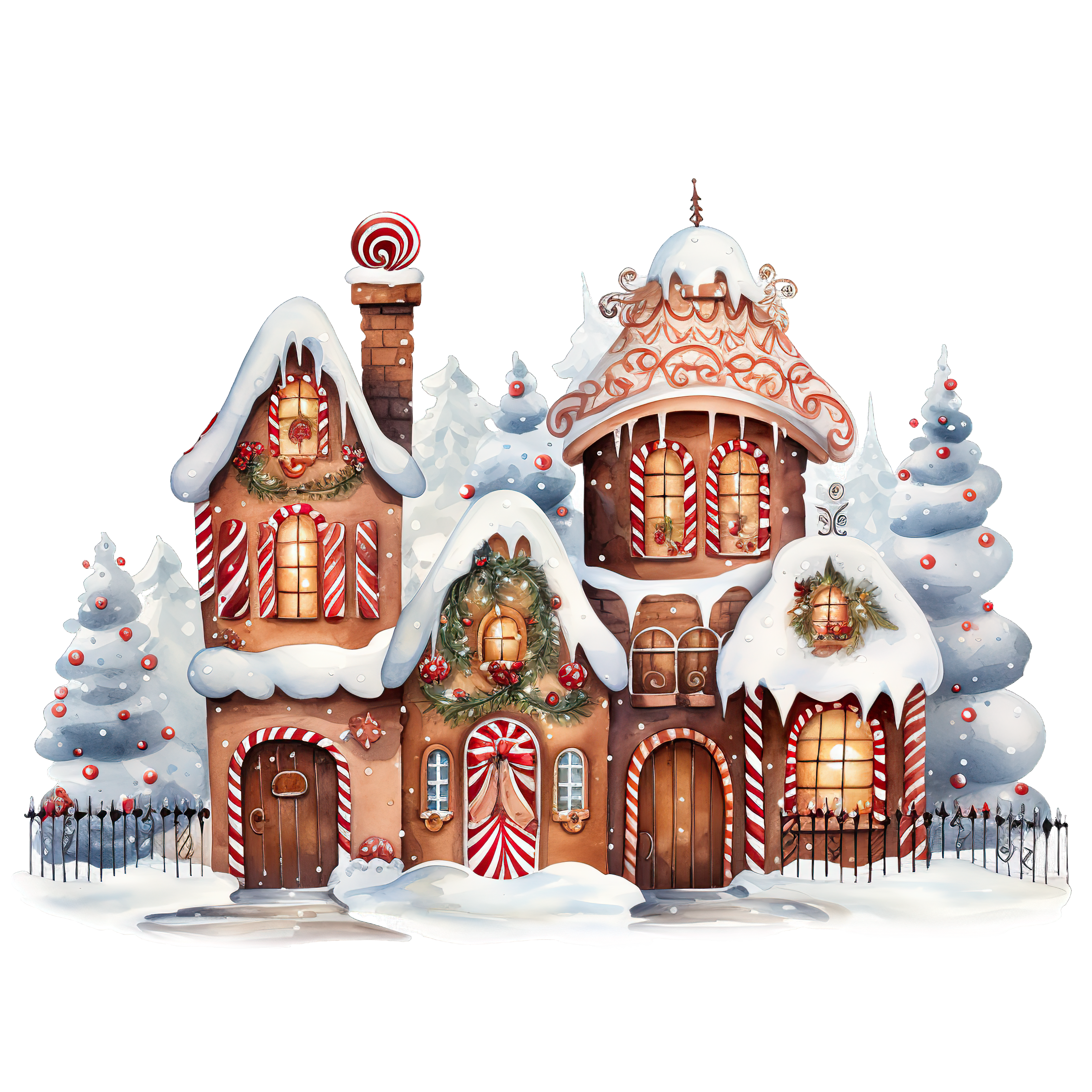 Festive Gingerbread House with Snow and Candy Cane Decorations Gingerbread house with snow-covered roofs and candy cane details, surrounded by snowy trees.Download PNG ▼Download JPG ▼Related posts:Sliced Sponge Cake with Golden Brown Crust dessert bakery food sweet clipartCartoon Witch Character in Black Hat and DressWoman Wearing Red Bow and Green Scarf in Fashionable AttirePurple Hippopotamus with Yellow and Pink Ducks ClipartAssorted Fruits and Pastries with Fresh Leaves food drink clipart vector artVibrant Orange Butterfly Showcasing Intricate Wing PatternsRed and White Striped Christmas Ornament with Swirled DesignTraditional Holiday Holly with Red Berries and Green LeavesBotanical Art of Celeriac Root and LeavesBright Red Poppy Flower with Green Stem on BlackVibrant Cranberry Harvest with Leaf DetailBunch of Fresh Green Beans in Detailed Clipart