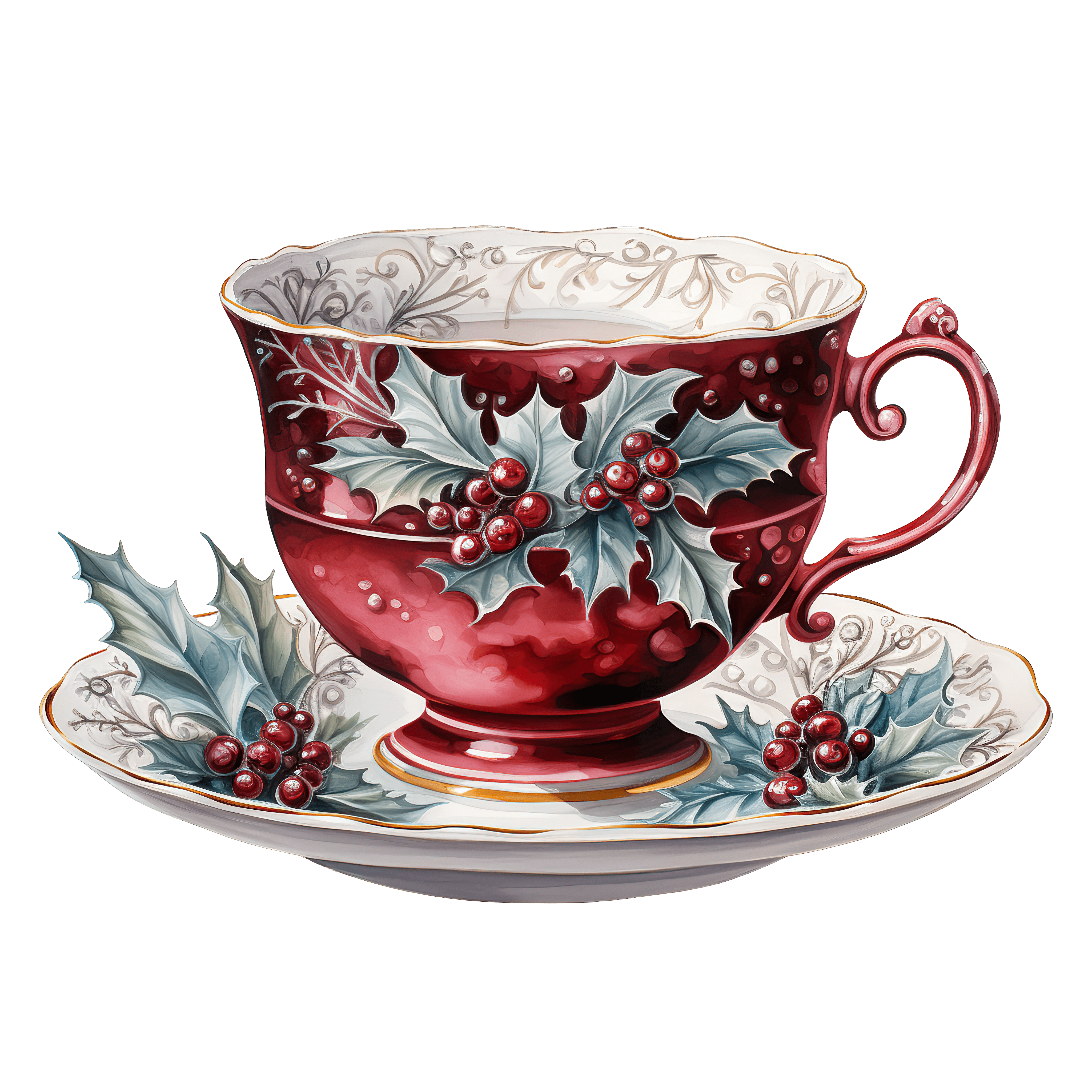 Festive Red Tea Cup with Holly and Berry Design Red tea cup and saucer featuring holly leaves and berry illustrations.Download PNG ▼Download JPG ▼Related posts:Berry Topped Frozen Yogurt Cup with Raspberries and BlueberriesHand-Drawn Custard Apple with Detailed Textured Skin fruit green clipart vector artBlonde Girl Surrounded by Red Poinsettias and BerriesBotanical Parsnip Clipart with Rich Green FoliageCartoon hamster with striped tail and white bellyColorful Butterfly with Flowers in Vibrant Clipart StyleOrange Squirrel Clipart with Bushy TailCaramel Flan Dessert on Blue Patterned Plate food sweet sauce watercolor clipartRed and Green Christmas Ornaments with Decorative BowsGreen Frog Character Clipart on Plain BackgroundCartoon pelican with red scarf illustrationParrot in a Green and Yellow Hat Clipart