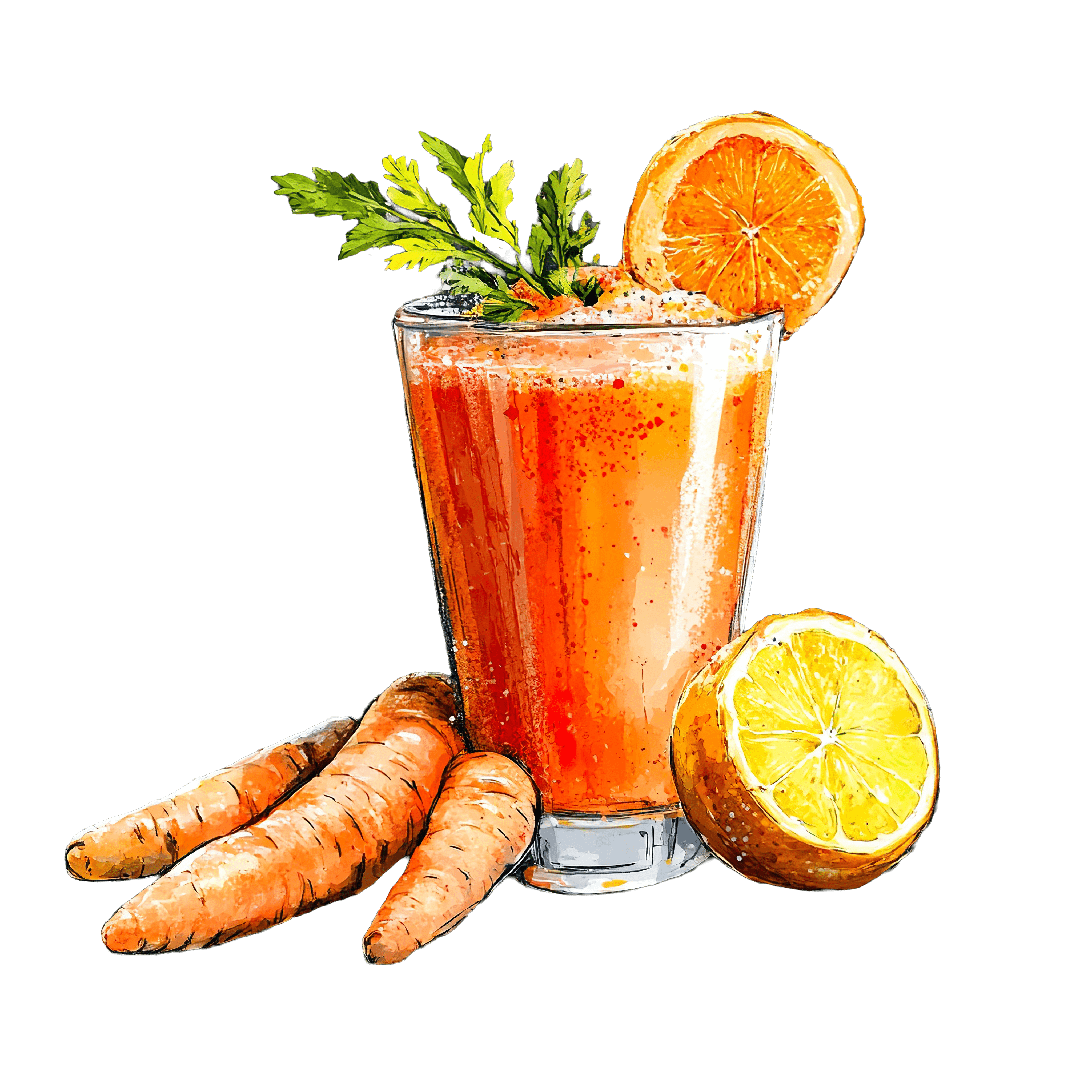Fresh Carrot and Orange Juice with Garnish drink glass beverage clipart vector Glass of carrot and orange juice with fresh garnish.Download PNG ▼Download JPG ▼Related posts:Cartoon raccoon character with pumpkin hatDeer Head with Antlers Encircled by Christmas Wreath ClipartCup of Honey Tea with Lemon Slices on PlateMice Driving Colorful Cars ClipartBlue Mug Filled with Hot Chocolate and MarshmallowsBlueberry Cheesecake Slice on White Plate with ForkGlass Mug of Hot Chocolate with Whipped Cream ToppingDecorative Metal Butterfly With Blue And Yellow WingsWatercolor Landscape with Mountains and Night Sky in Circular FrameWatercolor Pear Clipart with Textured DetailsDelicious Chocolate Brownie with Cracked TopIntricate Leaf and Berry Mandala Design in Symmetrical Pattern