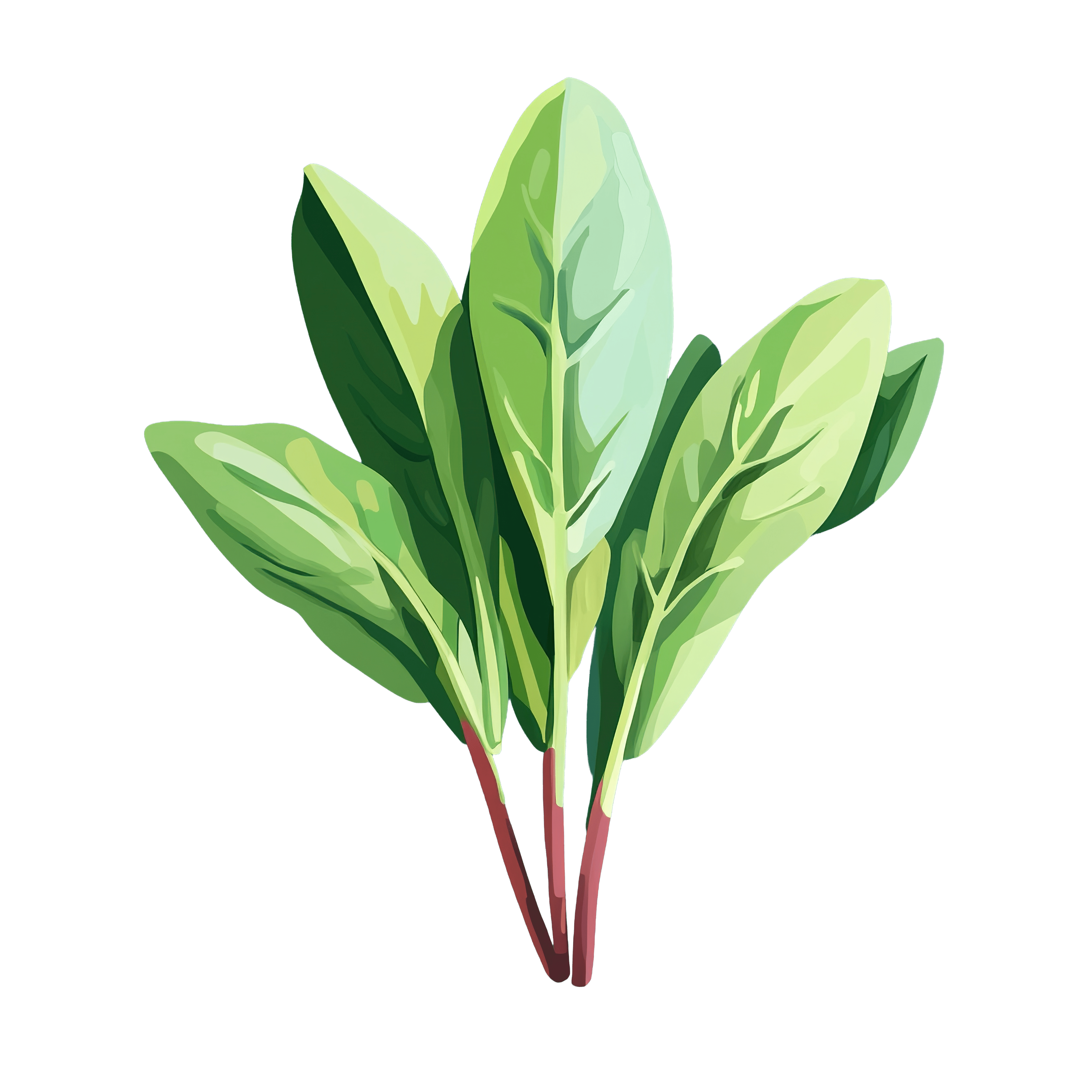 Fresh Green Spinach Leaves with Red Stems vegetable clipart vector art leafy Spinach leaves with vibrant green color and red stems.Download PNG ▼Download JPG ▼Related posts:Watercolor art of Fresh Green Spinach Leaves clipart vector vegetable plant botanicalCartoon bird with Santa hat clipartFresh Red Onion with Glossy Skin Clipart vegetable food vector art printableTwo Glasses of Lemon Water with Ice and Mint LeavesShiny Gold Bell with Red Ribbon for Festive OccasionsHibiscus Flowers with Glass Bottle of Herbal OilMint Julep Cocktail in a Golden Cup with Mint LeavesCartoon meerkat with large eyes by a treeGreen Grapes Bunch in Watercolor Style Clipart fruit vector art printable foodClassic Coca-Cola Glass Bottle with Red Label DesignWatercolor Assorted Berry Collection Vector Art Printable FruitCartoon Superhero Character with Red Cape and Blue Armor