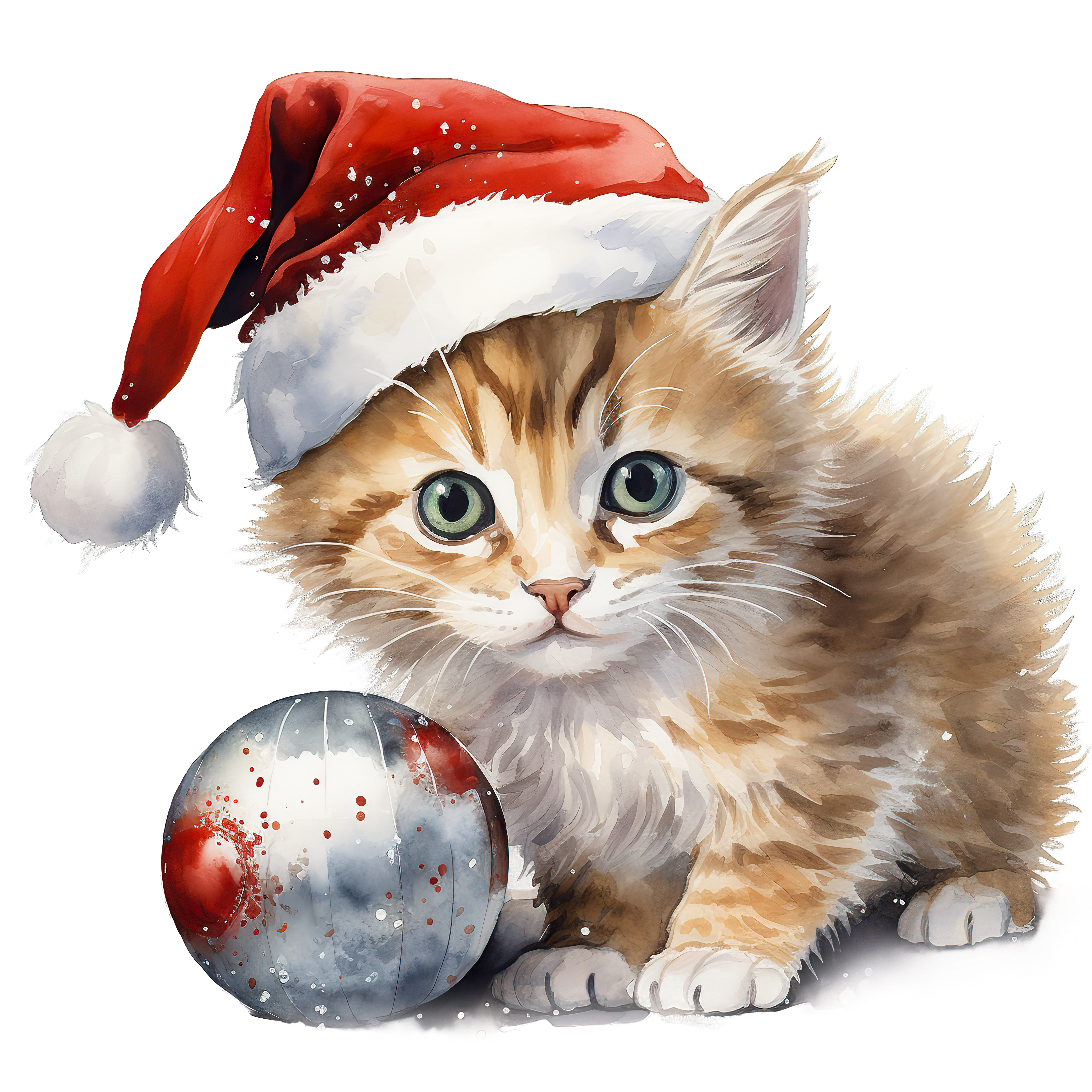 Ginger Kitten Wearing Santa Hat Next to Christmas Ornament Ginger kitten in a Santa hat with a Christmas ornament nearby.Download PNG ▼Download JPG ▼Related posts:Colorful Butterfly With Cosmic Patterned Wings In FlightGlass of Orange Juice with Slice and StrawSix Varied Green and Colorful Leaves on DisplayStrawberry and Blueberry Smoothie in a Glass with StrawIntricate Christmas Snowflake Cookie with Red and Teal IcingOrange Sunflowers Green Leaves ClipartYellow Squash Whole and Sliced in Detailed ClipartFresh Green Spinach Leaves with Red Stems vegetable clipart vector art leafyVibrant Yellow And Green Butterfly With Detailed WingsYellow Chick Splashing in Water ClipartVibrant Wine Glass Filled with Red and Yellow LiquidFestive Gingerbread House Decorated with Candy Canes and Snow