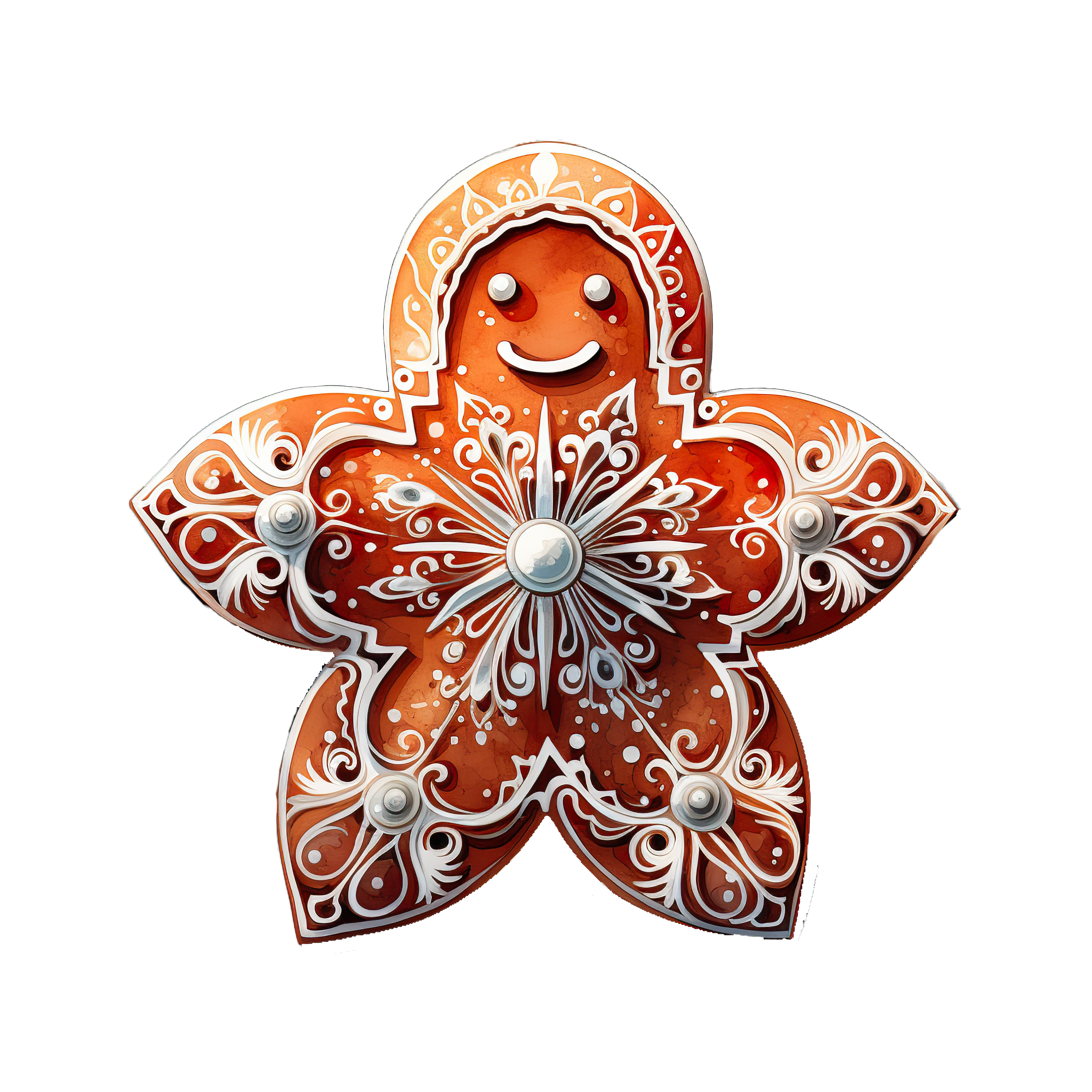 Gingerbread Cookie Decorated with White Icing in Star Shape Star-shaped gingerbread cookie with intricate white icing design details.Download PNG ▼Download JPG ▼Related posts:Traditional Wooden Nutcracker Soldier Ornament in Red UniformSanta Claus Carrying Gifts in Traditional Red Santa SuitRed Poinsettia and Leaves in Elegant Floral ArrangementMouse in a Yellow Jester Outfit IllustrationVibrant Watercolor Sun with Radiating Decorative Rays IllustrationWatercolor Mango with Leaves on Branch Clipart fruit vector art printable foodTropical Soursop Fruit on Lush Green BranchButterfly With Cosmic Starry Pattern On Wings IllustrationColorful Butterfly With Vibrant Red Yellow And BlueVibrant Orange Butterfly Showcasing Intricate Wing PatternsWatercolor depiction of a fresh root vegetable with green leavesDetailed Illustration Of A Vibrant Orange Butterfly Wings