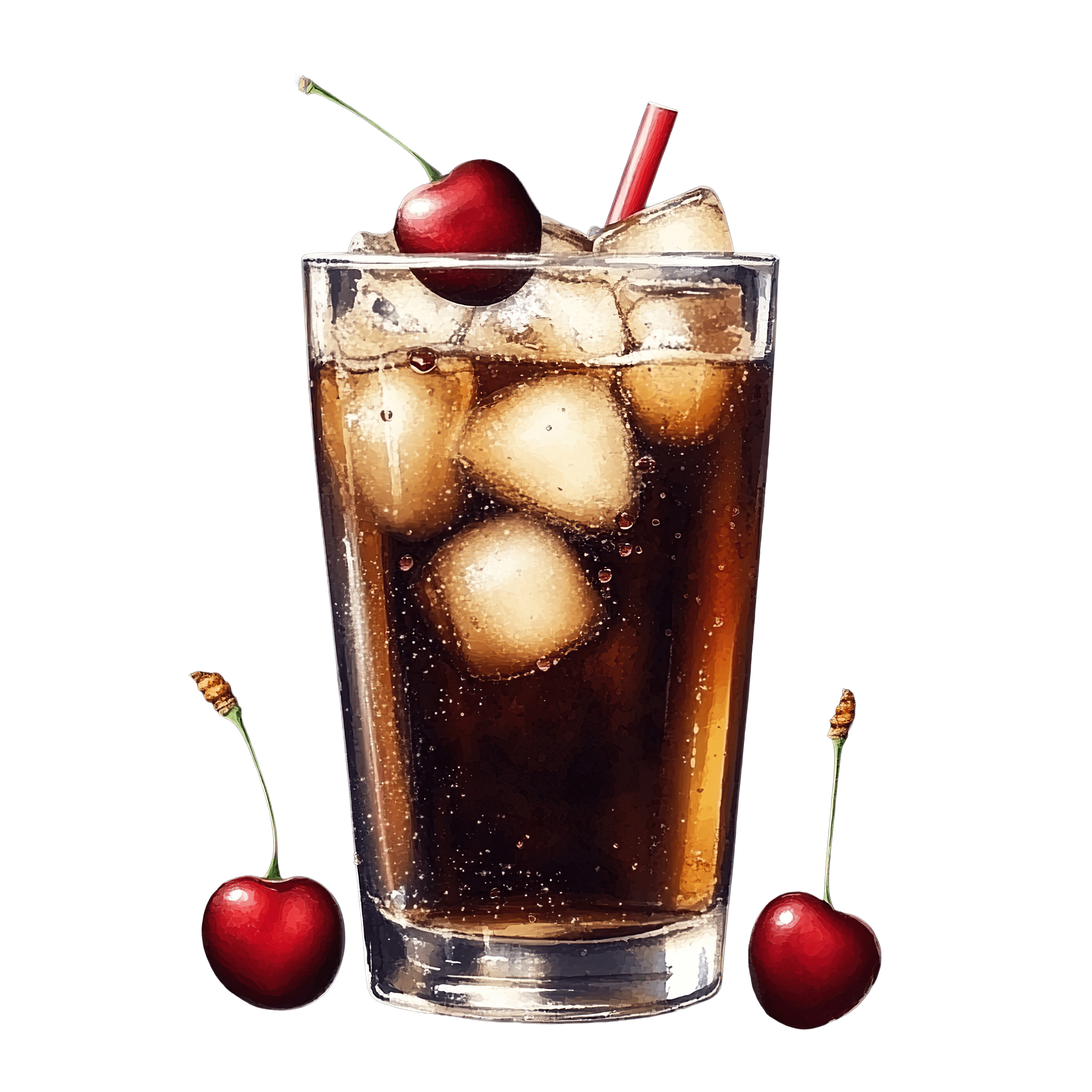 Glass of Iced Cherry Cola with Fresh Cherries Glass of iced cherry cola garnished with fresh cherries and straw.Download PNG ▼Download JPG ▼Related posts:Orange Fruit Hanging from Branch with Green LeavesRipe Purple Gooseberries Hanging from a Branch with LeavesWoman in Red Turban and Scarf with Bold EarringsRed And White Butterfly With Detailed Wing PatternsFestive Candles with Pinecones and Holly for Seasonal DecorWatercolor Garlic Bulb with Green Stems clipart vegetable food spice herb vectorClear Plastic Water Bottle with Blue CapPink Frosted Donut with Glossy Glaze frosting glazed food dessert pastry sweetChestnut Horse Flowing Mane Tail ClipartChocolate Drip Cake with Cherries and Whipped Cream ToppingQuokka cartoon illustration with standing postureDesert landscape with cacti and sun over blue mountains