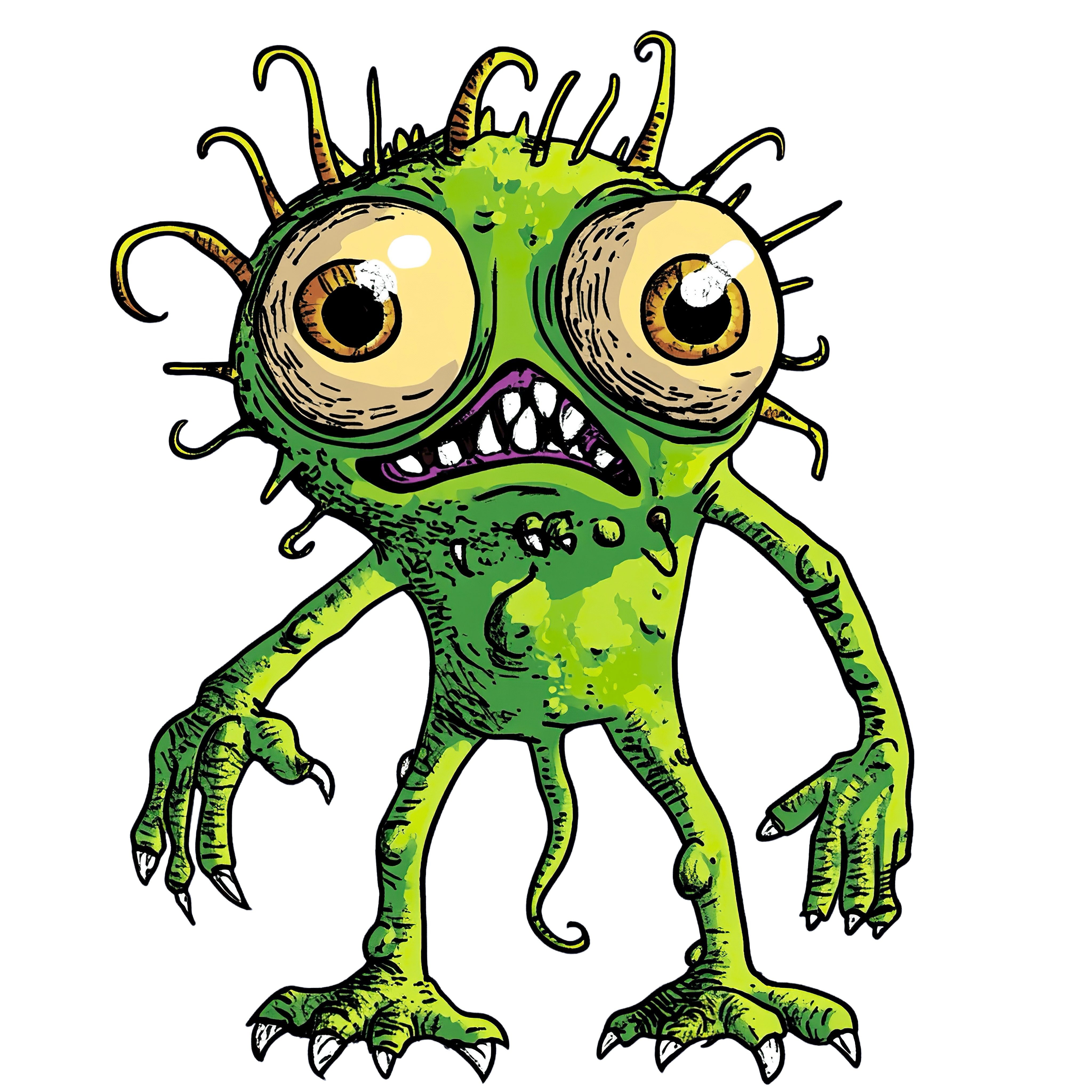 Green Cartoon Monster with Big Eyes and Tentacles Green cartoon monster with large eyes and tentacle-like appendages.Download PNG ▼Download JPG ▼Related posts:Elegant red satin dress adorned with blooming red rosesWatercolor cherries with green leaves on a branchBlue And Yellow Butterfly With Polka Dot PatternedTropical Cocktail with Kiwi Slice and Mint GarnishColorful Holiday String Lights with Watercolor Galaxy DesignGirl with Red Festive Florals and Holly Berry CrownTurtle wearing purple beanie clipartBright Sun Illustration with Fiery Orange and Yellow RaysMint Julep in a Silver Cup with Fresh Mint LeavesPink jellyfish with tentacles clipart illustrationVividly Illustrated Butterfly With Brightly Colored Intricate WingsArtistic Red Apple Watercolor Clipart Design