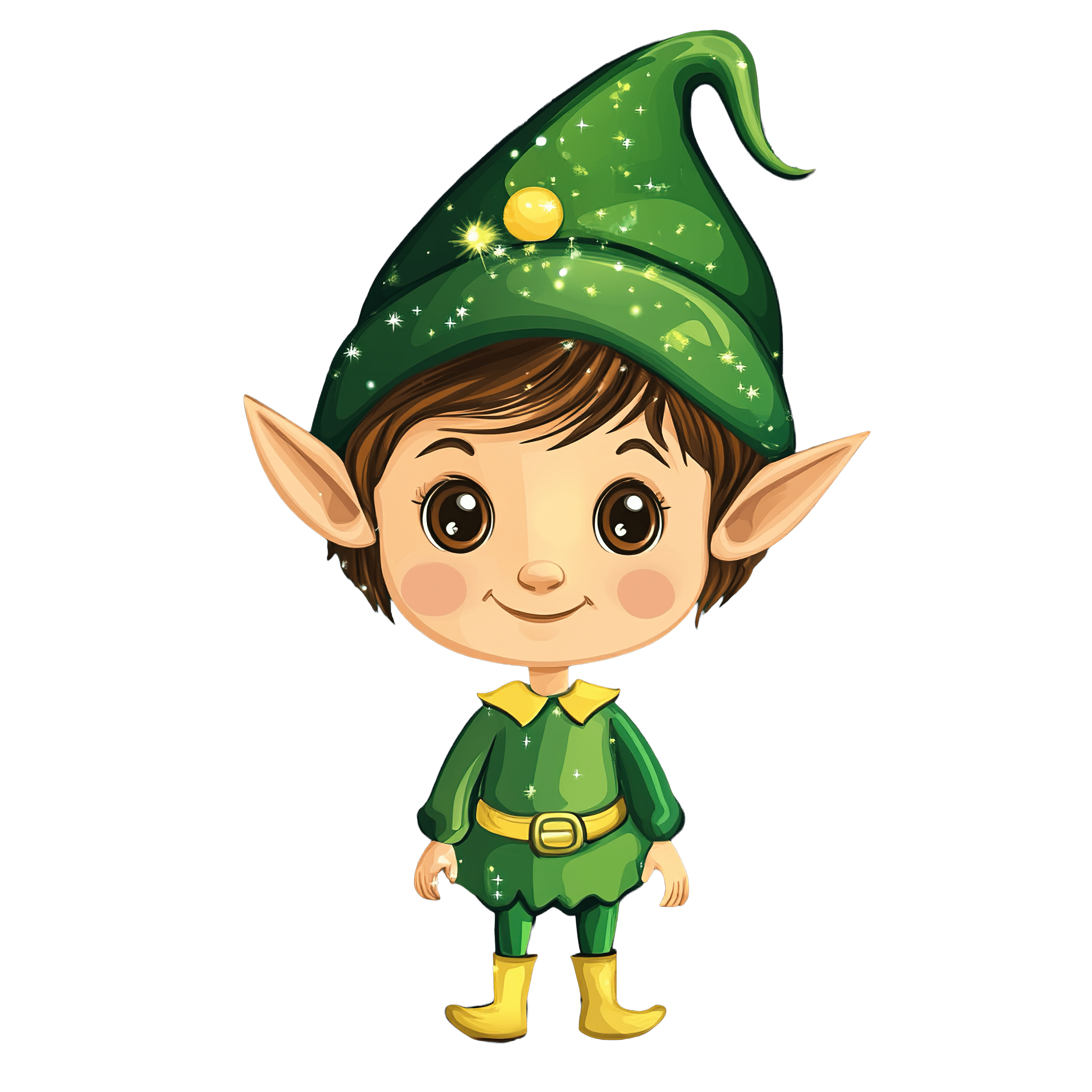 Green-clad Christmas Elf with Pointed Hat and Ears Christmas elf wearing a green outfit and pointed hat.Download PNG ▼Download JPG ▼Related posts:Victorian-Inspired Woman with Festive Christmas Holly DecorationElegant Couple Dancing at a Christmas Celebration PartyDetailed Botanical art of a Plant with RootsWatercolor Illustration of a Bright Yellow Sun on BlackBlack and Yellow Chick Cartoon IllustrationMonstera Leaves in Watercolor Style Clipart DesignCartoon lion wearing a blue and red hatCartoon Otter Clipart with Light Brown FurDetailed Red Gerbera Daisy with Blue Center IllustrationWoman with Wavy Hair and Red Bow Wearing EarringsFestive Teacup with Poinsettia and Holly DecorationsBrown sheep illustration with curly wool details