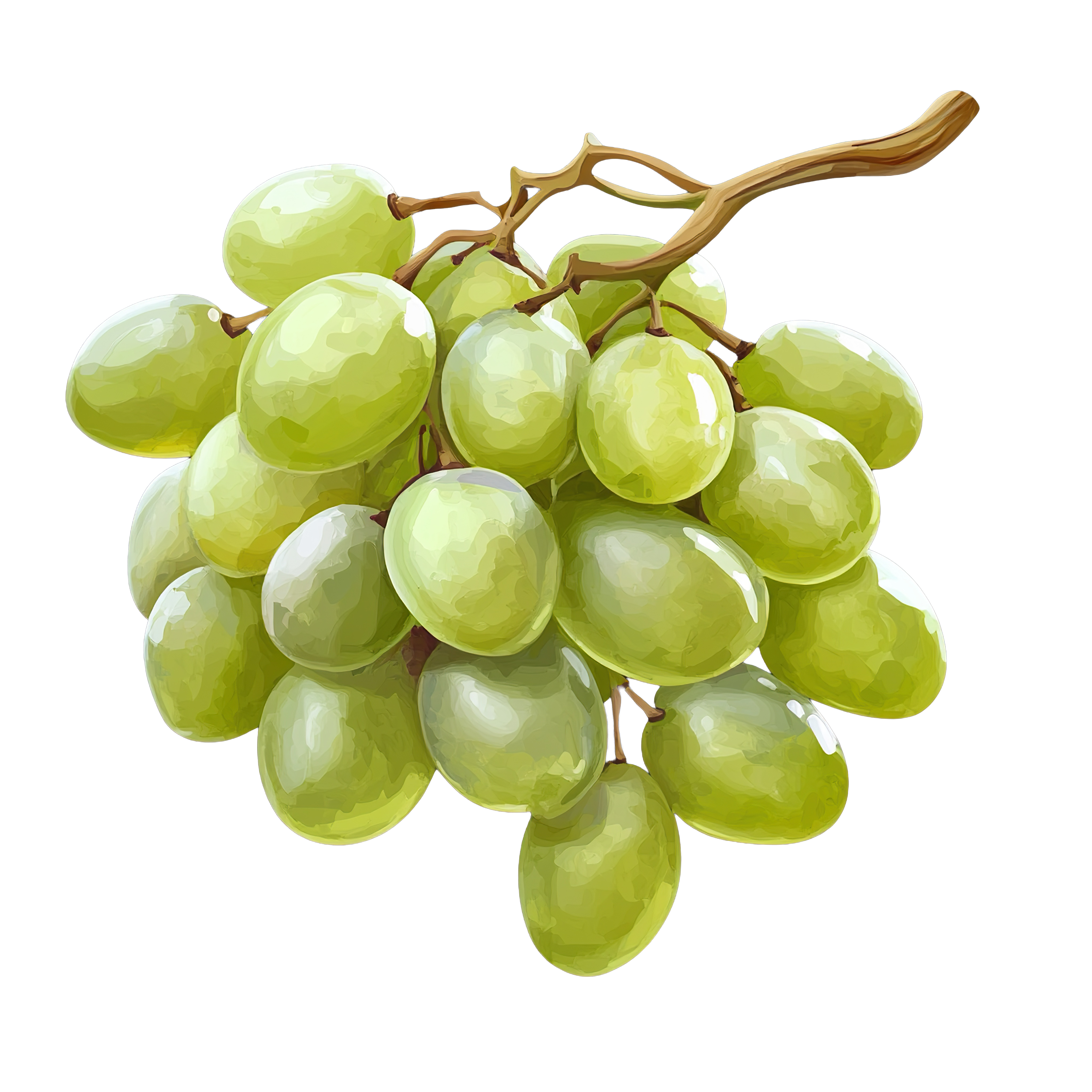 Green Grapes Bunch with Detailed Texture on Stem Green grapes bunch with realistic texture and detailed stemDownload PNG ▼Download JPG ▼Related posts:Sliced Cantaloupe Melon with Textured Green Rind fruit orange seeds clipart vectorWatercolor Mirabelle Plums with Green LeavesHedgehog Holding Apple Cartoon Vector IllustrationCartoon Witch Character Riding a Broomstick for HalloweenBlack cat wearing orange hooded outfitDetailed Blackberry Cluster with Green Leaves fruit clipart vector art food drinkTricolor fox clipart illustration with large eyesColorful Tribal Sun Face with Radiant Rays on BlackIntricate Gingerbread Cookie Design with Red and Teal IcingWoman in Red Victorian Outfit with Holiday HatVibrant Butterfly With Multicolored Wings On X50Intricate Blue Watercolor Snowflake Design on Black Background
