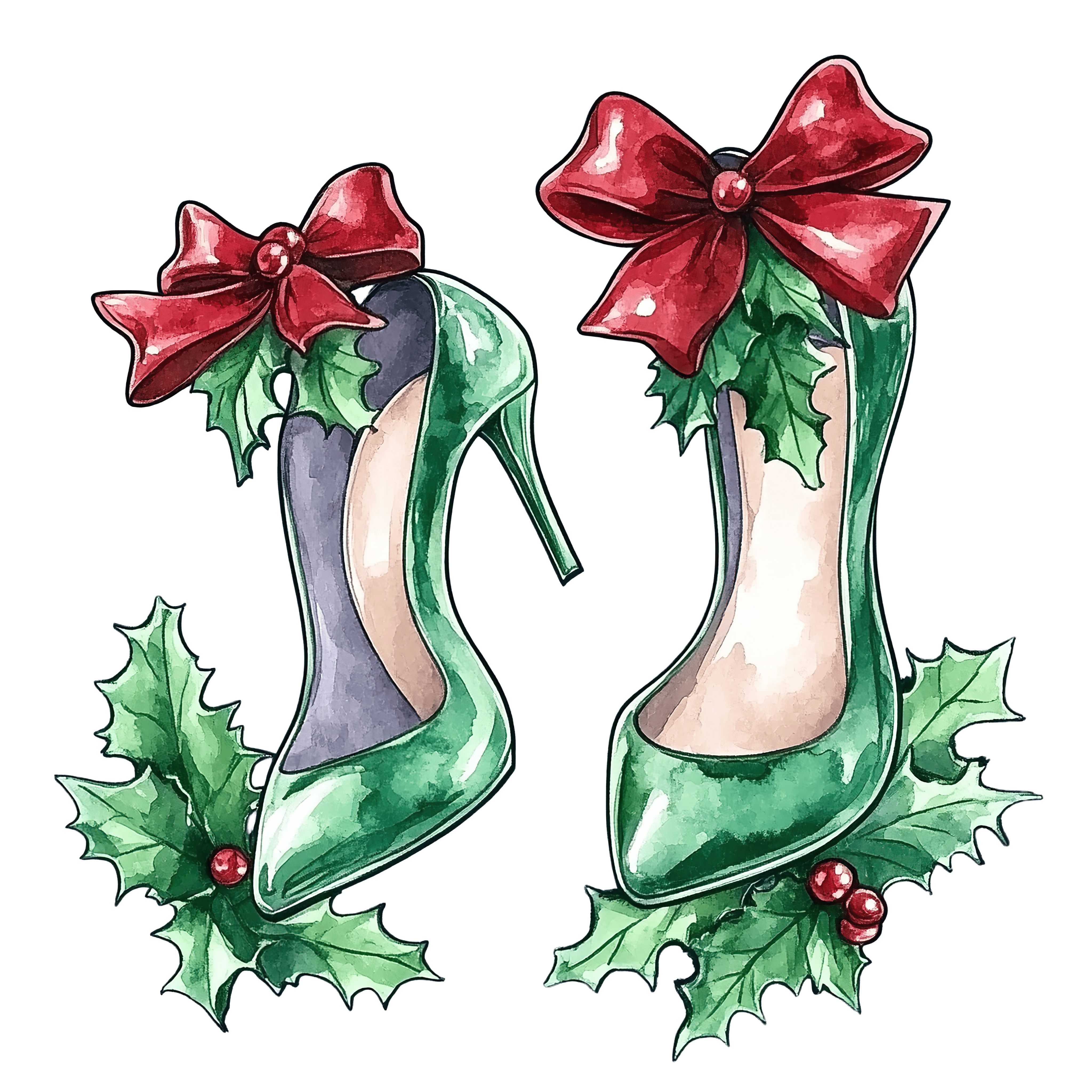 Green High Heels with Red Bows and Holly Leaves Green high heels adorned with red bows and holly leaves for festive occasions.Download PNG ▼Download JPG ▼Related posts:Clipart of Hot Chocolate with Marshmallows in a MugStrawberry Cocktail with Lime Slice in Glass drink beverage garnish watercolor clipartVibrant Pink And Blue Butterfly With Detailed WingAssorted Colorful Fruits Including Apples and Citrus berries clipart vector art printableCartoon zebra holding candy with red ribbonSliced Lemon with Fresh Green Leaves citrus fruit yellow clipart vector artBlue Butterfly With Detailed Wing Patterns Illustration WingsBlonde Girl Surrounded by Red Poinsettias and BerriesGlass of Iced Tea with Mint Leaves on TopGrey wolf wearing a red scarf clipartVibrant Butterfly Art With Intricate And Colorful WingVibrant Galaxy Themed Butterfly With Cosmic Patterns On Wings