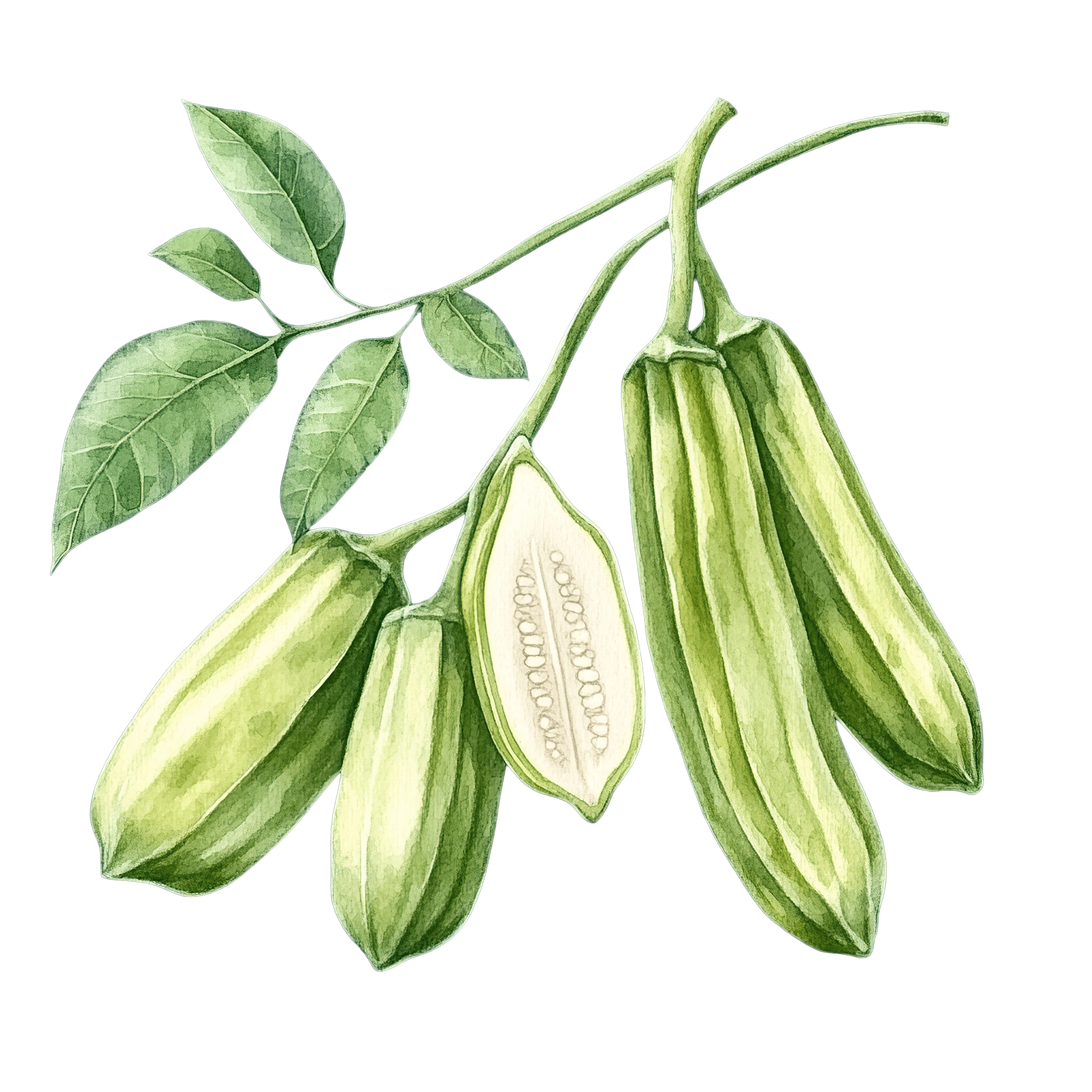 Green Okra Pods with Leaves and Cross-Section View Green okra pods with leaves and a cross-section view.Download PNG ▼Download JPG ▼Related posts:Purple Hippo Holding Candy Cane ClipartPurple Rose with Dew Drops on Black Background IllustrationChocolate Glazed Donut with Whipped Cream Topping ClipartVibrant Red Barberry Berries on a BranchOrange Cartoon Crab with Leaf Details ClipartWoman Wearing Santa Hat with Festive Red Outfit IllustrationBotanical Art of Parsnip with Lush Green LeavesGlass teacup filled with vibrant red tea on saucerVibrant Red Cherries with StemsVibrant Butterfly With Blue And Orange Wings InColorful Butterfly Illustration With Radiant Orange And YellowBlueberry Yogurt in a Cup with Fresh Berries and Mint