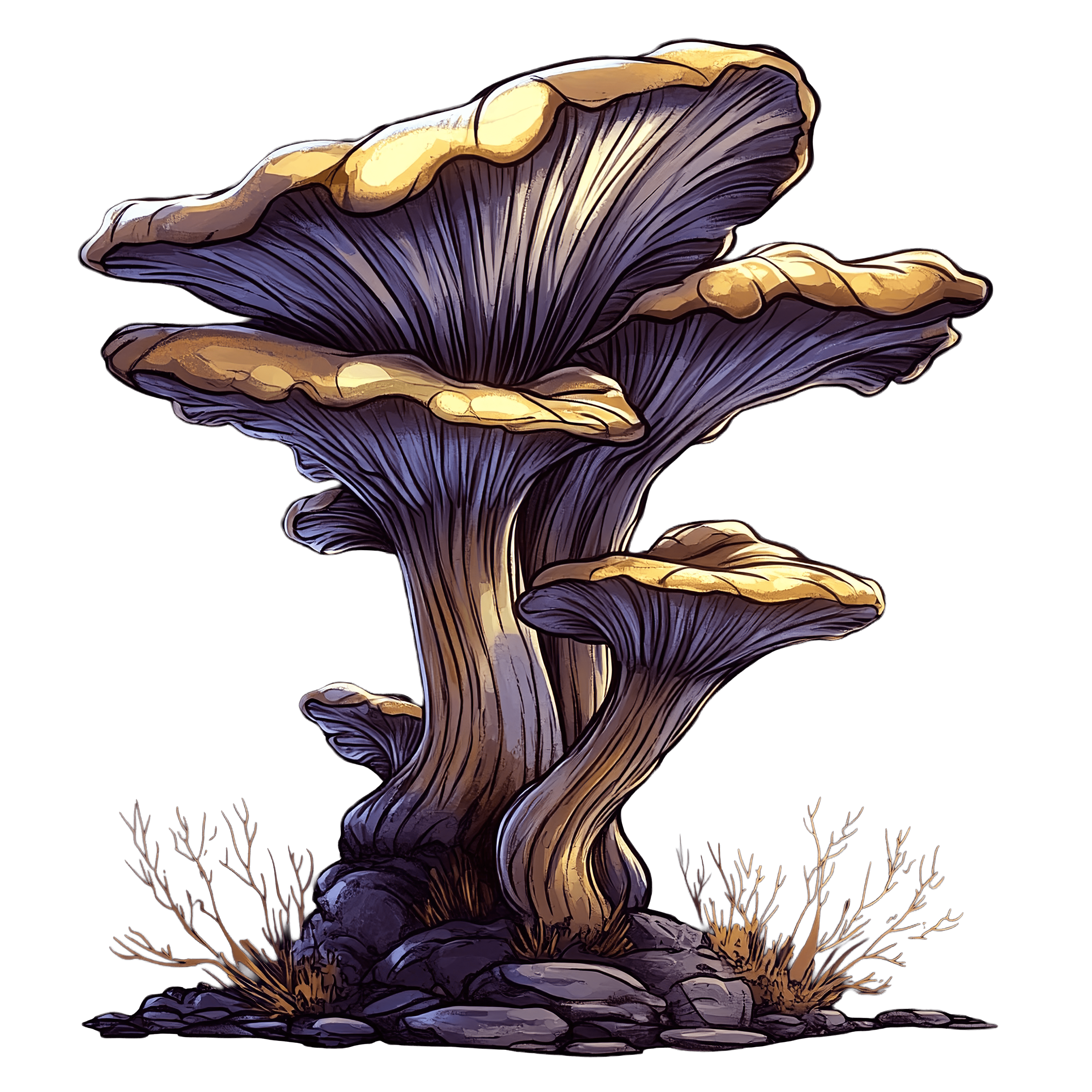 Group of Mushrooms with Intricate Caps and Stems Cluster of mushrooms with textured caps and stems on rocky ground.Download PNG ▼Download JPG ▼Related posts:Glass of Iced Tea with Mint Leaves on TopBlue and Yellow Parakeet Clipart IllustrationTwo Slices of Baklava with Pistachio and Rose PetalsPink and White Petunia Flowers with Green Leaves IllustrationVibrant Pink Dahlia Flower with Detailed Petals and Green LeafYellow Sun with Radiating Spokes and Facial Features IllustrationDetailed Nutcracker Soldier with Intricate Red Uniform and HatWhole and Halved Purple Figs with Detailed TextureGreen Pea Shoot Plant with Multiple Leaves on StemCartoon Otter Clipart with Light Brown FurFestive Owl Surrounded by a Christmas Wreath with BerriesBright Yellow Daffodil Flowers with Green Stems Illustration