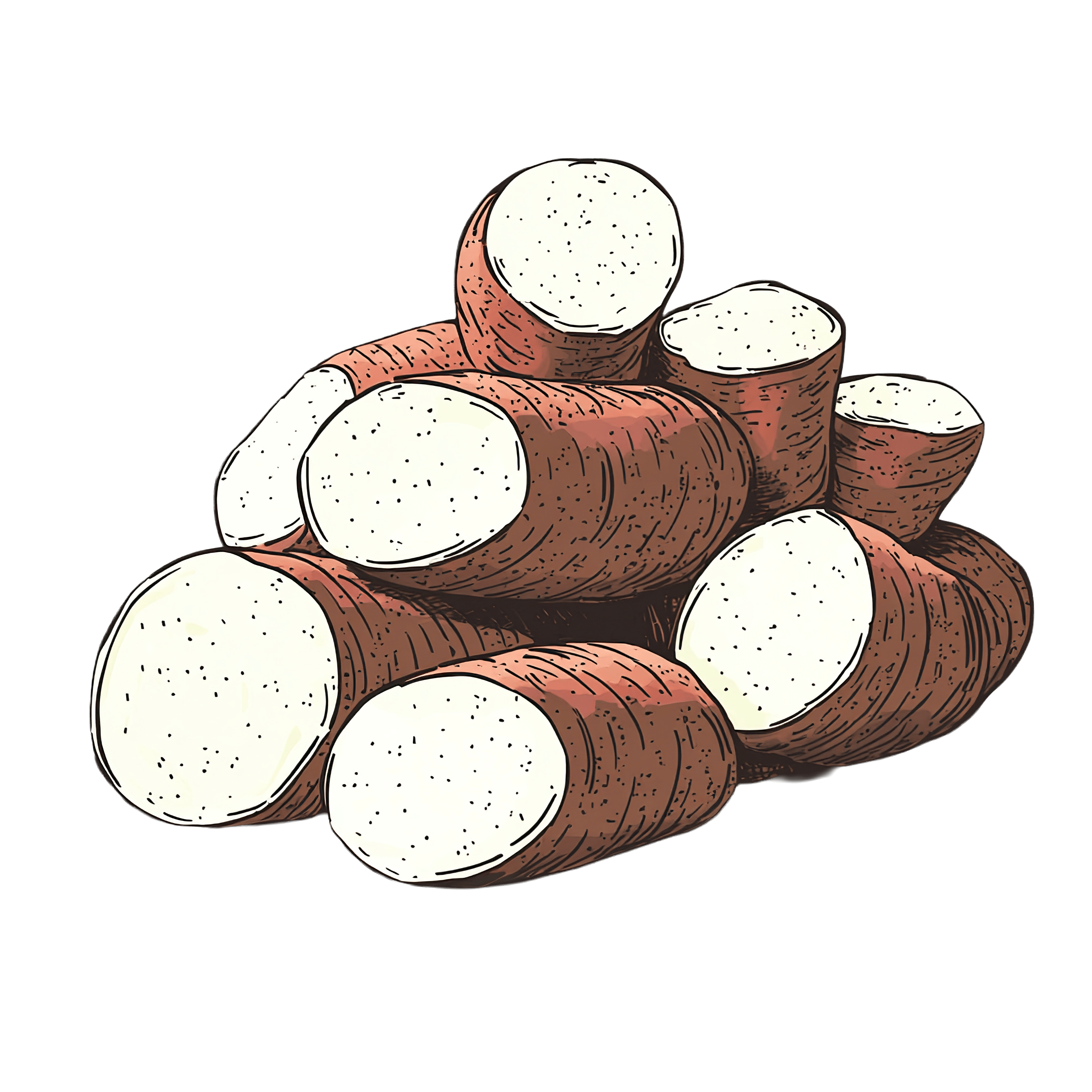 Hand-drawn cassava roots with detailed texture and shading Cassava roots depicted with intricate texture and cross-section details.Download PNG ▼Download JPG ▼Related posts:Cartoon yellow duckling with big eyesOpen Book with Colorful Rainbow and Clouds AboveWoman in Traditional Christmas Attire with Red Scarf and HollyDetailed Butterfly Clipart With Gemstone Accents On WingsWatermelon Juice in Glass with Fresh Slices and StrawDecorated Christmas Tree with Red Ribbons and OrnamentsRambutan Fruit with Spiky Red Skin and White FleshButterfly Flying Over a Colorful Flower FieldTraditional Christmas Pudding with Holly and Berries DecorationHedgehog Holding Red Apple Clipart IllustrationGinger Kitten Wearing Santa Hat Next to Christmas OrnamentRaspberry Smoothie in Tall Glass with Straw and Mint