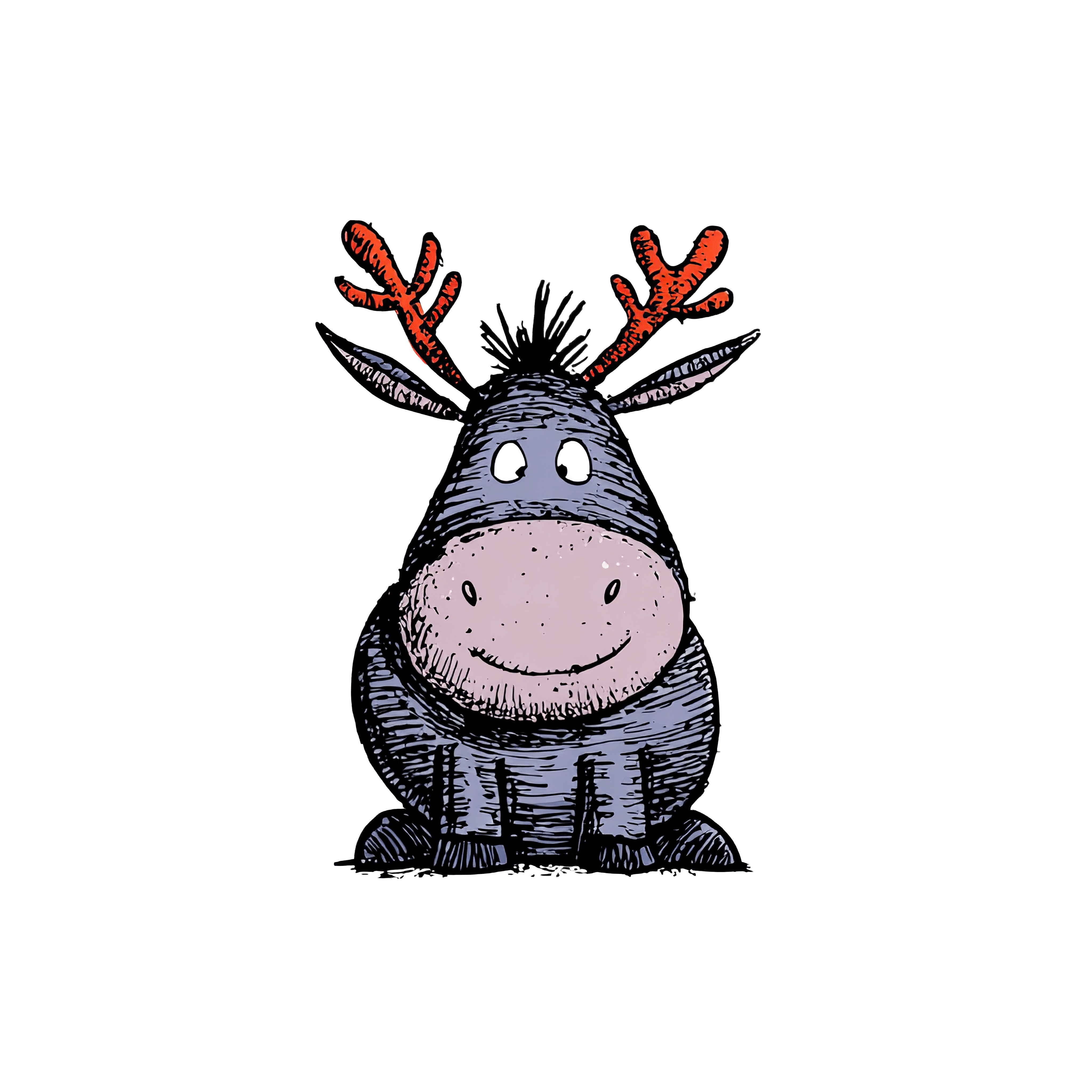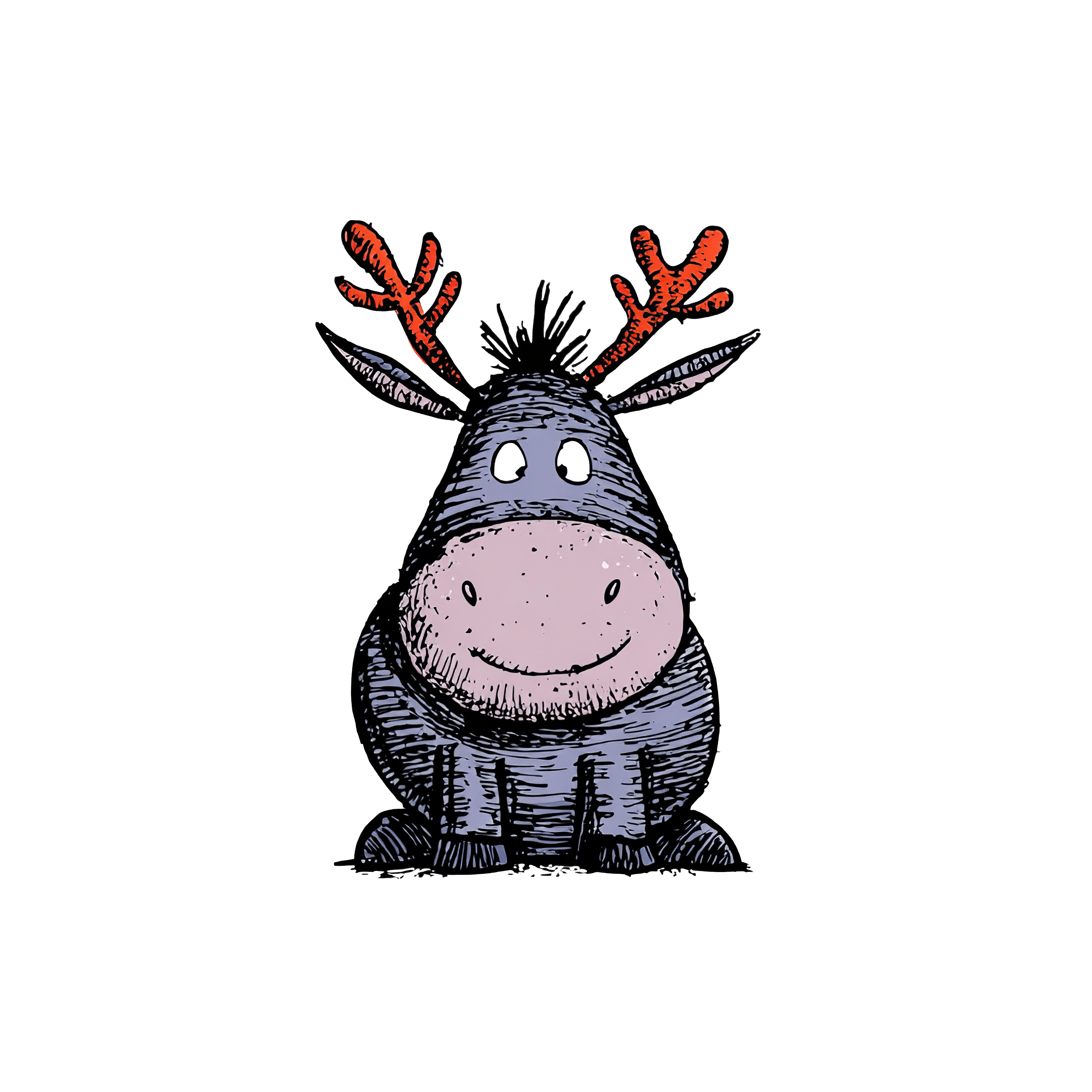 This image features a hand-drawn moose clipart design. The moose has prominent red antlers and a rounded face, characterized by simple linework. It is presented in a cartoon style with textured shading. The moose is centered and features a minimalistic approach, focusing on its distinct yet playful form. The use of bold outlines and simple color contrast enhances its visual appeal, making it suitable for various creative design projects.
