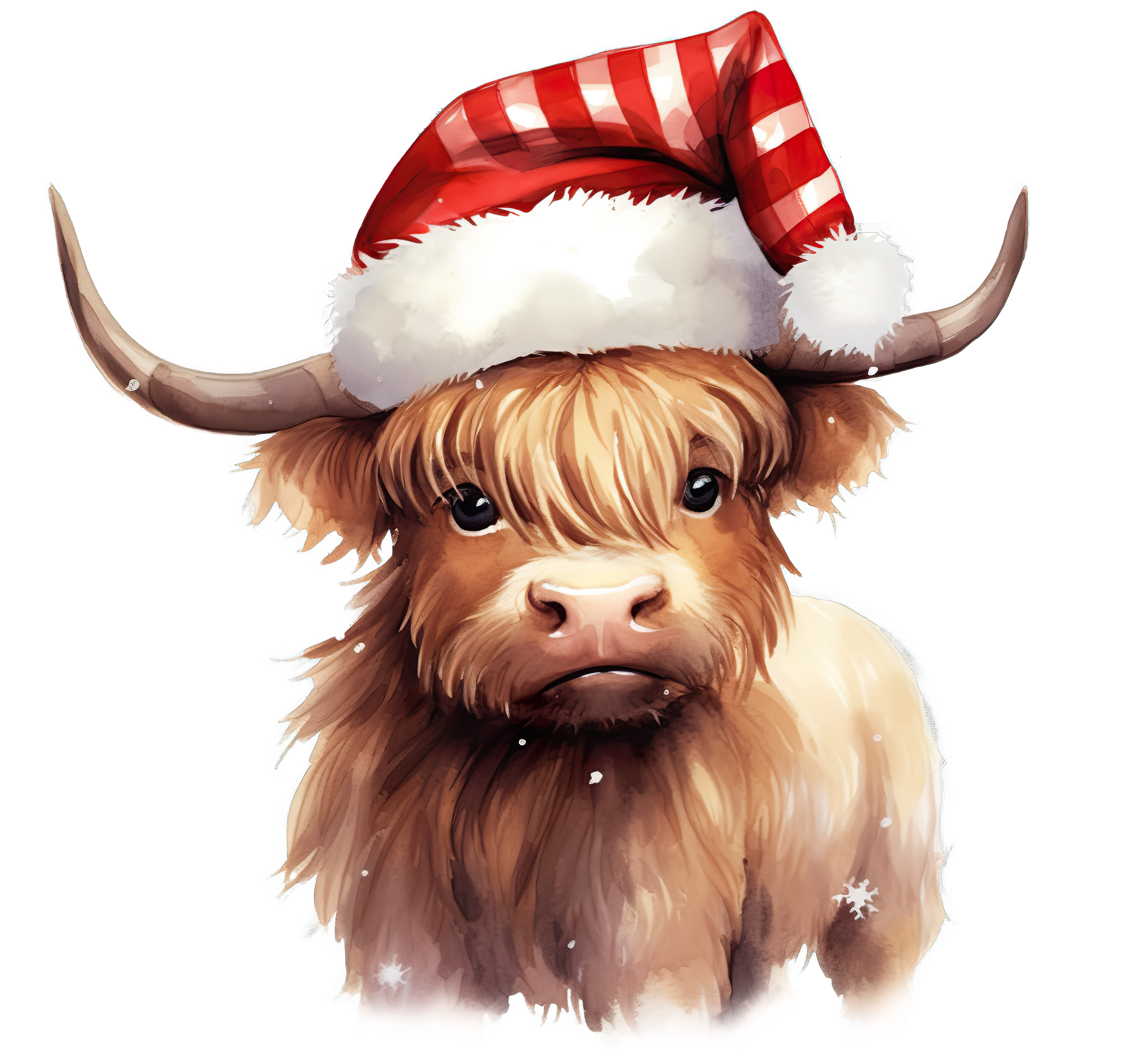 Highland Cow Wearing Red Striped Santa Hat Illustration Highland cow with large horns wearing a festive red striped Santa hat.Download PNG ▼Download JPG ▼Related posts:Vibrant Multicolored Kayak Illustration on Black BackgroundIntricately Designed Red and White Decorative Cookie ClipartStrawberry Milkshake with Whipped Cream and Straws beverage dessert drink clipart vectorTwo Glasses of Lemon Water with Ice and Mint LeavesMouse in Green Outfit Clipart IllustrationOrange Cat With Striped Tail Clipart IllustrationPelican clipart with orange beak and white feathersGlossy Black Heart Illustration with a Watercolor Texture EffectGreen cucumber vegetable clipart with realistic texture food vector art art freshCartoon Pirate Character in Traditional Pirate Costume hat clipart vector art printableWatercolor Turnip with Green Leaves and Purple SkinChristmas Tree with Pinecones and Festive Gift Boxes
