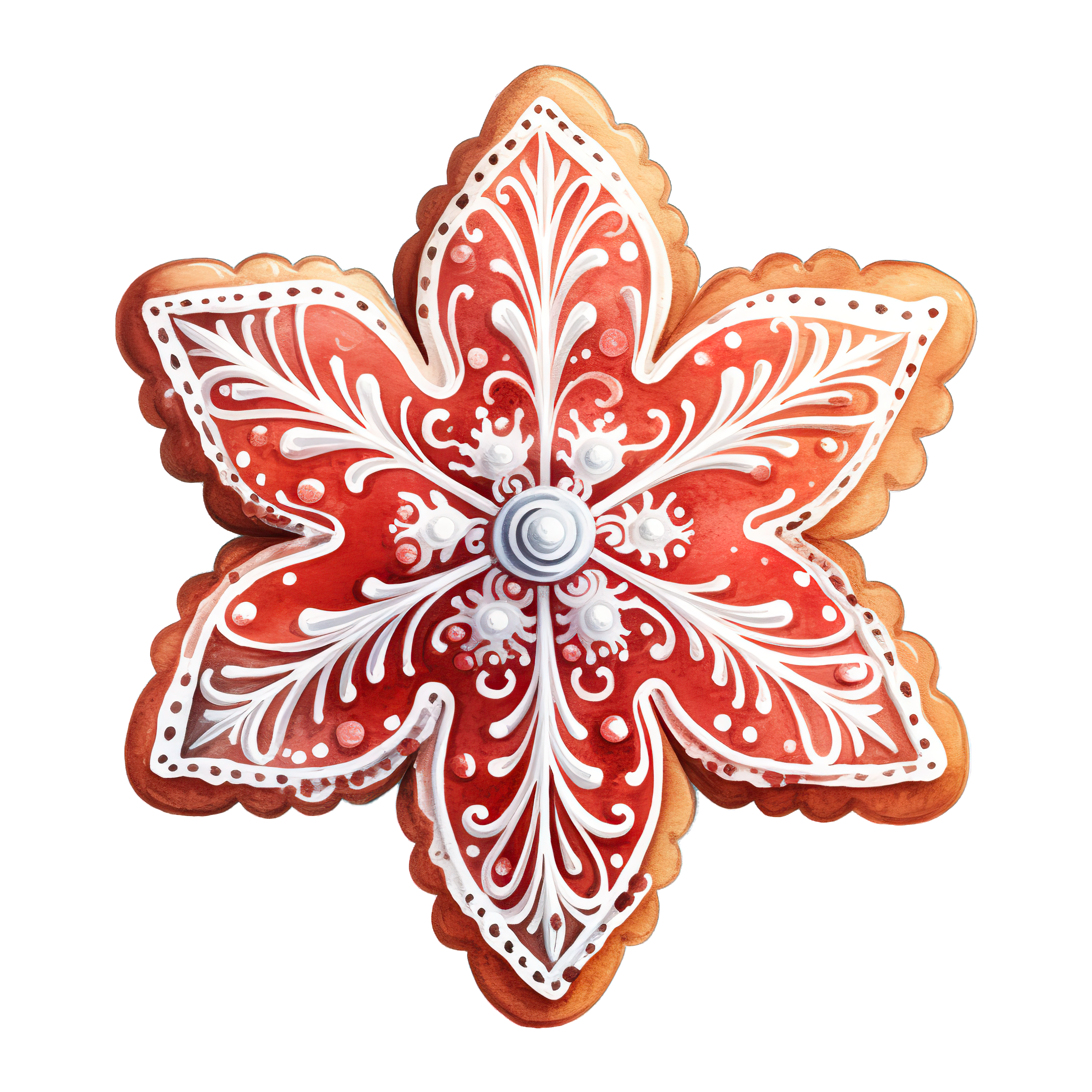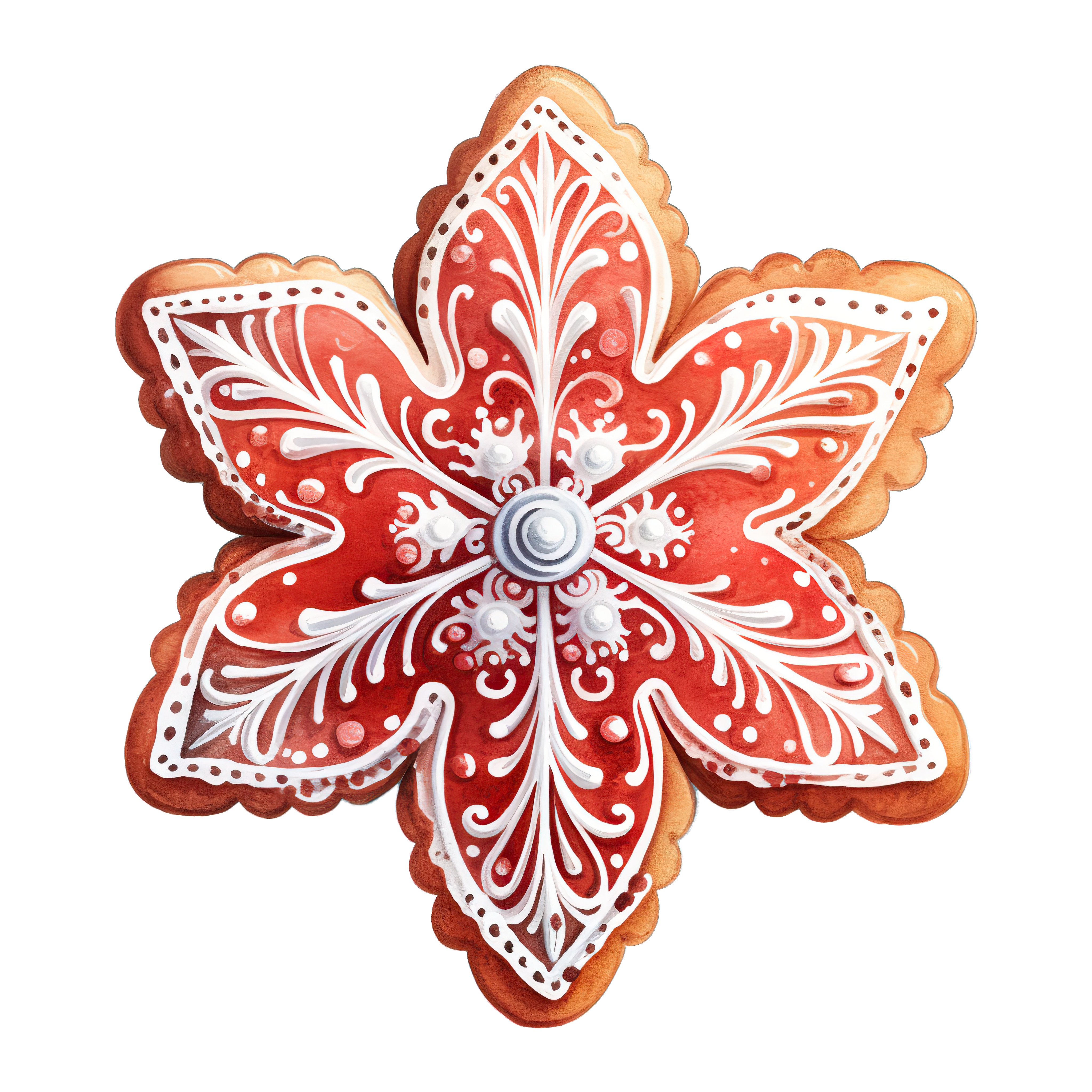 Intricately Decorated Christmas Star Cookie with White Icing Red star-shaped cookie with detailed white icing design for Christmas.Download PNG ▼Download JPG ▼Related posts:Bowl of Rice Garnished with Green Herbs and SpicesCartoon duckling wearing a Santa hatColorful Butterflies and Flowers Clipart DesignSweet Pink Donut with Rainbow Sprinkles Vector ArtVibrant Butterfly Showcasing Multicolored Wings In FlightExotic Pineapple and Coconut Fruit Vector ArtVibrant Orange And Pink Butterfly With Glittering DetailsWatercolor Spinach Leaves Vector Art Fresh Green VegetablesWhole and Sliced Pears with Seeds in Clipart StyleWhole and Sliced Bael Fruit with Green LeavesWatercolor Green Asparagus Stalks Vector ArtDetailed Digital Illustration of Purple Foxglove Flower