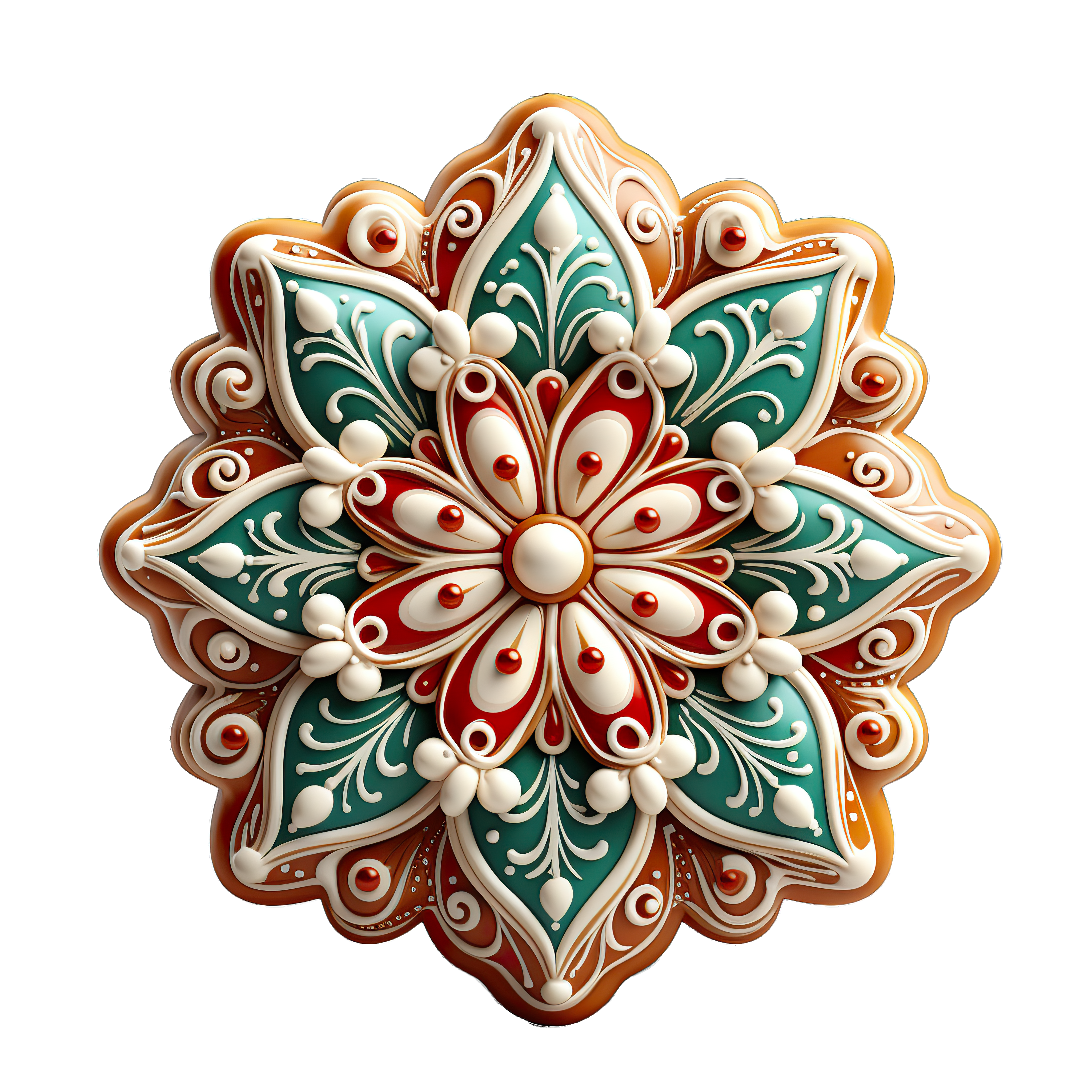 Intricately Decorated Iced Gingerbread Cookie with Floral Patterns Iced gingerbread cookie with intricate floral designs in red, white, and green.Download PNG ▼Download JPG ▼Related posts:Cartoon Ambulance Blue Cross RedRed Velvet Cupcake with Swirled Frosting Design dessert baked good sweet treatWhite bird with orange beak and feetRed Christmas Ornament with Intricate Gold Floral DesignRed and White Striped Candy Cane Icon for Christmas ThemesCartoon Character with Large Eye and Blue HoodieLemon Cheesecake Slice with Whipped Cream and Lemon GarnishMojito Cocktail with Lime and Mint LeavesPeanut Butter Cookie with Textured Surface DesignYoung Girl Holding a Festive Red Gift BoxDetailed Botanical art of a Flowering Plant flower pink blossom green leavesTwo Green Pea Pods with Detailed Texture on Black