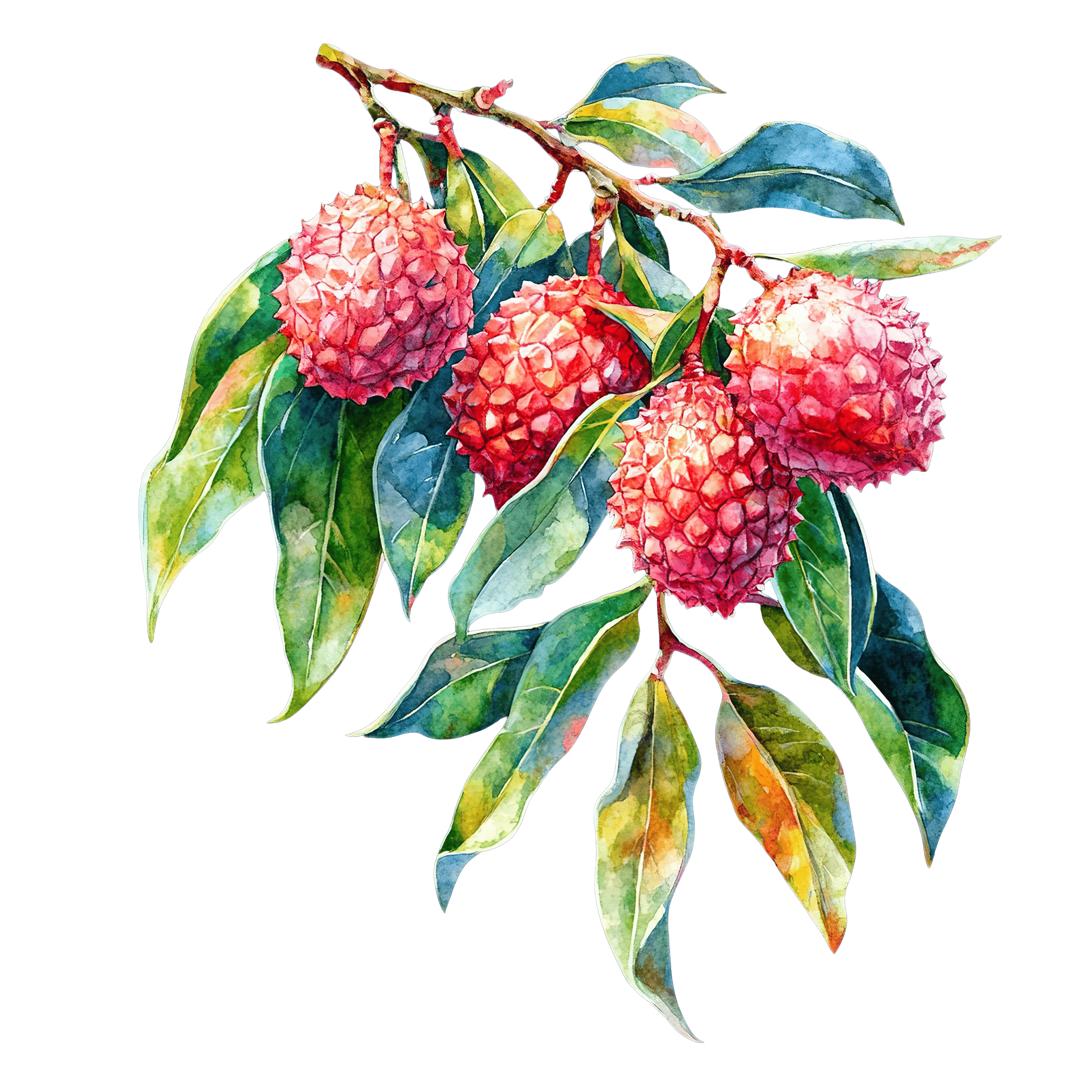 Lychee Branch with Leaves in Watercolor Style fruit plant clipart vector art Lychee fruits hanging from a branch with green leavesDownload PNG ▼Download JPG ▼Related posts:Coconut Half with Blue and White Straw for Refreshing DrinkGolden Brown Croissant with Flaky Layers pastry bread food breakfast bakery clipartGlittery Golden Butterfly With Sparkling WingsWatercolor Purple Plums with Leaves and Halved FruitGreen Cartoon Frog Holding Sparklers ClipartDetailed Butterfly Clipart With Gemstone Accents On WingsPurple And Blue Butterfly With Detailed Wing PatternsWhite Hibiscus Flower with Green Leaves on Black BackgroundSnow Globe with Festive House and Decorative Christmas ElementsRaspberry Topped Cupcake with Whipped Cream and SauceStack of Colorful Books with a Red Apple on TopDecorated Christmas Tree with Sparkling Ornaments and Colorful Gift Boxes