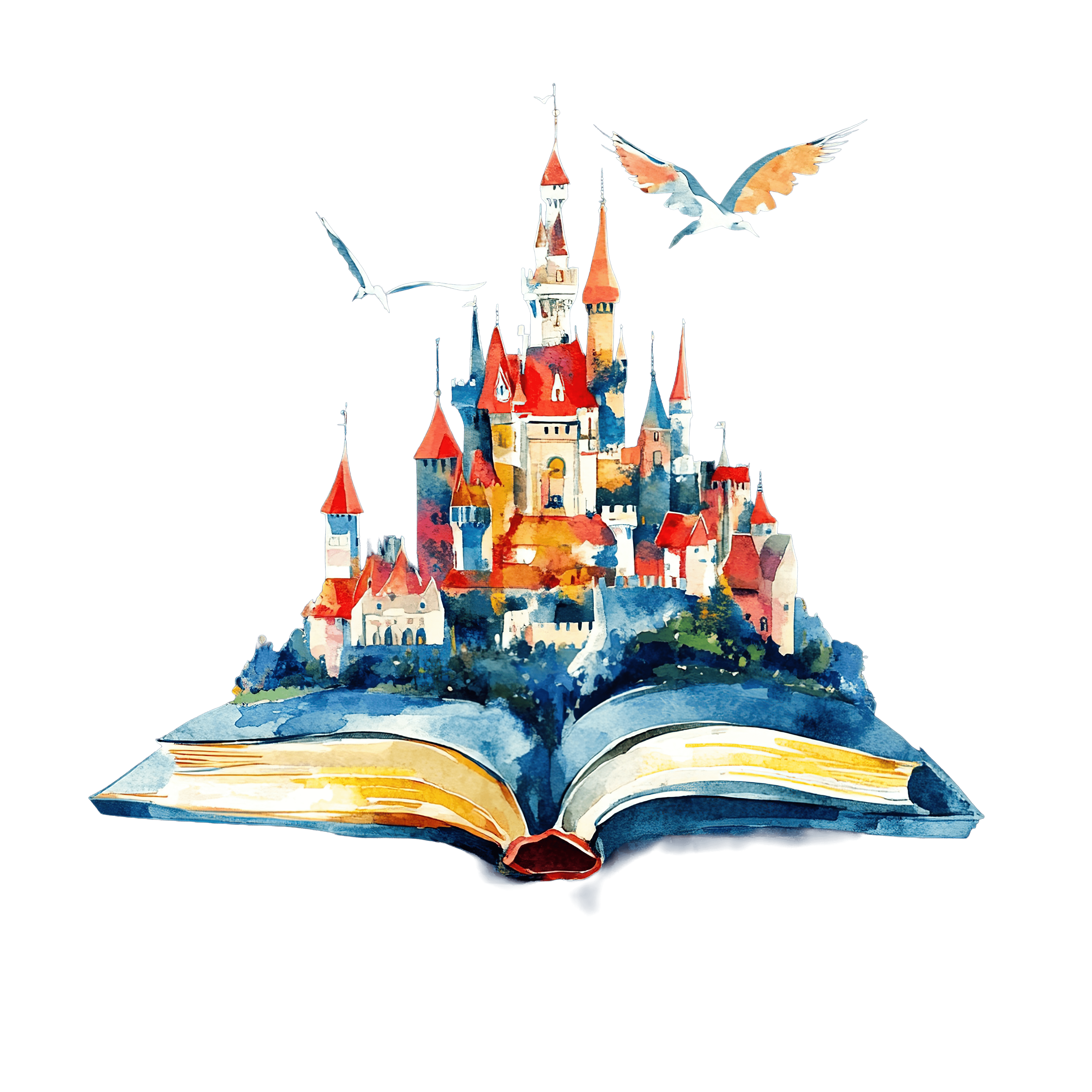 Magical Castle Emerging from an Open Storybook Illustration A colorful castle emerging from an open storybook with birds flying above.Download PNG ▼Download JPG ▼Related posts:Elegant Wineglass Filled with Burgundy Red Wine Vector Art IconVibrant Butterfly With Red And Black Patterned WingsWatercolor Slice of Juicy Red Watermelon Clipart green fruit summer vector artTwo Watermelon Slushies with Slices and Straws drinks red cups beverage clipartWatercolor Cassava Roots and Green Leaves ArtworkFestive Christmas Arrangement with Gift Box and Pine ConesMint Tea in Glass with Ice Cubes and LeavesWatercolor Corn on the Cob with Green HusksCartoon Ghost Character with Big Eyes and Open ArmsDetailed Illustration Of A Butterfly With Vibrant OrangeButterfly With Vibrant Orange And Black Wing PatternsChristmas Tree with Ornaments and Wrapped Gift Boxes