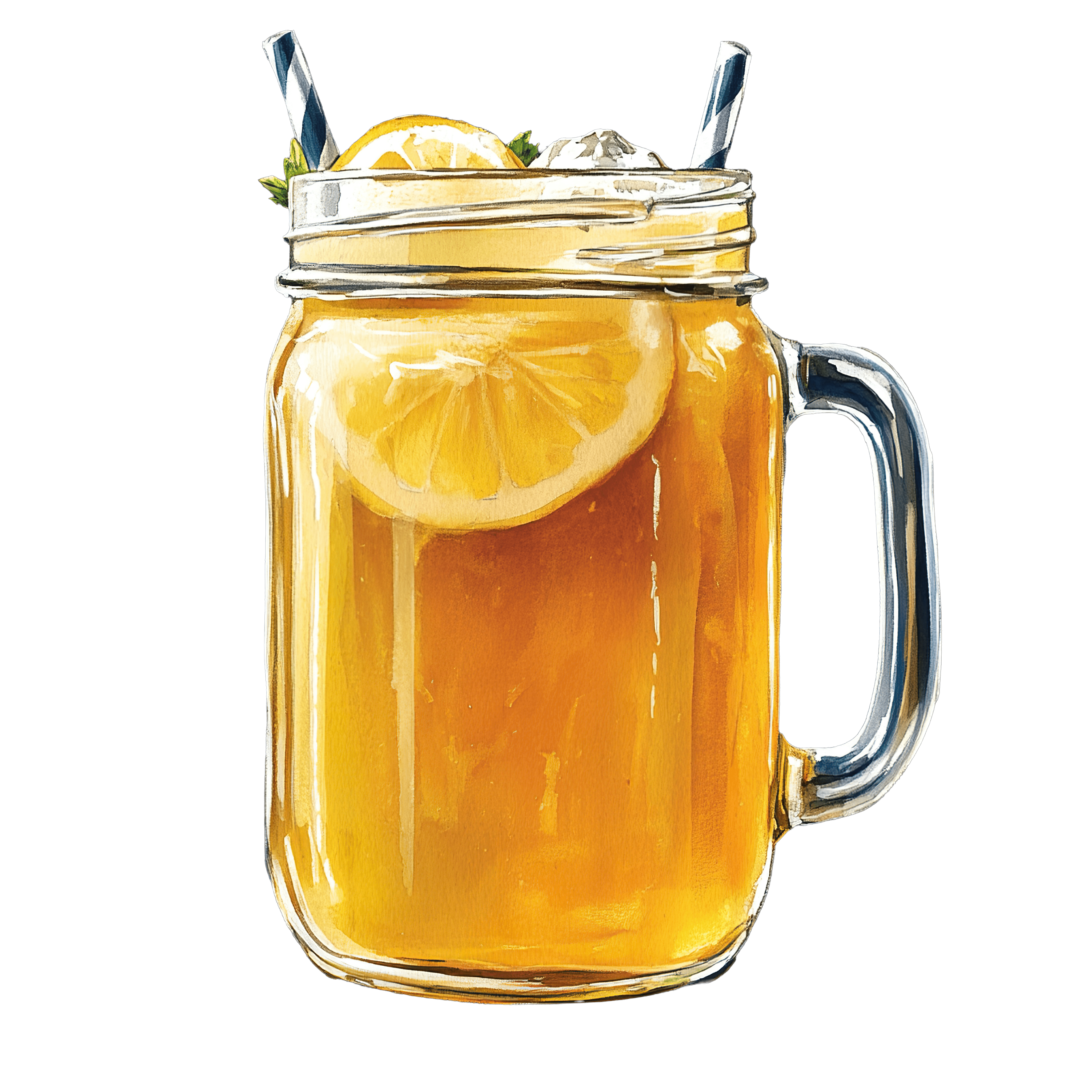 Mason Jar Filled with Iced Tea and Lemon Slices Mason jar containing iced tea with lemon slices and strawsDownload PNG ▼Download JPG ▼Related posts:Woman with Blonde Hair Wearing Red Bow and Plaid ShirtWatercolor Teacup with Red Heart Design on BlackWhite and Yellow Daffodil Flowers in Detailed Vector IllustrationCapybara Sitting in a Pool Clipart IllustrationIntricate Christmas Snowflake Cookie with Red and Teal IcingWatercolor Mizuna Sprouts with Green LeavesGreen Okra Pods and Slices with Detailed TextureRed ant cartoon vector on a transparent backgroundPink Flowers and Green Leaves in Artistic Watercolor StyleRipe Red Cherries with Green Leaves in Watercolor StyleWoman Wearing Santa Hat with Red Scarf and EarringsHeart-Shaped Key with Colorful Paint Splash Background