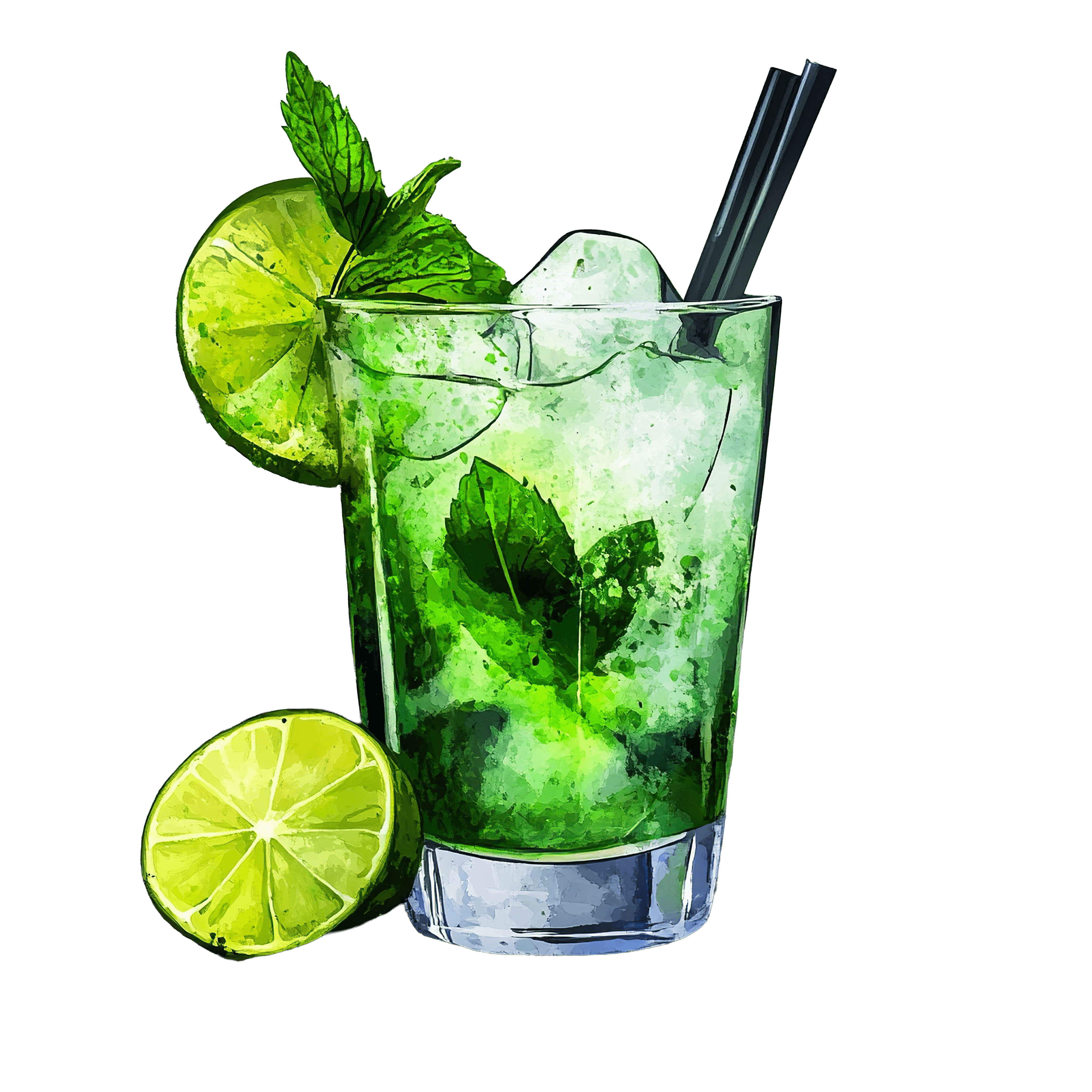 Mojito Drink with Lime and Mint Mojito cocktail in a glass with lime slices and mint leaves.Download PNG ▼Download JPG ▼Related posts:Botanical Blackberries and Leaves Vector ArtOrnate Gingerbread Cookie with Intricate Decorative PatternsBird Wearing a Large Wizard Hat ClipartVibrant Blue And Purple Butterfly With Sparkling WingsCartoon Chameleon Wearing a Purple Wizard HatWatercolor Peach with Leaf and Slice Detail fruit clipart vector art printableFresh Carrot and Ginger Juice with Parsley GarnishVibrant Autumn Tree with Orange and Yellow Leaves in Watercolor StyleDetailed Artichoke Clipart with Green LeavesStack of Three Colorful Wrapped Gifts with Elegant RibbonsGlass of Apple Juice with Whole and Sliced ApplesSliced Dragon Fruit with Vibrant Pink and Yellow Skin