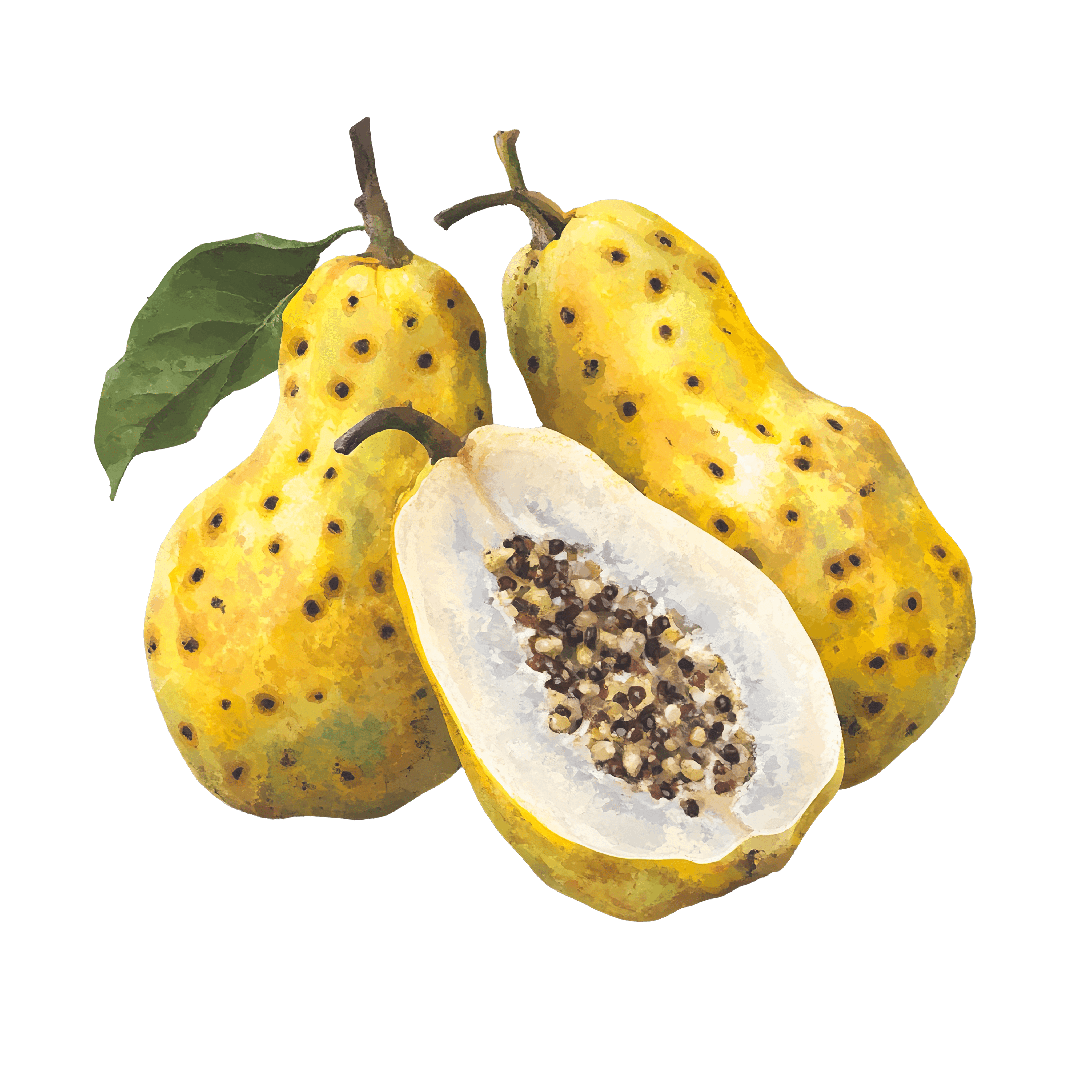 Naranjilla Fruit with Leaf and Halved View Naranjilla fruit depicted with a leaf and a halved section.Download PNG ▼Download JPG ▼Related posts:Yellow snail clipart with spiral shellCartoon giraffe illustration with smiling expressionThree Cartoon Elves with Gifts in Christmas-Themed OutfitsWatercolor art of Fresh Ginger Roots with Green LeavesWatercolor depiction of whole and halved passion fruitsFestive Gingerbread House with Snow and Candy DecorationsChocolate Drizzled Pastry with White Icing Topping dessert baked sweet clipart vectorChocolate Drip Cake with Cherries and Whipped Cream ToppingPortrait of a Child Surrounded by Festive Red PoinsettiasWoman with Red Hair in Large Red Hat and Black OutfitChild Surrounded by Festive Poinsettia and Holly LeavesBeautiful Cherry Blossom Branch with White Flowers in Full Bloom