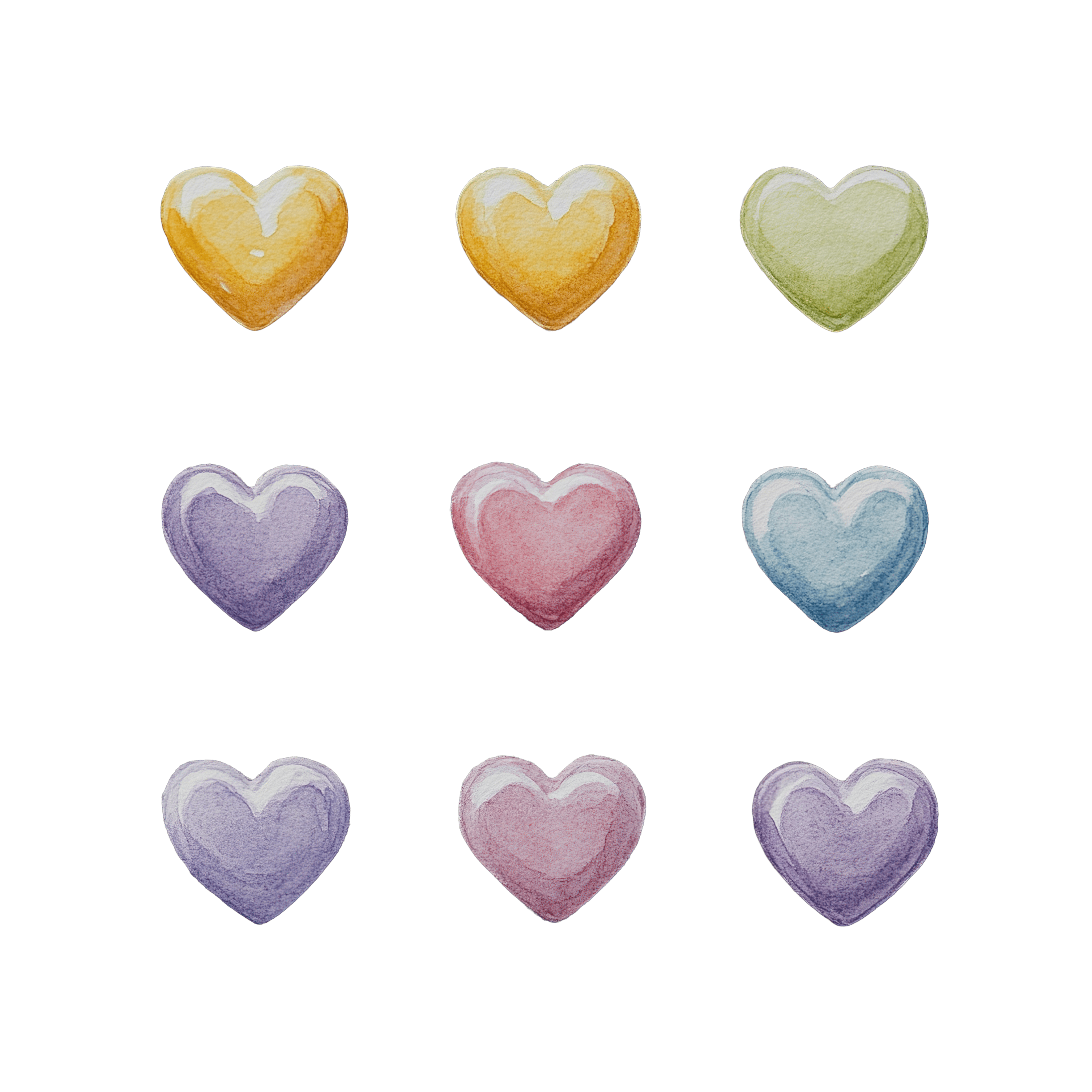 Nine Multicolored Heart Shapes in a Watercolor Clipart Style Nine heart shapes in various colors arranged in a grid pattern.Download PNG ▼Download JPG ▼Related posts:Magical Castle Emerging from an Open Storybook IllustrationHand-Drawn Custard Apple with Detailed Textured Skin fruit green clipart vector artGalaxy Themed Butterfly With Starry Night Wings Illustration GalaxyCovered Wooden Wagon with Canvas Top and Wooden WheelsBlueberry Muffin with Fresh Berries in Paper LinerBubble Tea Cup with Straw and Tapioca PearlsLychee Drink with Fresh Lychees and Lemon SliceWoman Wearing Red Bow and Green Scarf in Fashionable AttireCartoon Dolphin Leaping Through Hoop ClipartRefreshing Iced Coffee Beverage with Ice CubesFestive bird with orange feathers and a red Santa hatColorful Starry Light Bulbs Hanging as Festive Decorations