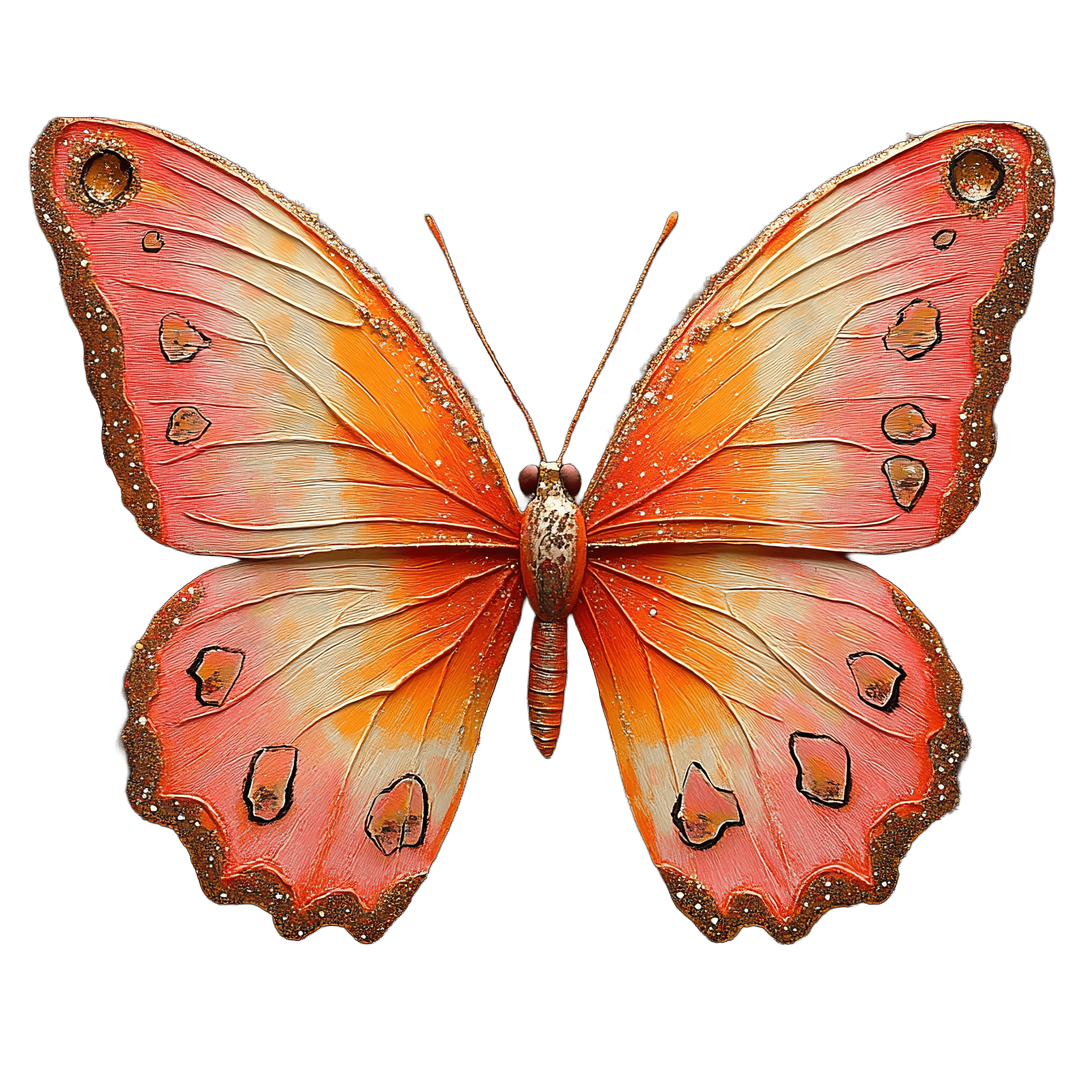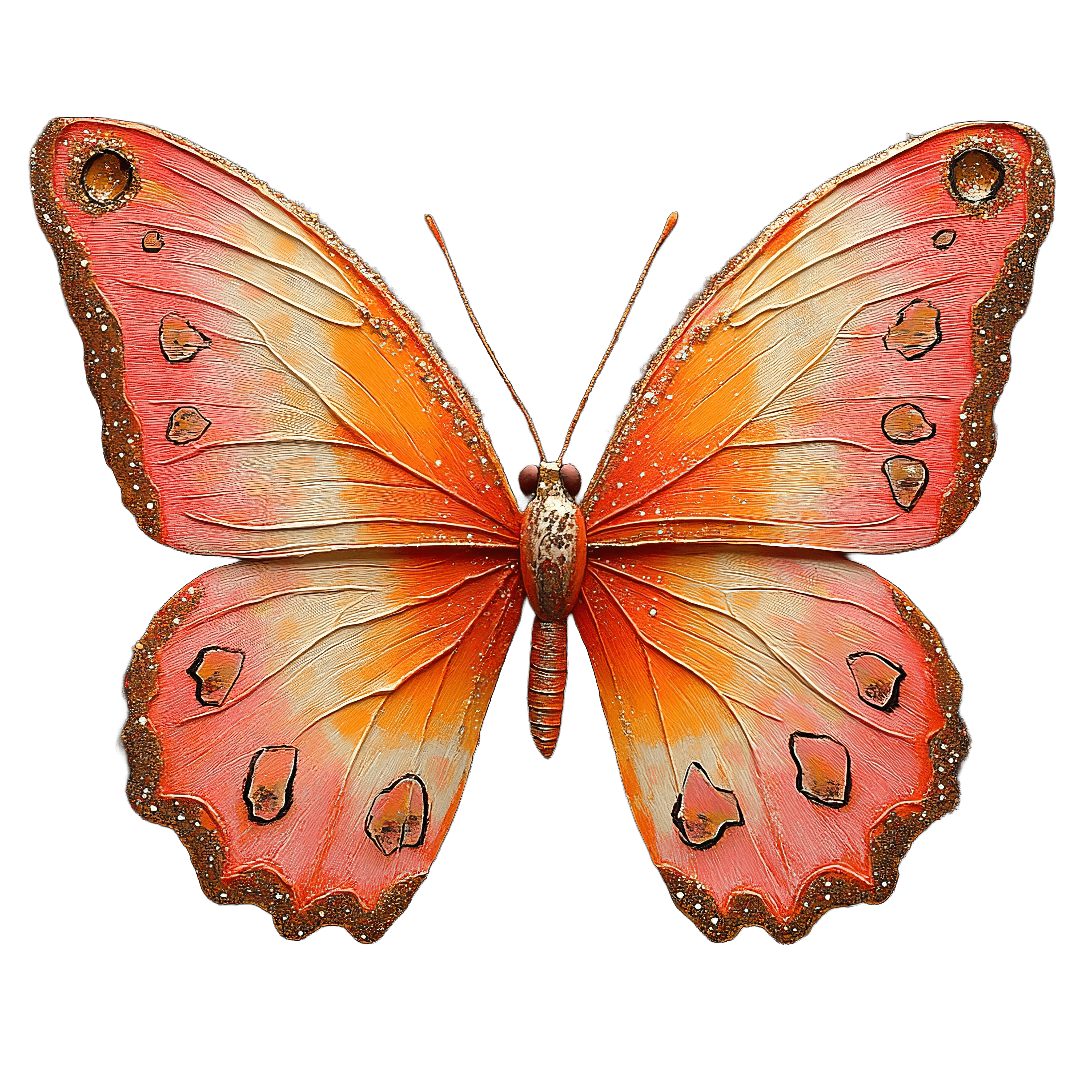 Orange And Pink Butterfly With Detailed Wing Patterns Orange and pink butterfly featuring intricate wing patterns.Download PNG ▼Download JPG ▼Related posts:Guinea Pig Clipart Wearing Pumpkin HatSlice of Blueberry Cheesecake with Fresh Blueberries on TopColorful Peacock Tail Illustration PngCartoon wolf wearing a large black witch hatYellow prairie dog clipart in side viewWatercolor Mizuna Sprouts with Green LeavesPig in Santa Outfit ClipartOrange monkey with spiky fur clipartGiraffe Blowing Bubbles Clipart IllustrationColorful Gradient Winged Butterfly With Sparkling DetailsRefreshing Mint and Lemon Iced Tea Clipart IconClassic White Muscle Car with Blue Racing Stripes Clipart