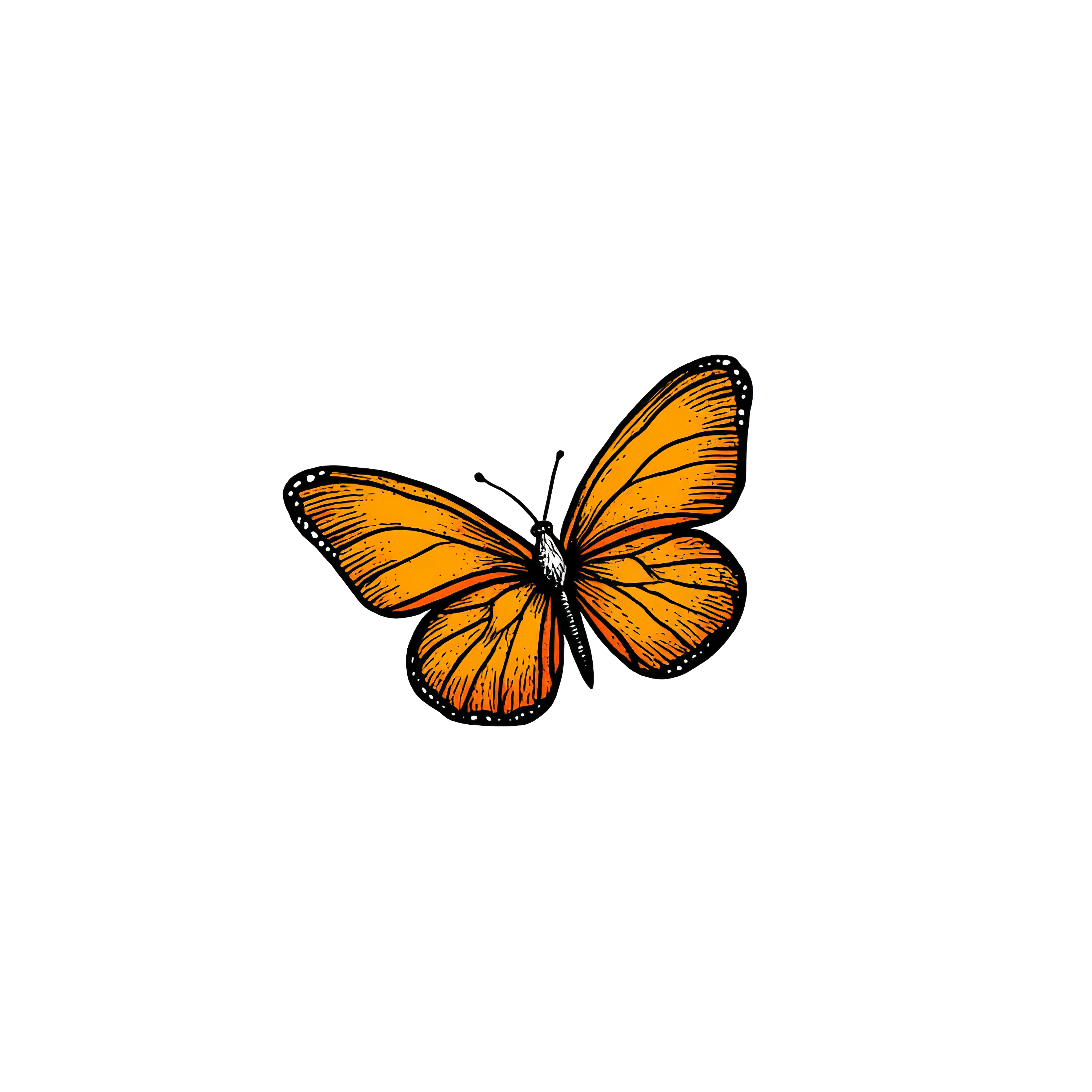 This clipart shows an orange butterfly with detailed wing patterns. The butterfly is depicted with black and white accentuations along its wings, giving it a striking appearance. The illustration is clear and highlights the symmetrical beauty of the butterfly's design. It can be used for various educational or decorative purposes, focusing on insect life.
