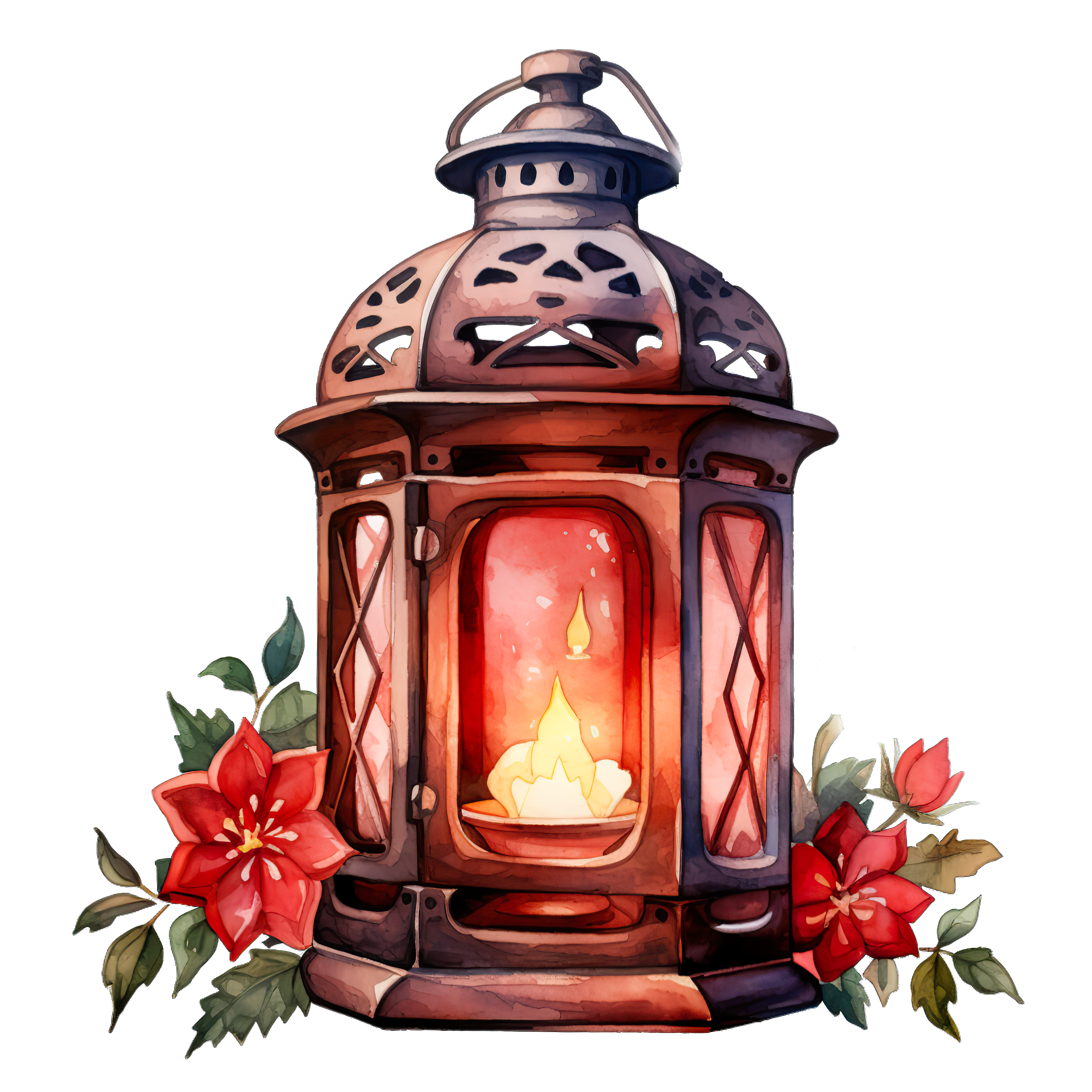 Ornate Lantern with Glowing Candle and Red Flowers Design Ornate lantern with glowing candle surrounded by red poinsettia flowers.Download PNG ▼Download JPG ▼Related posts:Woman in Red Elegant Hat with Feather DecorationBright Parrot on Wooden Swing ClipartYellow Banana Fruit with Green Leaf Clipart seeds vector art printable tropicalWatercolor Kiwi and Lime Slices with Refreshing DrinkTall Glass of Pink Grapefruit Juice with Ice and SliceBlue Watercolor Plastic Water Bottle DesignColorful Butterfly Displaying Intricate Patterned Wings In ArtisticPink Fuchsia Flowers With Green Leaves and Black BackgroundWoman in Red Turban and Scarf with Bold EarringsRed Winter Boots with Holly and Berries IllustrationWatercolor Broccoli Clipart with Green and Blue HuesCartoon donkey playing soccer with a ball