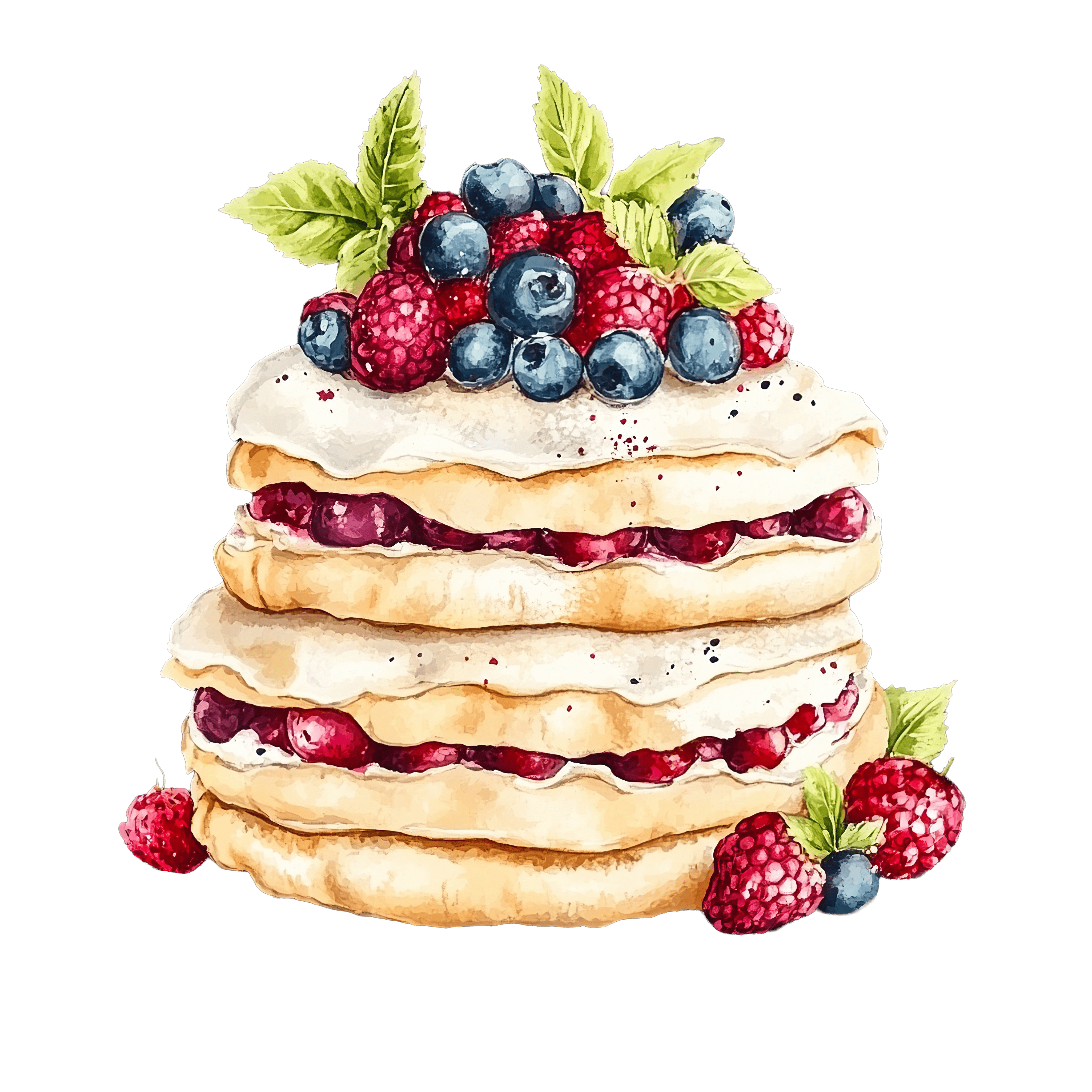 Pavlova Dessert with Berries and Whipped Cream Layers Pavlova dessert topped with fresh berries and layered with whipped cream.Download PNG ▼Download JPG ▼Related posts:Fresh White Daikon Radish with Vibrant Green LeavesWatercolor Orange with Green Leaves on Branch fruit clipart vector art citrusVibrant Watercolor Sun Clipart with Colorful Zigzag RaysCamouflage Armored Military Vehicle with Large Wheels and Gun TurretWhole and Halved Apricots with LeafCartoon Illustration of a Woolly Sheep ClipartBlue-green succulent plant with rosette shape and pointed leavesDetailed Botanical art of Pokeweed Plant with BerriesVibrant Butterfly With Blue And Purple Wings IllustrationRed Apple with Stem fruit food clipart vector artWhite Coffee Cup Filled with Rich Hot ChocolateCinnamon Roll with Purple Icing Drizzle on Top