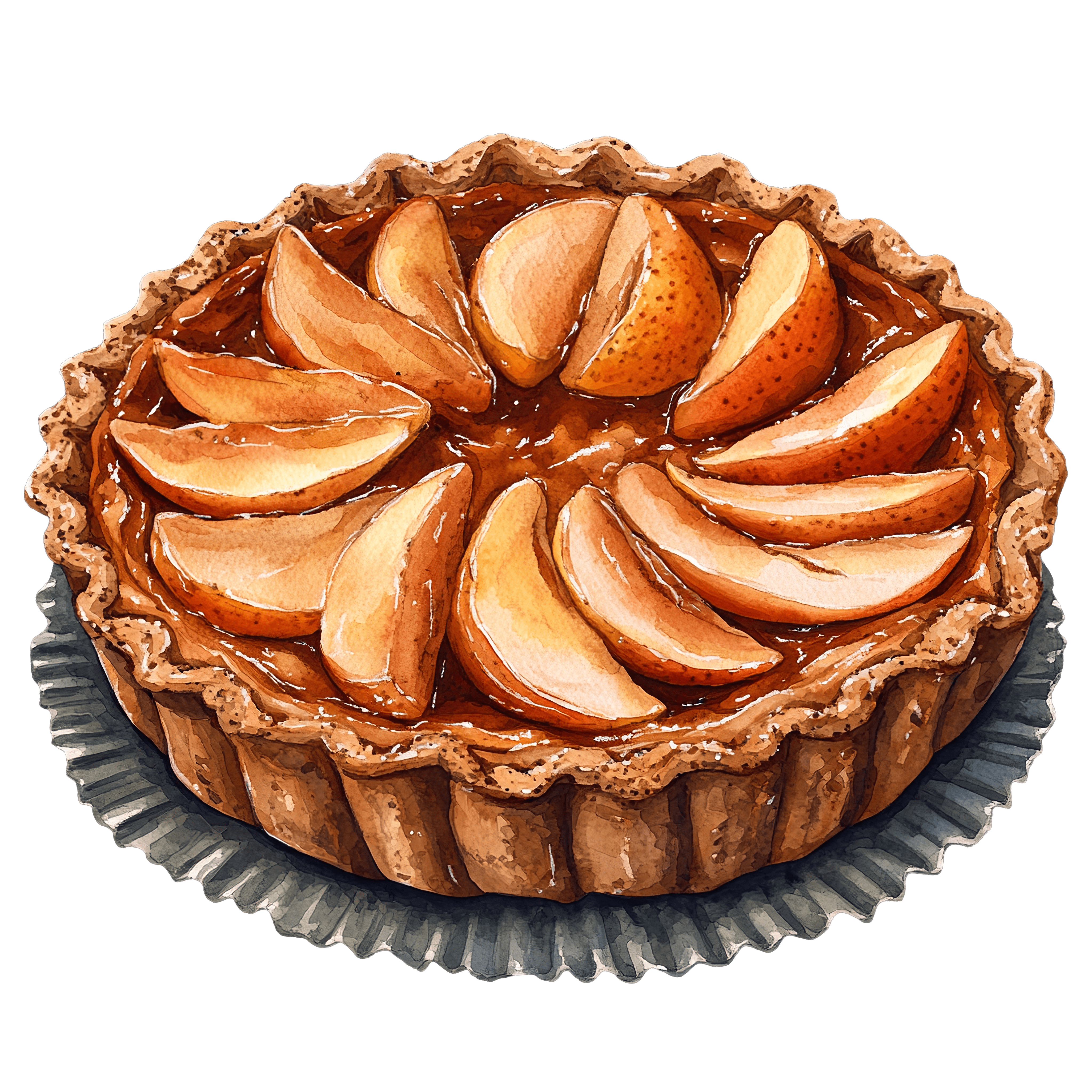 Pear Tart with Sliced Fruit and Glazed Topping Pear tart featuring sliced fruit arranged on a glazed surface.Download PNG ▼Download JPG ▼Related posts:Purple Shaggy Dog Clipart in Vector ArtThree kittens with red bows near a festive Christmas chimneyElegant Woman in Sparkling Blue Gown with Flowing HairWhole and Halved Sapodilla Fruits with Green LeavesBlack Panther in Orange Hoodie IllustrationCartoon Girl with Big Eyes in Blue DressBlack Sheep Clipart with Curly WoolCartoon giraffe illustration with smiling expressionGreen Grapes and Leaf Vector ArtCartoon Chef Holding Spoon in White Uniform and HatBlue Watercolor Cloud with Raindrops on Black BackgroundGlass of Orange Juice with Slice and Straw