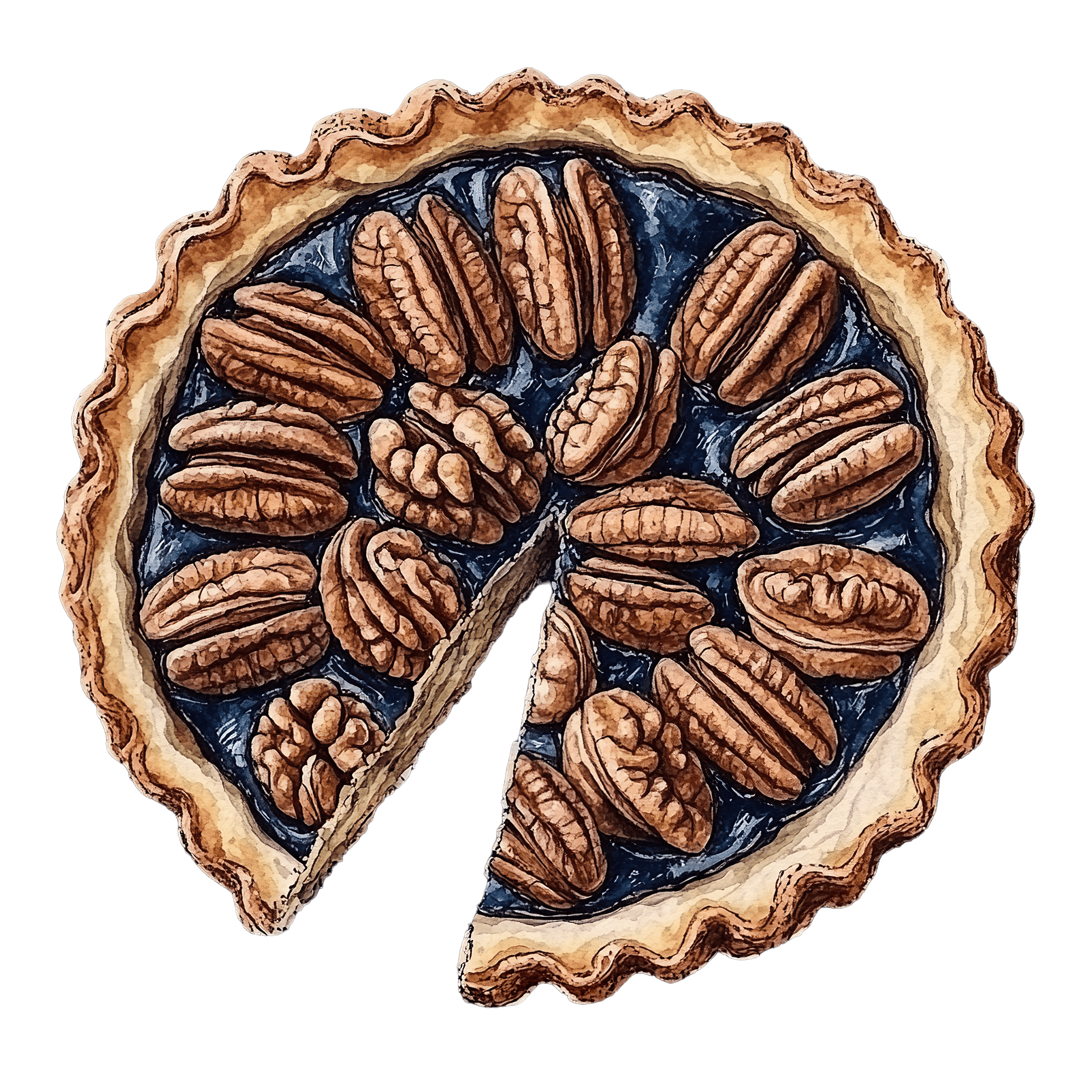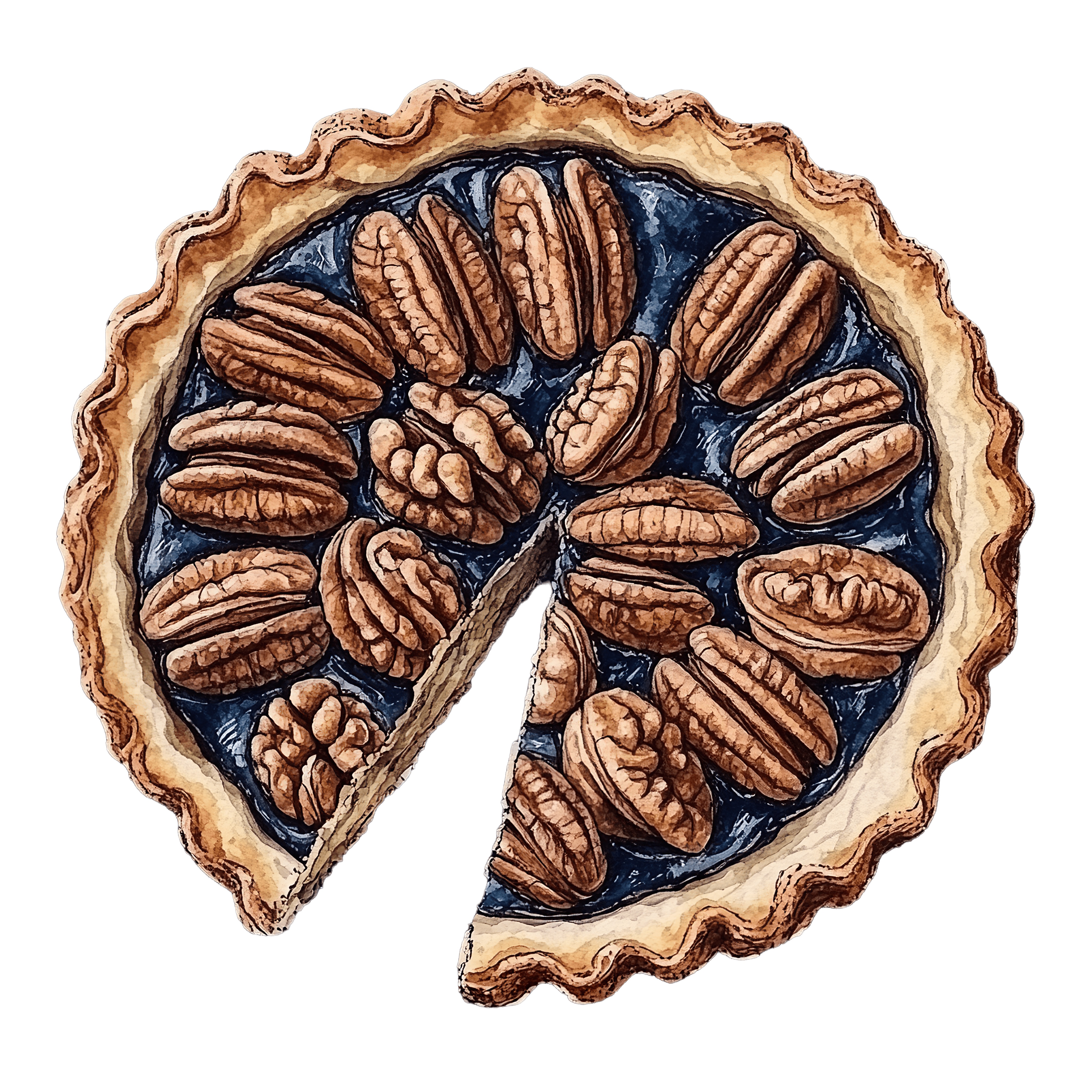 Pecan Pie with Slice Removed Showing Nut Topping Pecan pie with a slice removed, revealing detailed nut toppingDownload PNG ▼Download JPG ▼Related posts:Chinchilla Running Across Sandy Ground in Clipart StyleDeer with Colorful Antlers Surrounded by Lush Floral ArrangementMedieval Warrior Mascot in Silver Armor Wielding a SwordChocolate Cupcake Topped with Fresh Berries and Mint LeavesCartoon giraffe standing upright on two legsBotanical art of flowering plants with visible rootsLemon Sorbet Scoops with Fresh Mint Leaves and Lemon SliceFestive Gingerbread House with Snow and Holiday DecorationsWitch Flying on Broomstick with Black Hat and DressWatercolor Pear Clipart with Red and Green HuesRed Apple with Green Leaf on Top fruit clipart vector art printableYellow Sun with Heart Center on Black Background Illustration