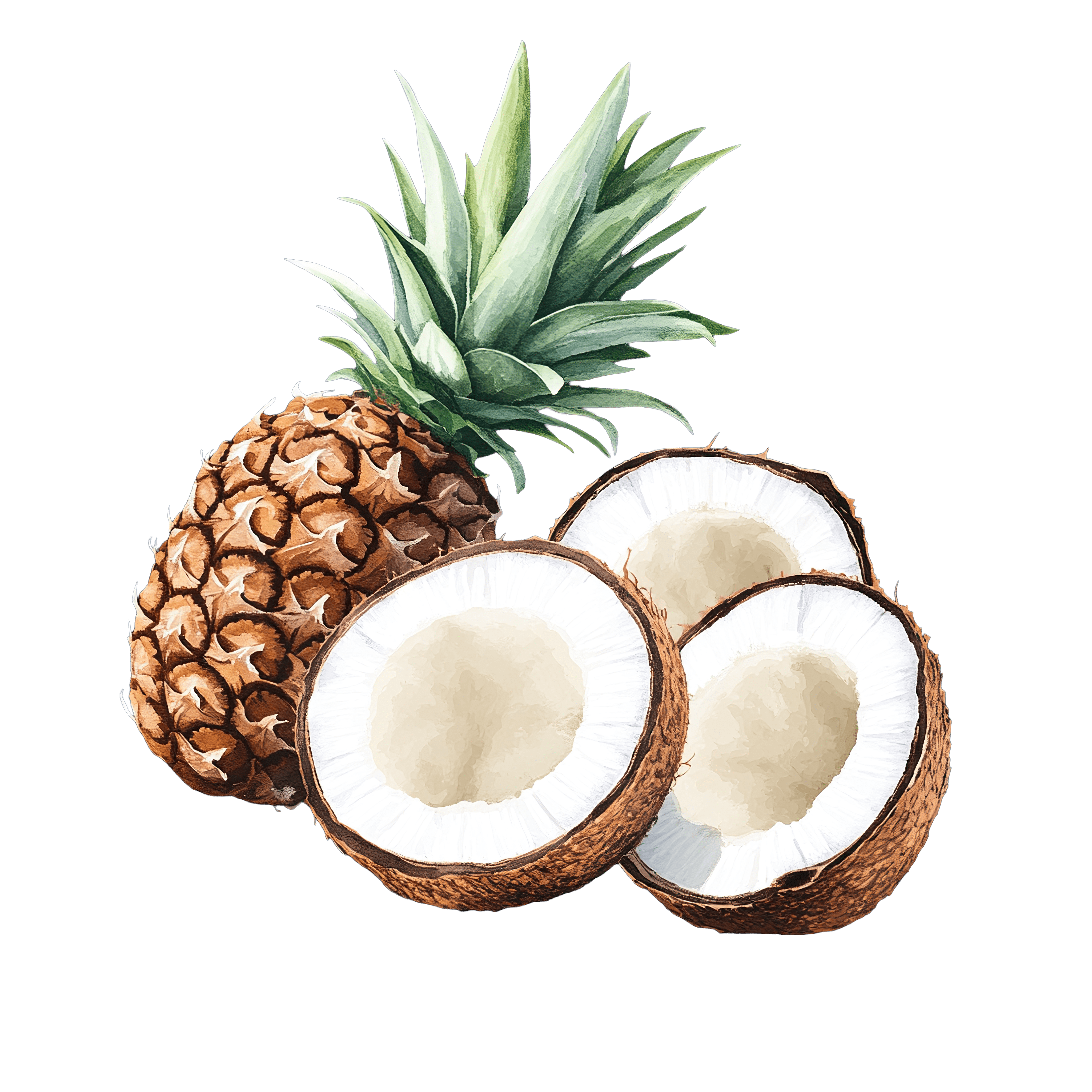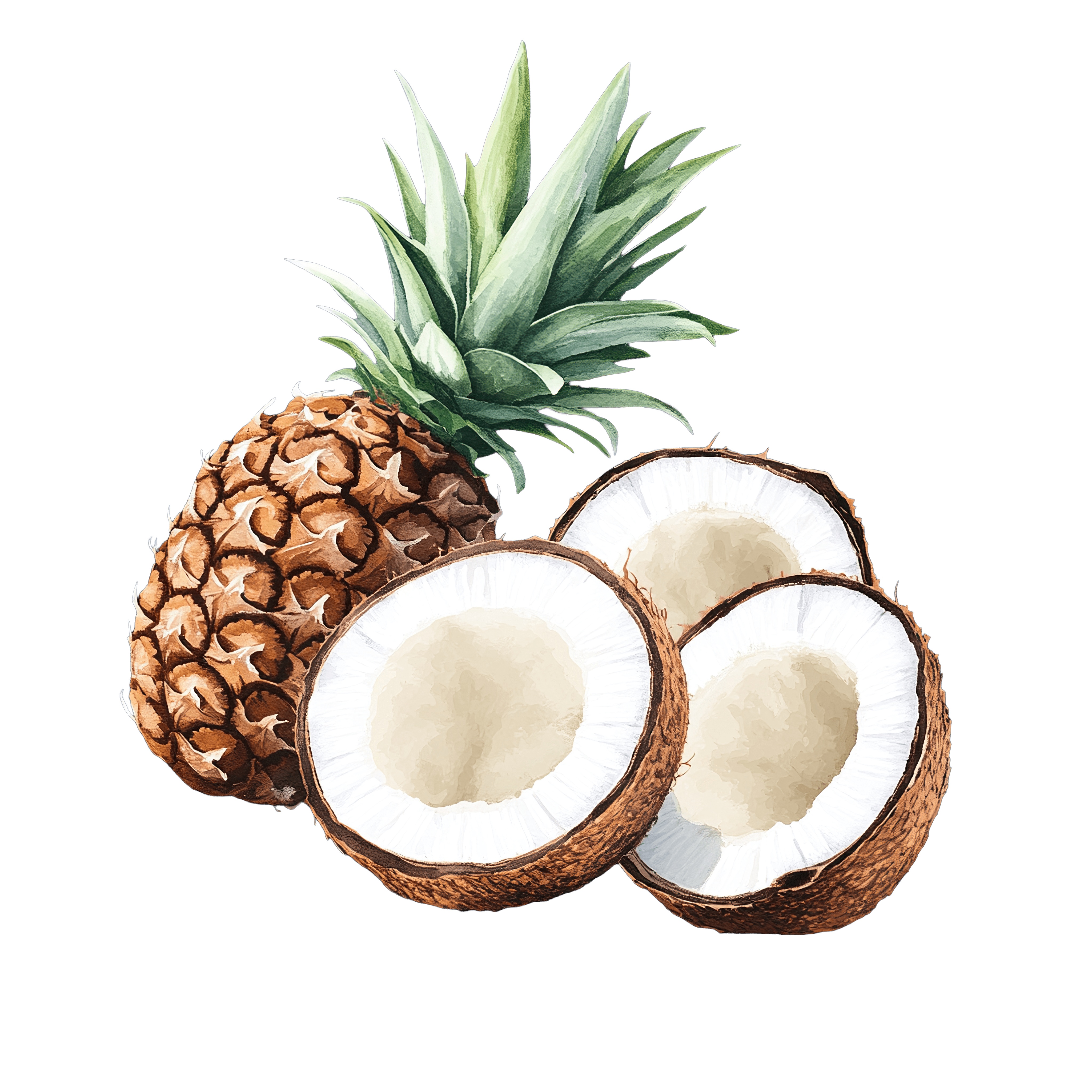 Pineapple and Coconut Composition with Halved Coconut Pieces Pineapple and halved coconuts arranged together on a plain background.Download PNG ▼Download JPG ▼Related posts:Trees Growing from Open Book with Dark BackgroundVibrant Purple And Yellow Butterfly Showcasing Intricate WingWhite Lilies with Green Leaves in Botanical ClipartBrown Squirrel Holding an Acorn ClipartWatercolor Broccoli Clipart with Detailed Green Florets vegetable food healthy vector artPink Ice Cream Scoop in a Silver SpoonDetailed Butterfly Illustration With Vibrant Orange And PurpleTall Glass of Pink Grapefruit Juice with Ice and SlicePink Banana Clipart with Bold Highlights fruit vector art stylized printable foodGlittering Wings Of A Radiant Butterfly In FlightCluster of Pink Mushrooms with Detailed Caps and StemsColorful Christmas Ornament with Intricate White Floral Patterns