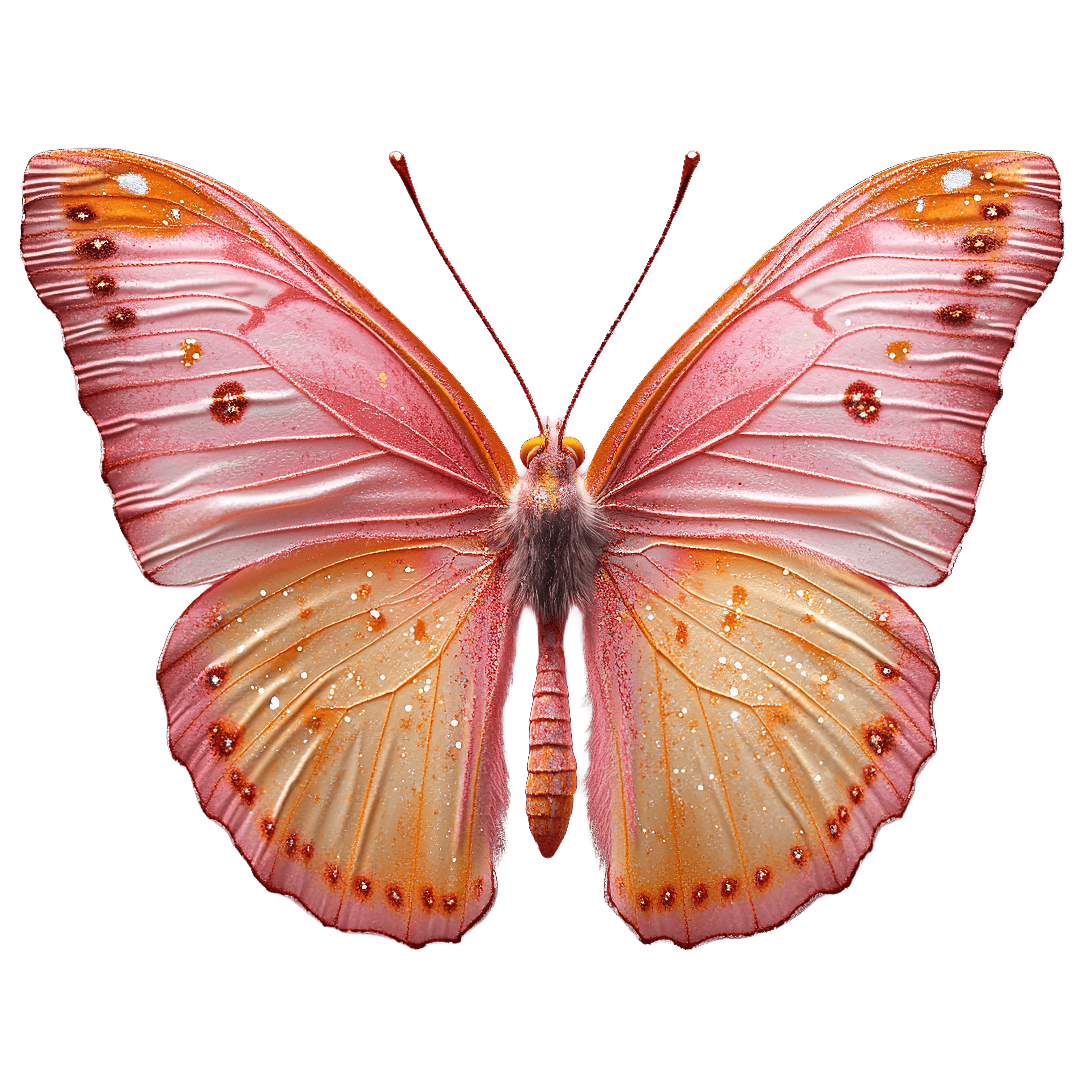 Pink And Orange Butterfly With Detailed Wing Patterns Pink and orange butterfly featuring intricate patterns on its wings.Download PNG ▼Download JPG ▼Related posts:Lion cub raising paw in detailed illustrationRed Wine Glass with Rich Burgundy Hue drink beverage clipart vector artElf in Green Attire Holding a Gift BoxColorful Butterfly With Vibrant Red And Yellow WingsGinger Root with Lemon and Honey Jar leaves food drink clipart vectorSliced Cantaloupe Melon with Juicy Orange Flesh fruit seeds clipart vector artBrown and White Owl Clipart IllustrationOrange cartoon squirrel wearing a cute hoodieWhite Magnolia Flower with Green Leaves in Watercolor StyleBotanical Art of Celeriac Root and LeavesColorful Butterfly Clipart With Intricate Wing PatternsAutumn Leaves on a Branch