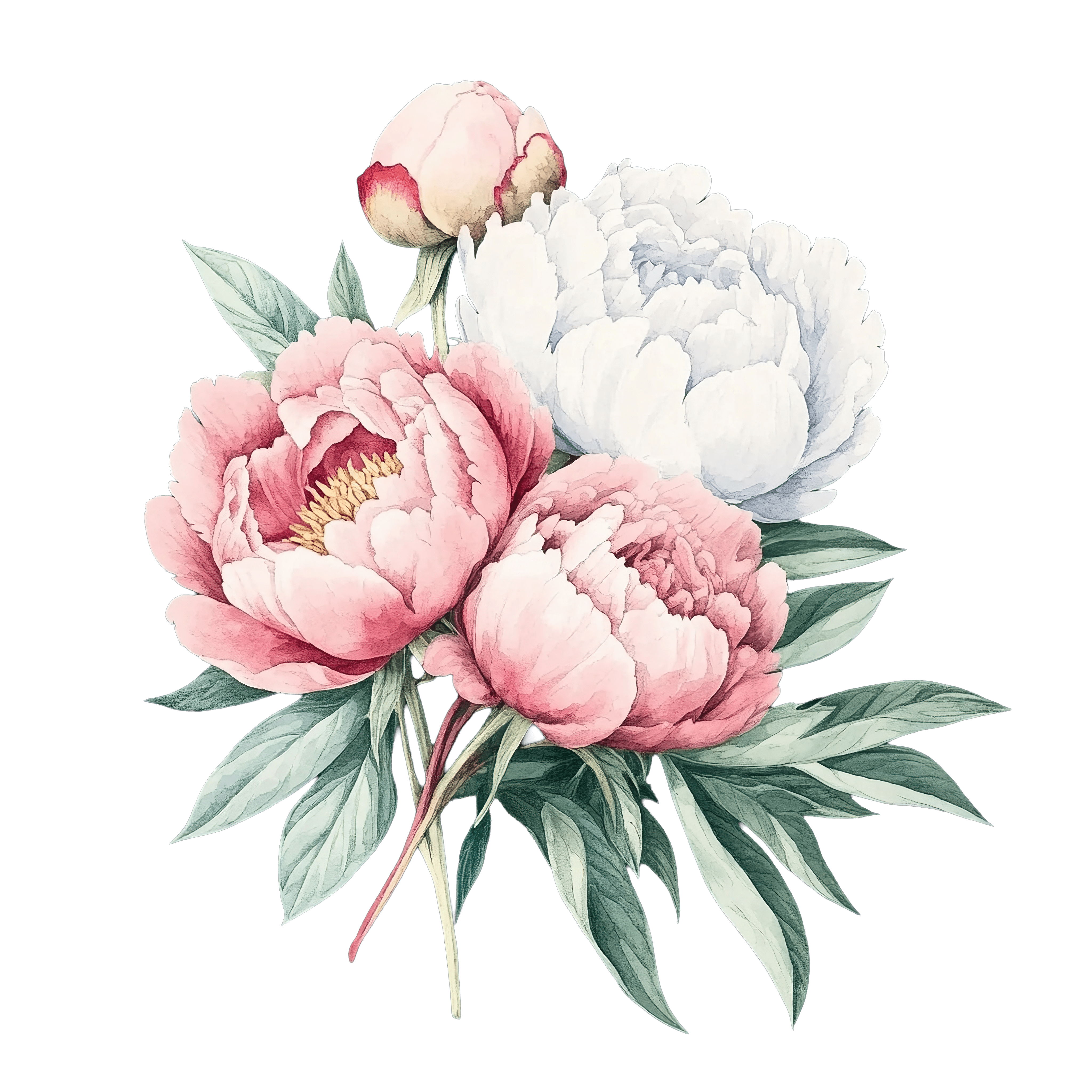 Pink and White Peony Flowers with Green Leaves on Black Pink and white peony flowers with lush green leaves against black.Download PNG ▼Download JPG ▼Related posts:Child Skateboarding with Helmet and Protective Gear sports activity clipart vector artCranberries and Leaves with Halved Fruit DesignParsnip Bunch with Fresh Green Leaves ClipartWatercolor Broccoli Clipart with Green Florets and StemsClear Glass Mug Filled with Hot Chocolate and MarshmallowsIntricate Blue Watercolor Snowflake Design on Black BackgroundTwo Yellow Squash Vegetables with Green Stems watercolor clipart food vector artRed Breasted Bird White Flowers PngIce Skates Decorated with Holly and Berries for Festive SeasonColorful Rolled Candy Sweets in Pink and BlueVibrant Butterfly Art Intricate Wing Patterns And ColorfulQuokka wearing a red sweater clipart design