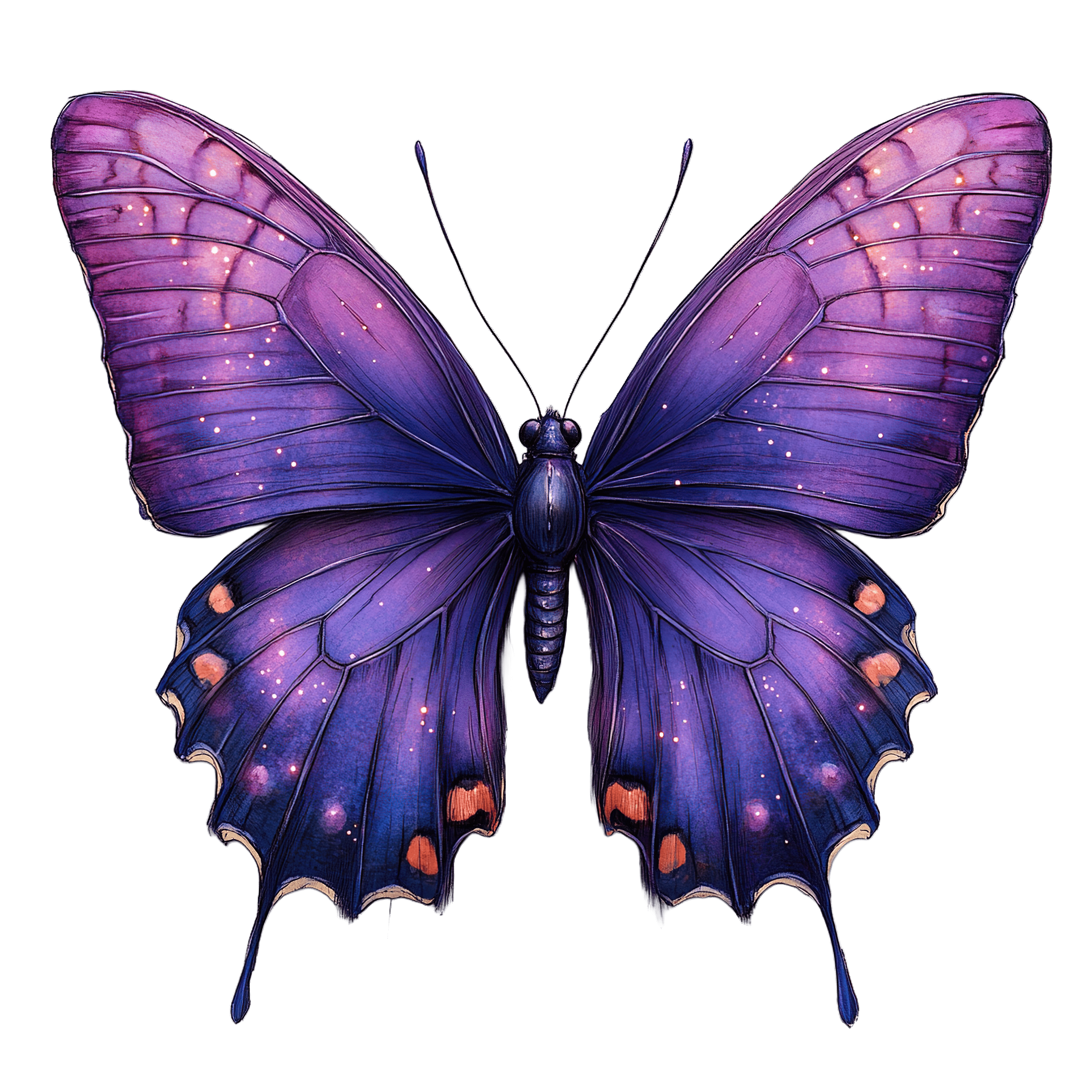 Purple Butterfly With Detailed Wing Patterns And Spots Purple butterfly features intricate wing patterns and small spots.Download PNG ▼Download JPG ▼Related posts:Two Fresh Fennel Bulbs with Green Stalks and LeavesDecorative Christmas Gingerbread Cookie with Festive Green and Red IcingGreen parrot clipart with a pink beakRed Christmas Ornament with White Decorative Floral DesignVibrant Bouquet of Red and White Flowers with GreeneryVibrant Red Cherries with StemsWatercolor Green Gooseberries with Leaves on Branch fruit clipart vector art printableDetailed Kale Leaf with Curly Edges in GreenMatcha Bubble Tea with Tapioca Pearls and StrawFestive Arrangement with Holly Leaves, Red Berries, and Pine ConesRed Cartoon Dragon with Orange Wings and HornsRed Plaid Scarf with Fringes on Black Background