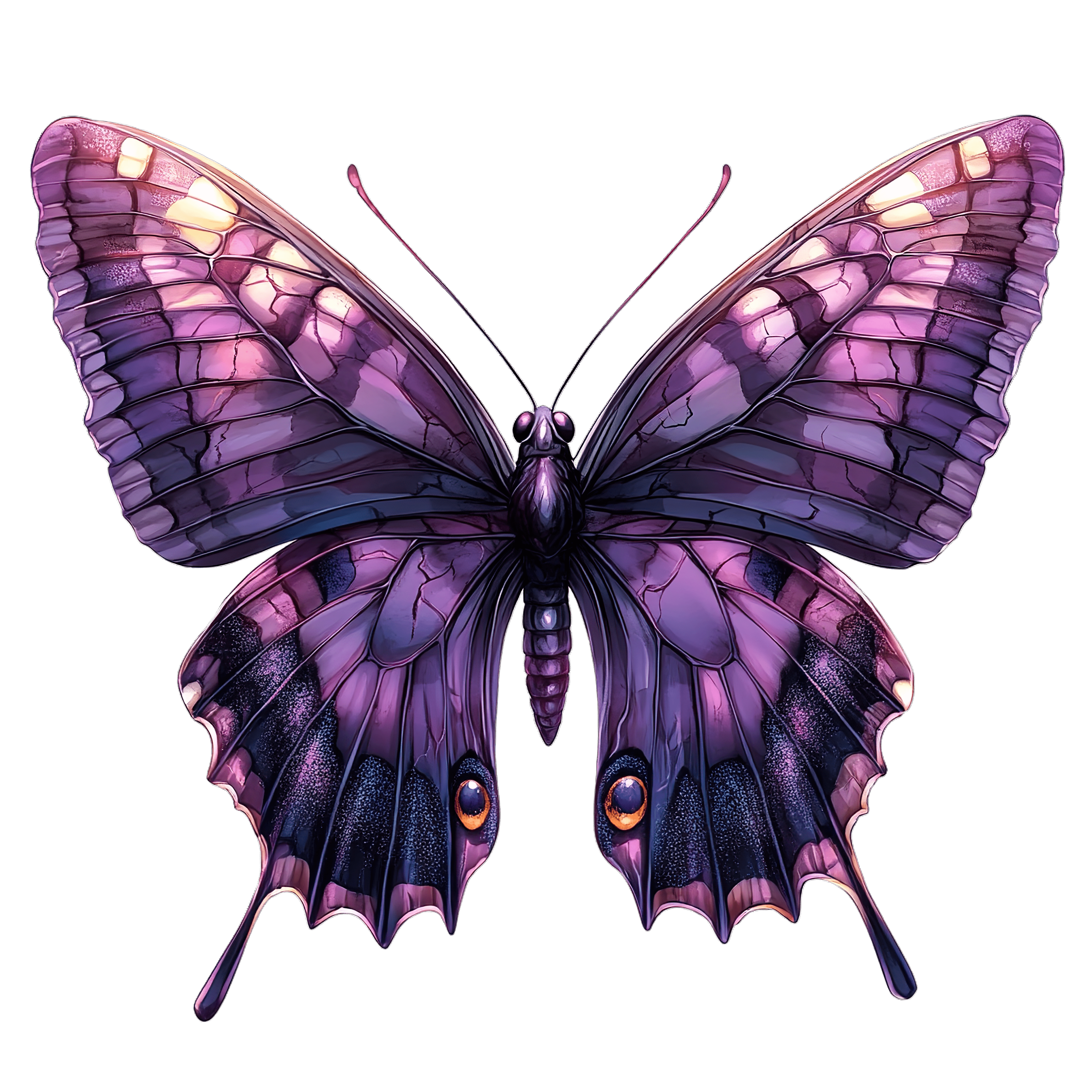 Purple Butterfly With Detailed Wings And Vibrant Colors Purple butterfly illustration featuring intricate wing patterns.Download PNG ▼Download JPG ▼Related posts:Watercolor Christmas Ornament With Vivid Gradient Colors and ReflectionGirl Holding Gift Box Tied with Large Red RibbonWoman with Red Hair in Large Red Hat and Black OutfitWatercolor Bottle of Red Beverage with Yellow CapGeometric Mosaic Heart with Vibrant Watercolor DesignRed-haired woman with tied scarf and vintage plaid blouseDecorative Red, Green, and Gold Christmas Baubles with ChainsSide View of a Classic Red Convertible Vintage Car ClipartOrange snail clipart with spiral shellVibrant Red and Orange Tree in Full Autumn BloomWatercolor Purple Plums with Leaves and Halved FruitCinnamon Roll Clipart with Swirled Pastry Design golden-brown food dessert bakery vector