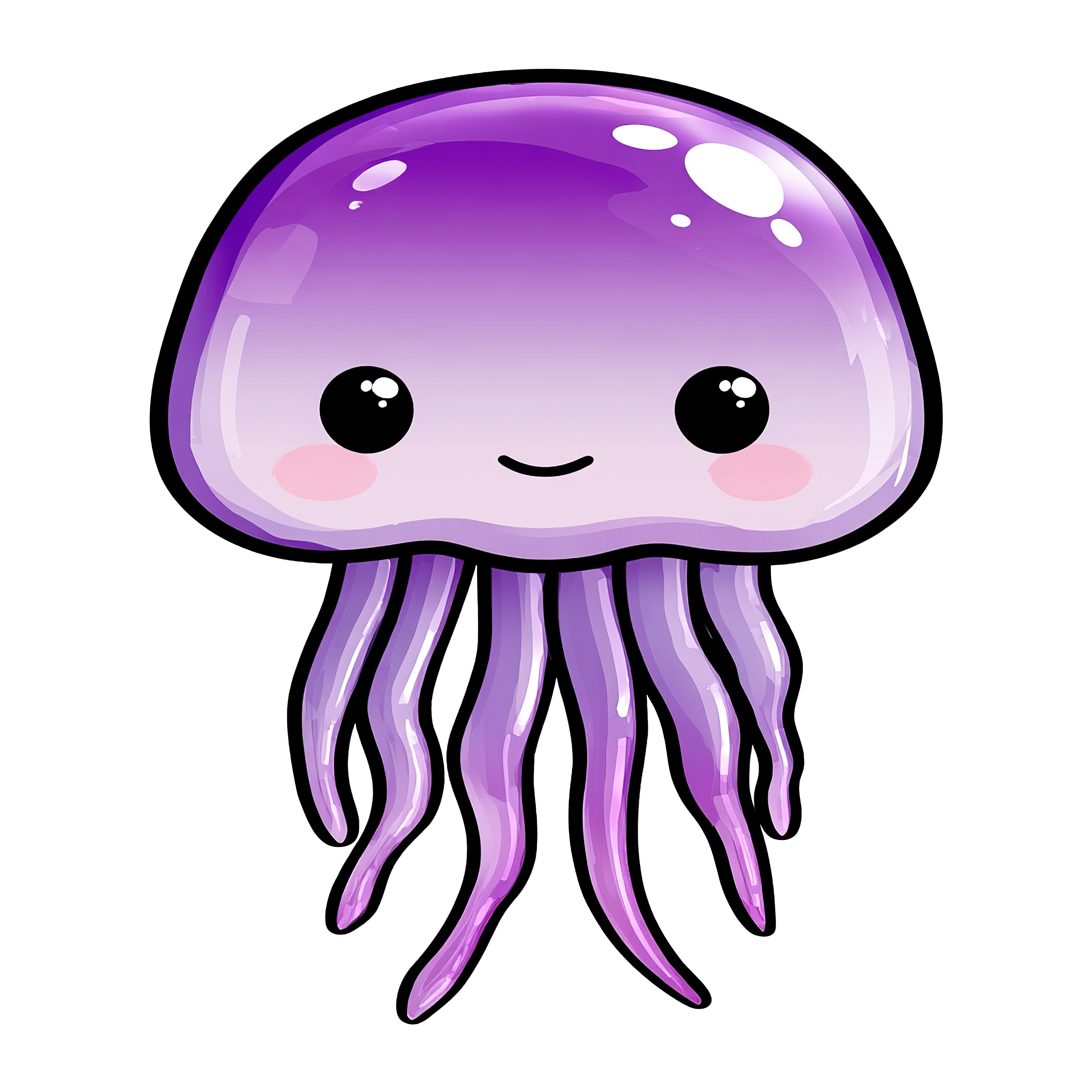 Illustrated clipart of a jellyfish with a gradient purple and white dome. The jellyfish features multiple curved tentacles extending from its body. The style is cartoonish with large, round eyes and a small curved mouth. The design emphasizes simplicity and clarity in a playful presentation, suitable for various decorative or educational purposes.