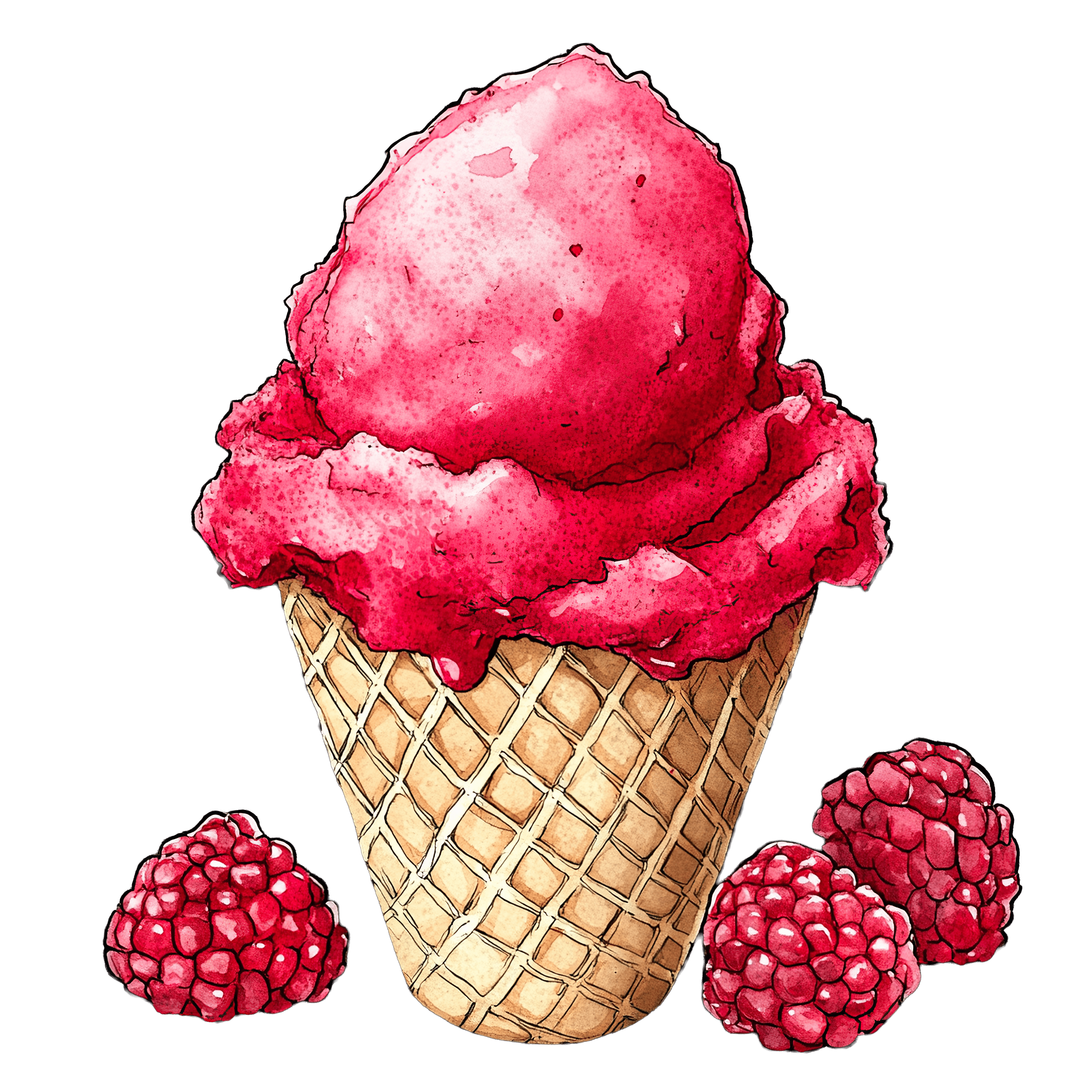 Raspberry Ice Cream Cone with Fresh Raspberries waffle dessert red sweet clipart Raspberry ice cream in a waffle cone with fresh raspberries beside it.Download PNG ▼Download JPG ▼Related posts:Blueberry Cheesecake Slice on White Plate with ForkSanta Claus Illustration in Red Suit with White BeardPorcupine holding a candy cane clipart designGingerbread Man Cookie with Icing Details and SmileBlue High Heels Decorated with Holly and Red BerriesWatercolor Corn Stalks with Lush Green LeavesIntricate Green Leafy Mandala Design with Central FlowerCheetah Dressed in Festive Elf Costume ClipartHand-drawn cassava roots with detailed texture and shadingFresh Green Broccoli with Detailed Texture vegetable food healthy clipart vector artCartoon groundhog clipart with brown furStrawberry Milkshake with Whipped Cream and Straws beverage dessert drink clipart vector