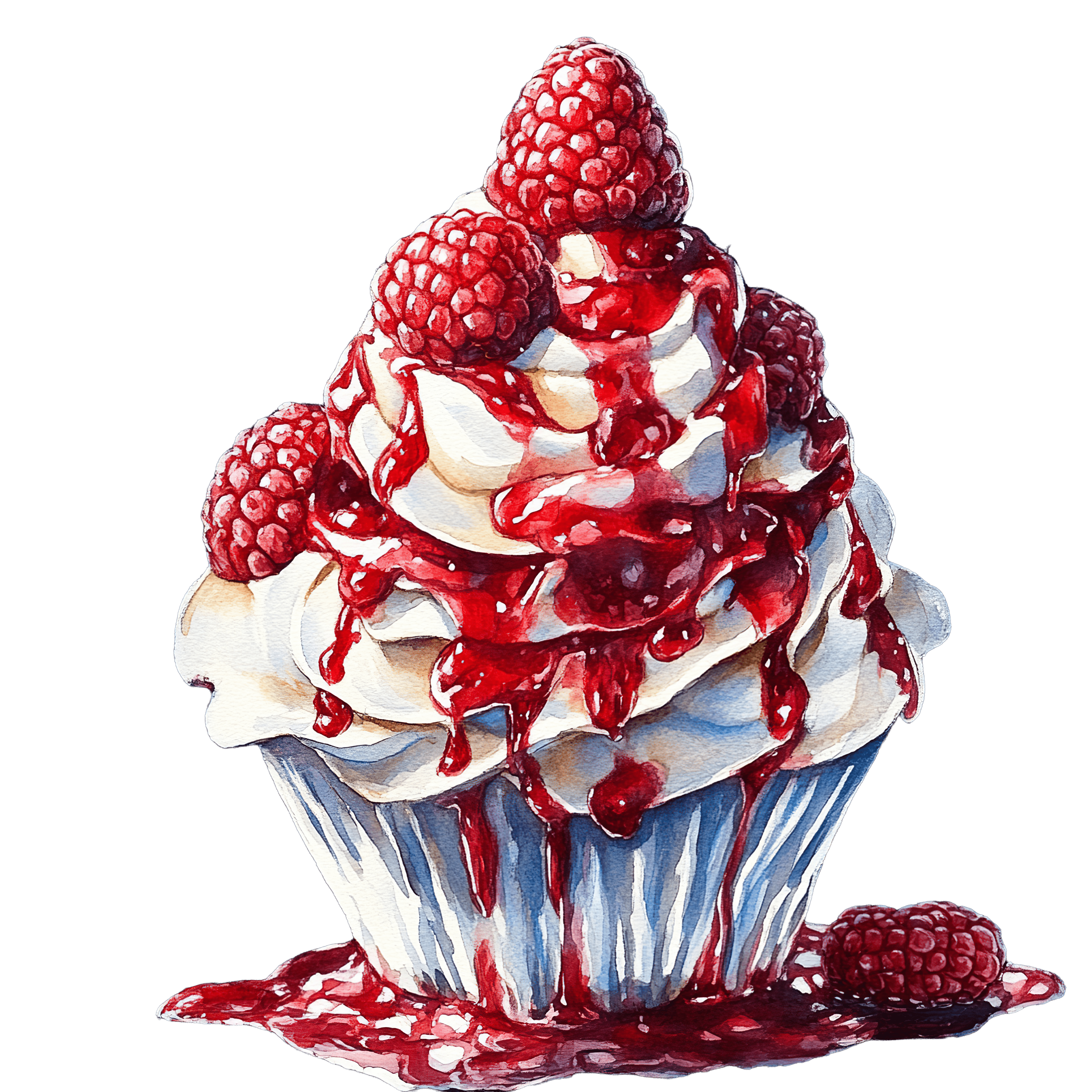 Raspberry Topped Cupcake with Whipped Cream and Sauce Cupcake adorned with raspberries and drizzled with red sauce.Download PNG ▼Download JPG ▼Related posts:Cartoon Character with Large Eye and Blue HoodiePecan Pie with Slice Removed Showing Nut ToppingFamily Portrait Illustration with Winter Clothing and Bright HatsChristmas Elf Sitting on Rooftop with Starry Night BackgroundGlass of Lemonade with Ice and Lemon SlicesVibrant Blue Orange Butterfly Showcasing Intricate Wing DesignsVibrant Galaxy Themed Butterfly With Cosmic Patterns On WingsThree Vibrant Bell Peppers with Green Stems watercolor vegetables food red orangePink owl beside stacked toy blocks illustrationWatercolor Strawberry with Green Leaves and Seeds red clipart fruit vector artOtter balancing on pink ball illustrationBlue And Pink Butterfly With Glittering Wing Patterns