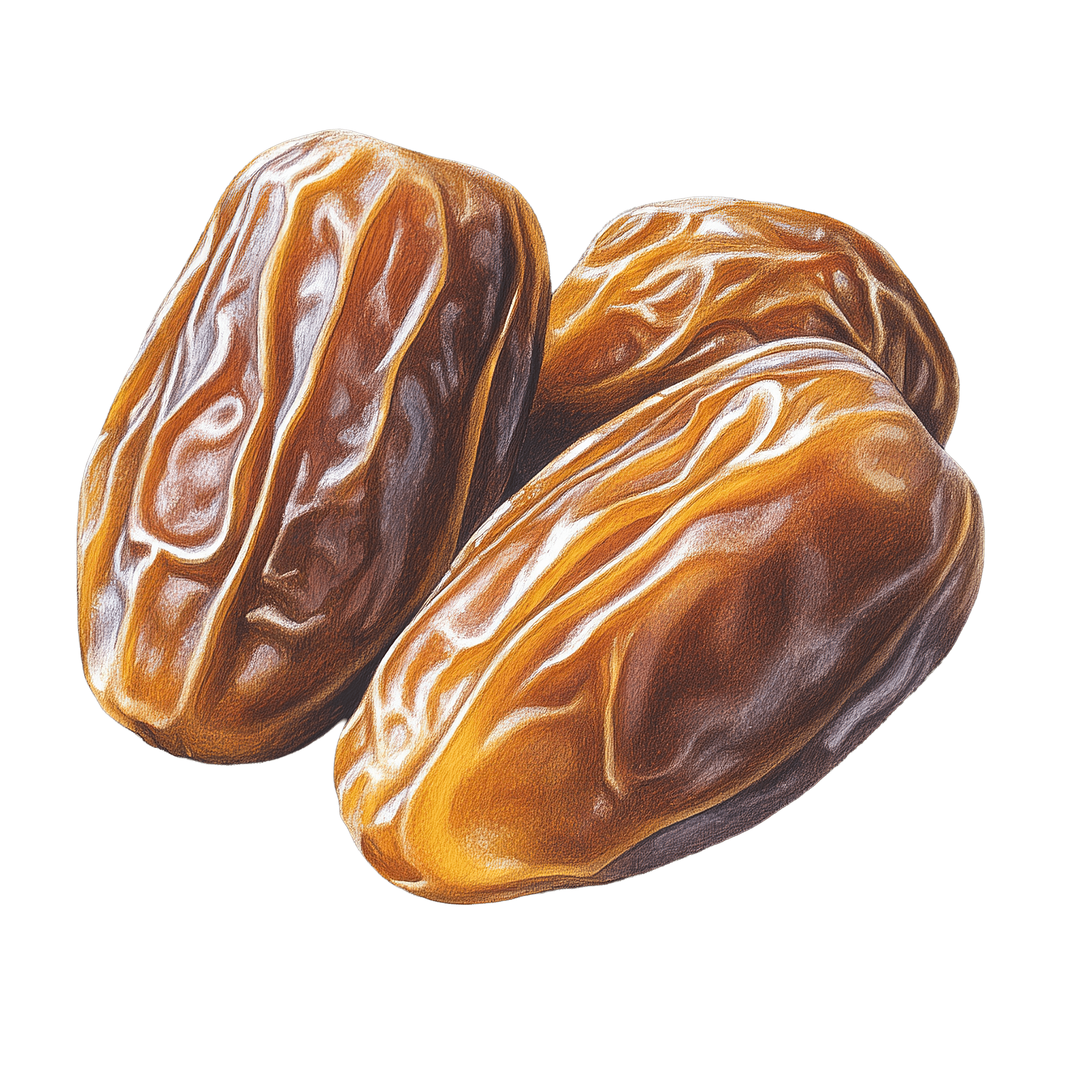 Realistic Medjool Dates Cluster in Detailed Clipart Medjool dates depicted with realistic textures and rich colors.Download PNG ▼Download JPG ▼Related posts:Woman in Victorian-Style Attire with Red Hat and JewelryPink Frosted Donut with Colorful Sprinkles Clipart frosting food dessert vector artPink Trumpet Flower with Green Leaves ClipartHamster on a Wheel Cartoon ClipartWatercolor Banana with Green and Yellow Hues fruit clipart vector art printableSeries of Stone Stepping Stones in a Curved FormationThree Vibrant Bell Peppers with Green Stems orange red vegetables food clipartDecorative Red and Gold Christmas Ornament on Black BackgroundWitch-hat raccoon clipart in cartoon styleCartoon pink flamingo with a black beakRainbow Heart Watercolor Illustration with Vivid ColorsChocolate Layer Cake Slice with Raspberries and Hazelnuts