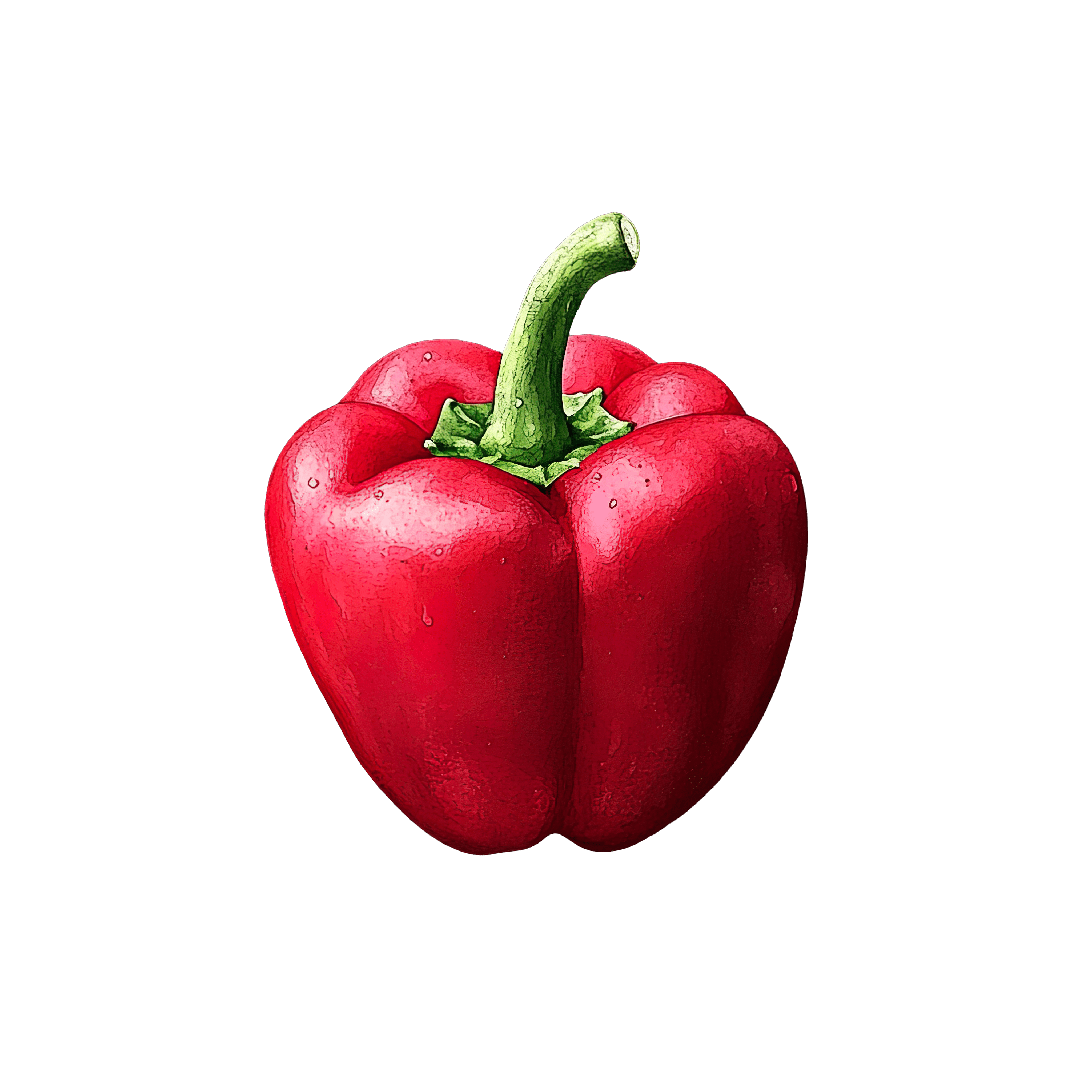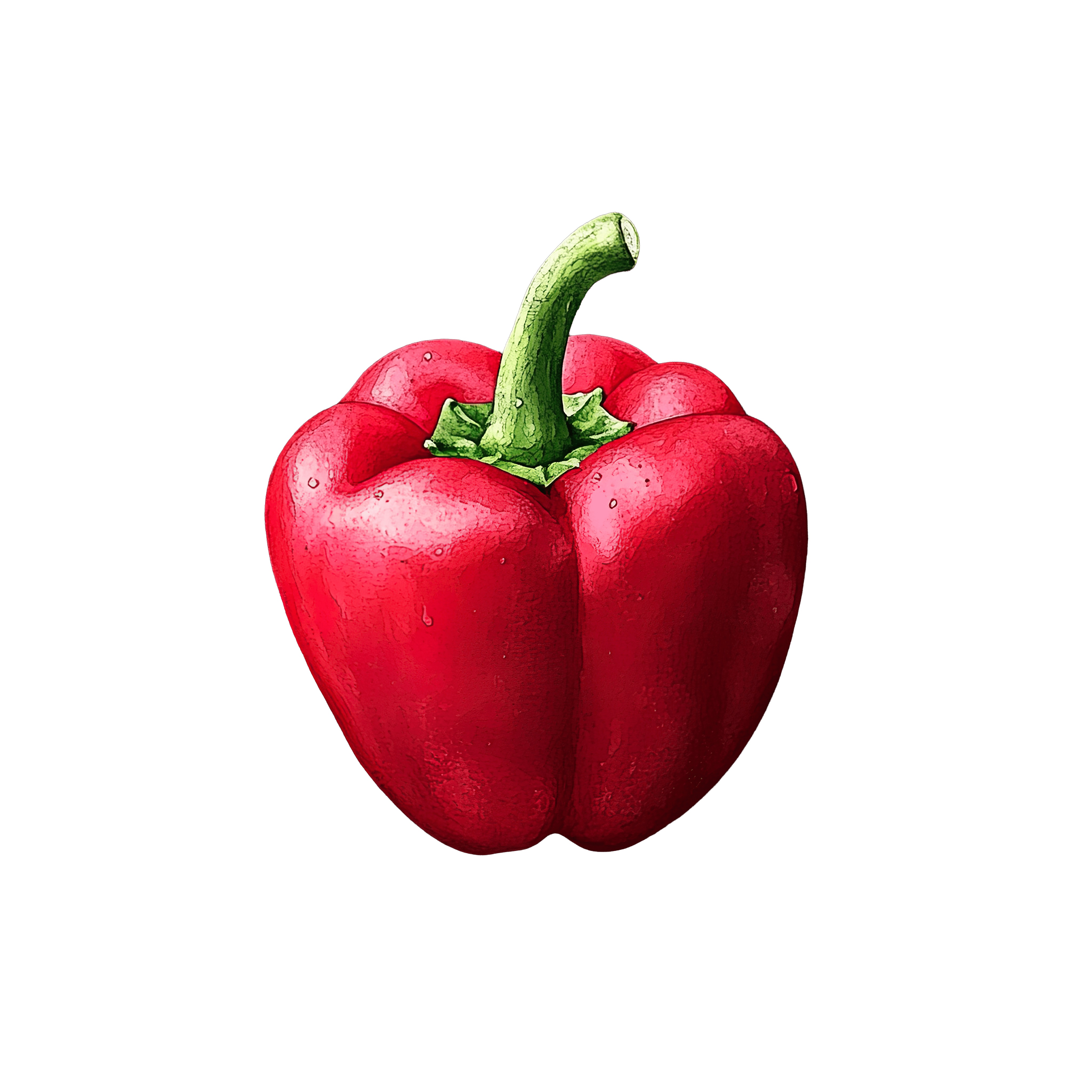Red Bell Pepper with Green Stem Red bell pepper with a green stem, isolated on black.Download PNG ▼Download JPG ▼Related posts:Watercolor Apricots and Leaves Fruit Art VectorBeer Mug Filled with Frothy Golden Lager drink beverage clipart vector artWoman in Traditional Christmas Attire with Red Scarf and HollySlice of Berry Cheesecake with Creamy Topping and CrustColorful Rainbow and Sunburst Illustration on Black BackgroundGreen Kiwano Fruit with Sliced Interior and SeedsMonkey wearing witch hat on broomstickTraditional Wooden Nutcracker Soldier Ornament in Red UniformFresh Green Parsley Bunch with Detailed LeavesWatercolor Style Red Heart with Subtle Gradient EffectChocolate Layer Cake with Mixed Berries on TopWatercolor Lychee Cluster with Leaves