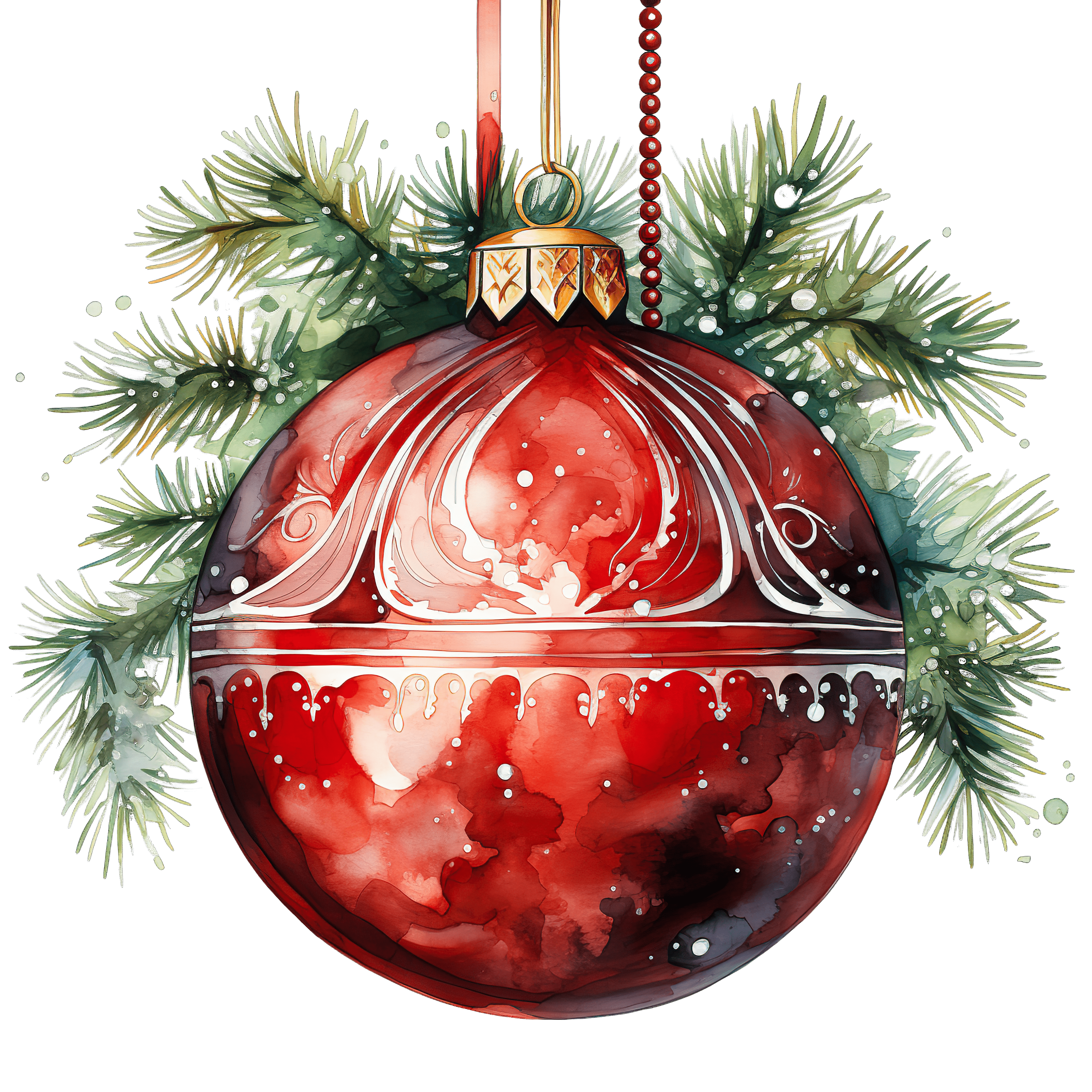 Red Christmas Ornament with Pine Branches and Decorative Design Red Christmas ornament with intricate white designs hanging among pine branches.Download PNG ▼Download JPG ▼Related posts:Fresh Fennel Bulbs and Green Fronds Close-UpShiny Red Christmas Ornament with Silver Hanging LoopBright Yellow Daisies with Green Leaves on Black BackgroundWatercolor Branch with Three Bright Yellow Oranges fruit clipart vector art printablePurple Cabbage with Detailed Leaf Patterns vegetable food clipart vector art printableWatercolor Pear with Lush Green LeavesThree Vibrant Red Maple Leaves on a Black BackgroundLemon Layer Cake Slice with Icing and Lemon WedgeClipart of Papaya Halves with Seeds and Green LeavesDetailed Watercolor Illustration of a Purple Orchid FlowerGirl with Poinsettia and Holly Headpiece for Christmas CelebrationColorful Neon Butterfly With Radiant Glowing Wings