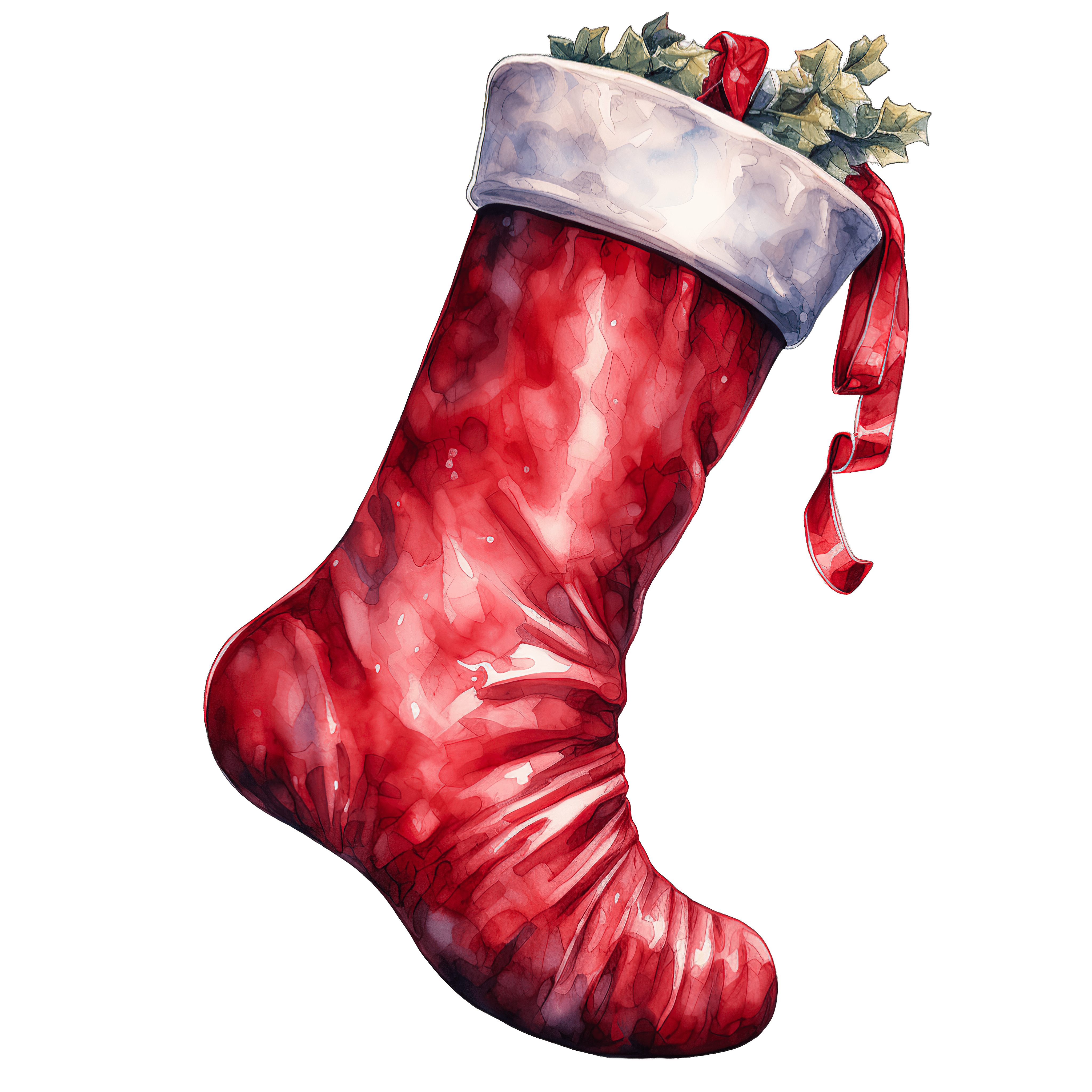 Red Christmas stocking with holly and white trim illustration Red Christmas stocking with white trim and holly leaves on top.Download PNG ▼Download JPG ▼Related posts:Watercolor Wine Glass with Red Wine clipart drink beverage vector art printableAssorted Pastries Stacked on Plate with Icing SugarTraditional Holiday Holly with Red Berries and Green LeavesWatercolor Style Red Heart with Subtle Gradient EffectFestive Red and Green Christmas Ornament with Pine AccentsChocolate Chip Cookie with Rich Brown Chips dessert baked snack sweet foodSlice of Cheesecake with Fresh Strawberries on TopGreen Grapes Bunch with Leaves in Detailed ClipartElegant Wineglass Filled with Burgundy Red Wine Vector Art IconWatercolor Cocoa Pods with Green Leaves vibrant clipart vector art printable foodFresh Green Mustard Greens Bunch Clipart IllustrationWatercolor art of Whole and Sliced Guava with Leaves